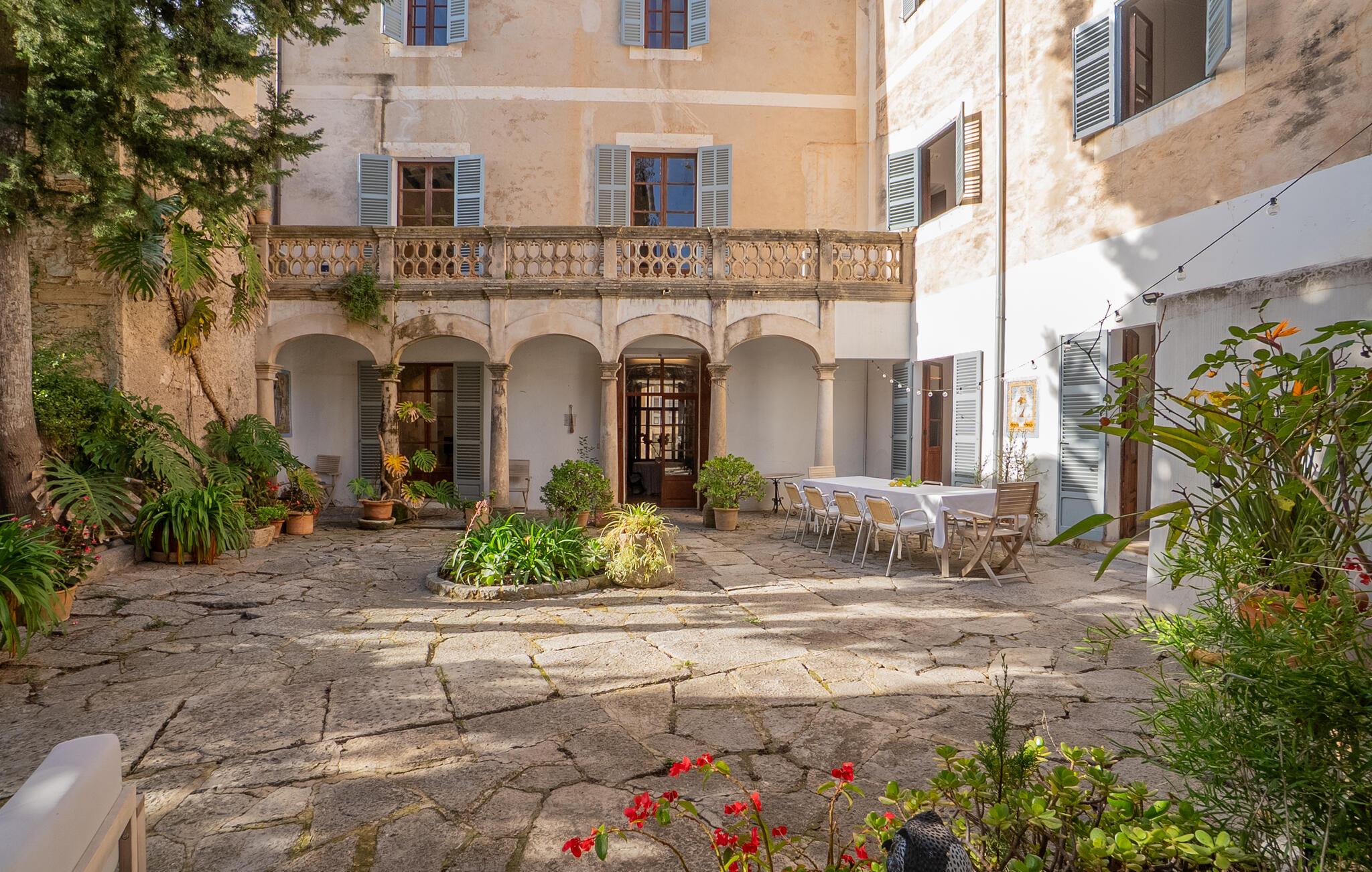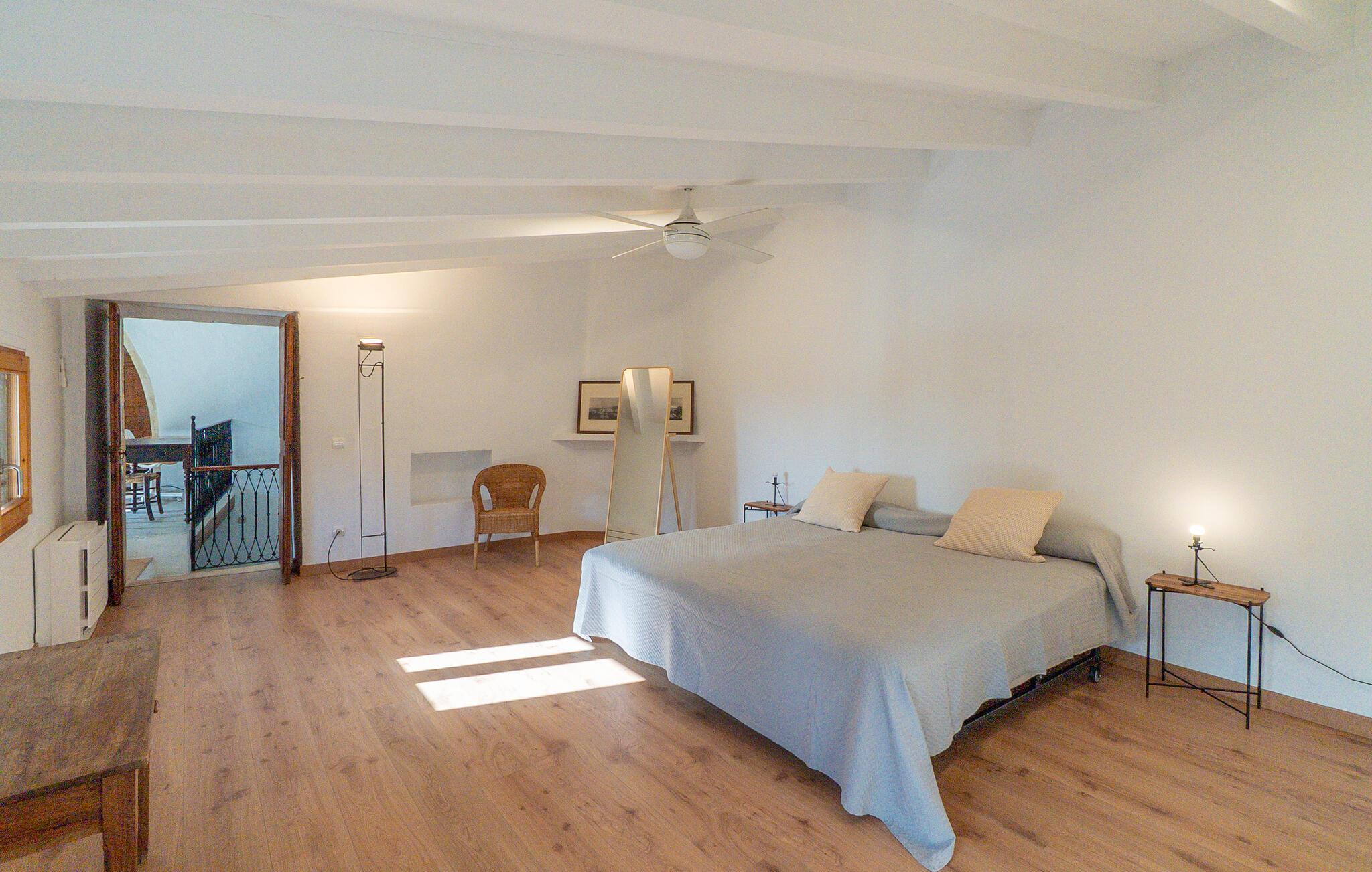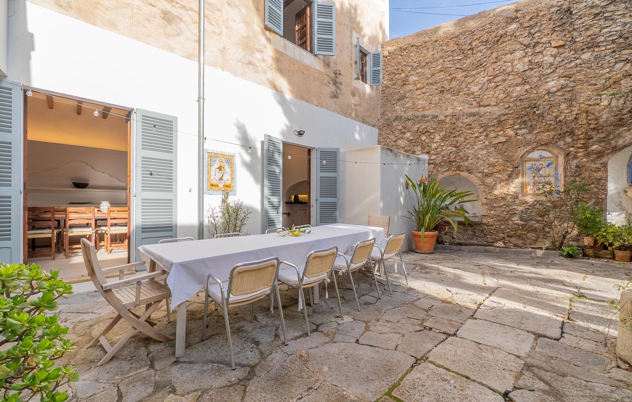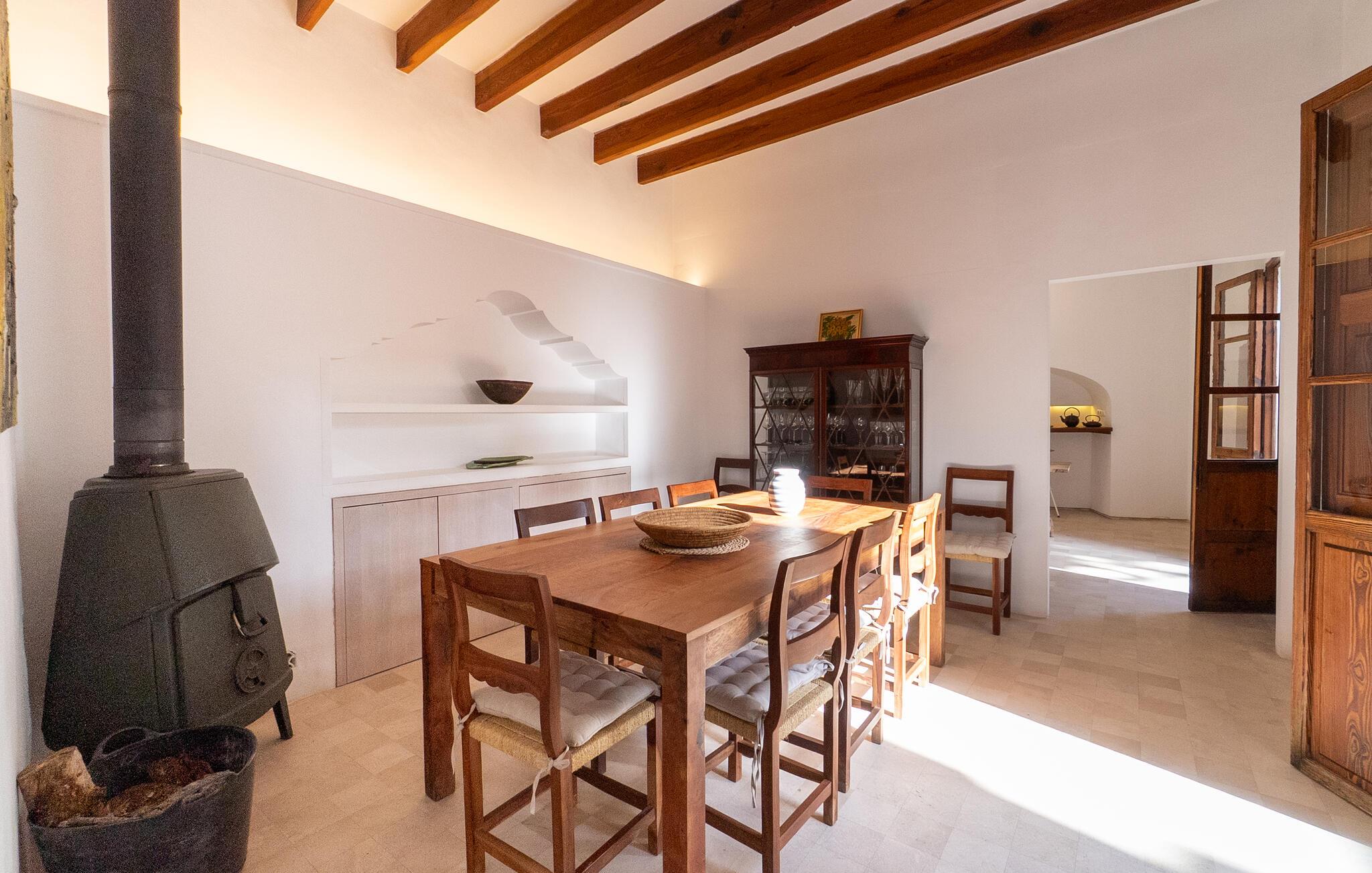 Nyd et uforglemmeligt ophold i dette stilfulde feriehus på Mallorca. Dette hus er omgivet af en smuk have og tilbyder jer historisk stemning og moderne komfort. Træd ind i det elegante interiør med højt til loftet, synlige træbjælker og stilfulde møbler. Find jer godt til rette i de rummelige opholdsområder og slap af i den store sofa. Det rummelige køkken lægger op til at tilberede regionale specialiteter sammen. Brug de mange store områder i huset til jeres morgenyogaøvelser.