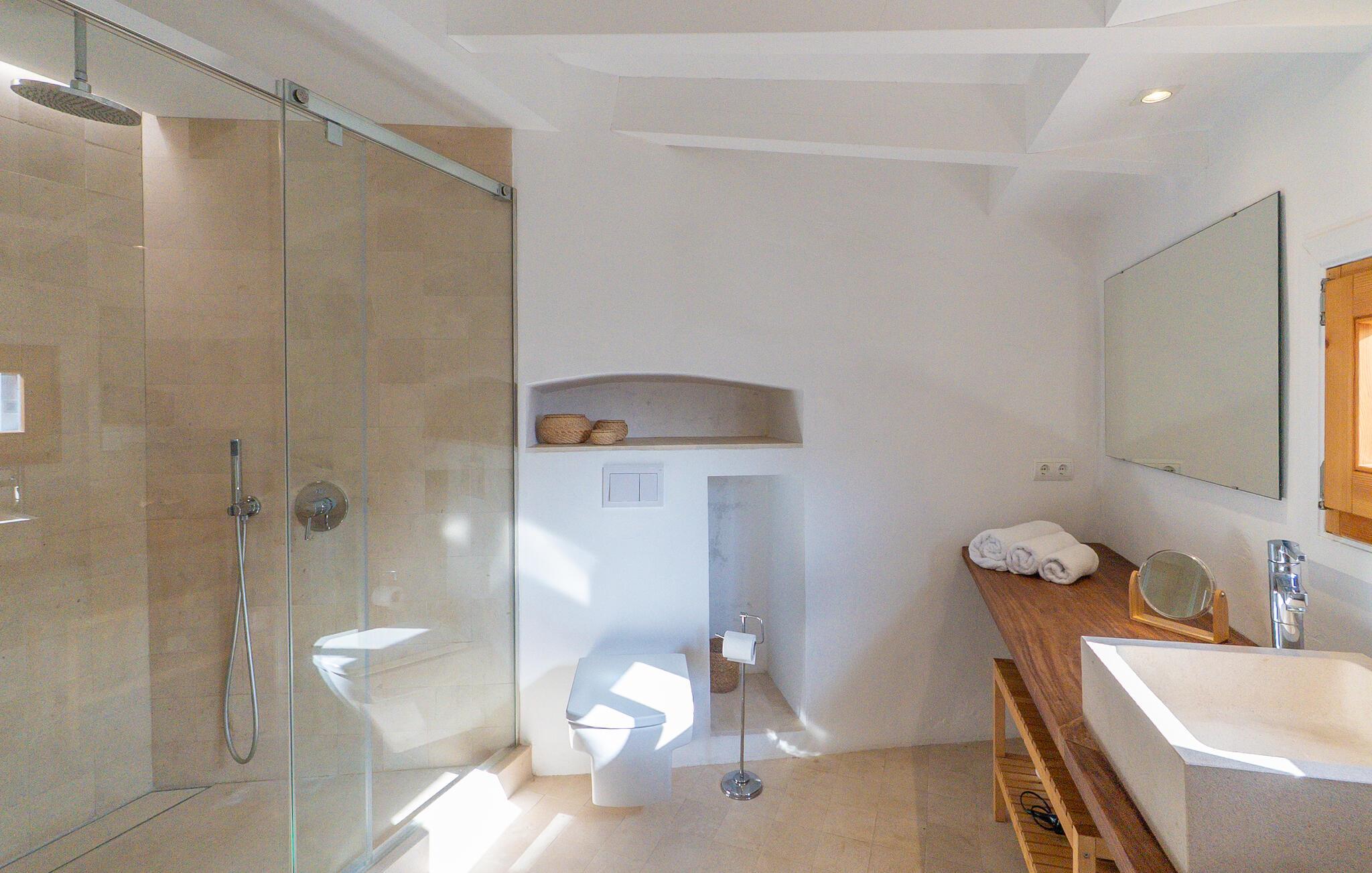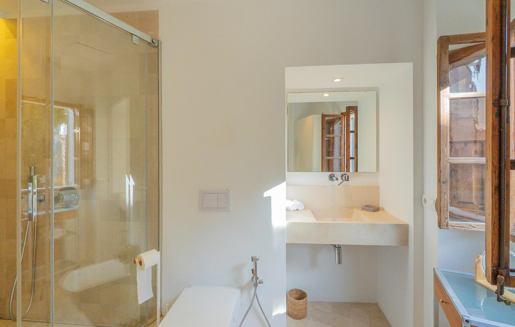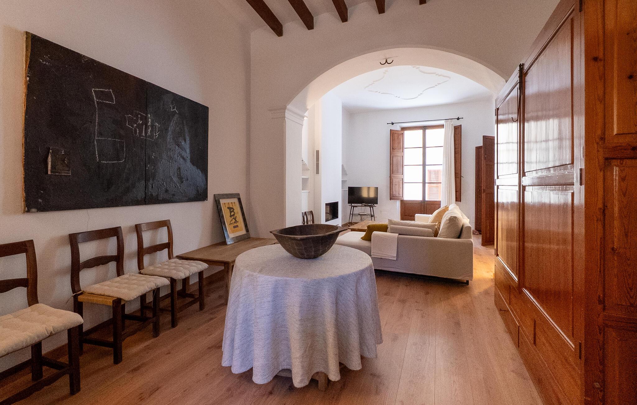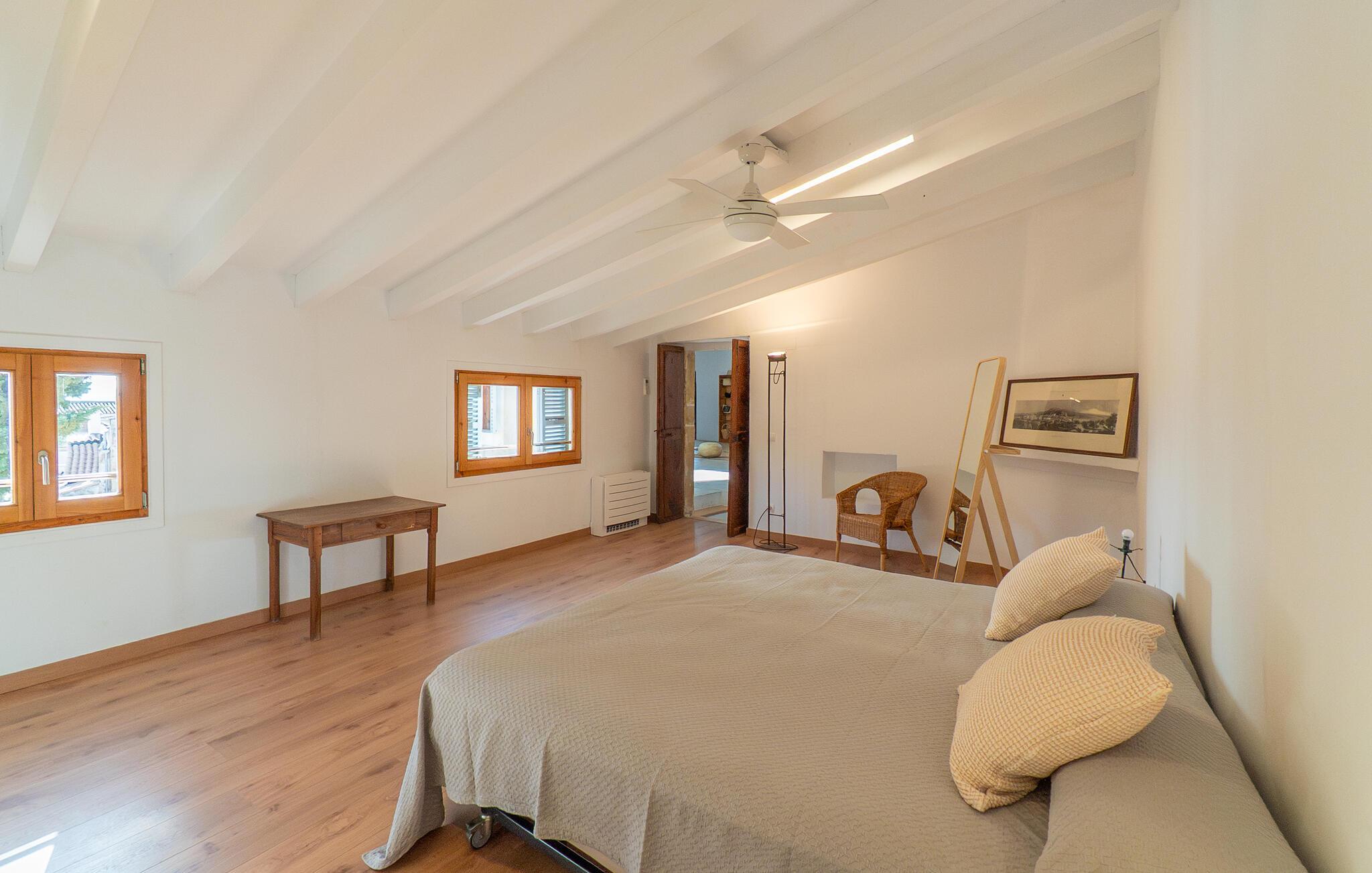 Nyd et uforglemmeligt ophold i dette stilfulde feriehus på Mallorca. Dette hus er omgivet af en smuk have og tilbyder jer historisk stemning og moderne komfort. Træd ind i det elegante interiør med højt til loftet, synlige træbjælker og stilfulde møbler. Find jer godt til rette i de rummelige opholdsområder og slap af i den store sofa. Det rummelige køkken lægger op til at tilberede regionale specialiteter sammen. Brug de mange store områder i huset til jeres morgenyogaøvelser.