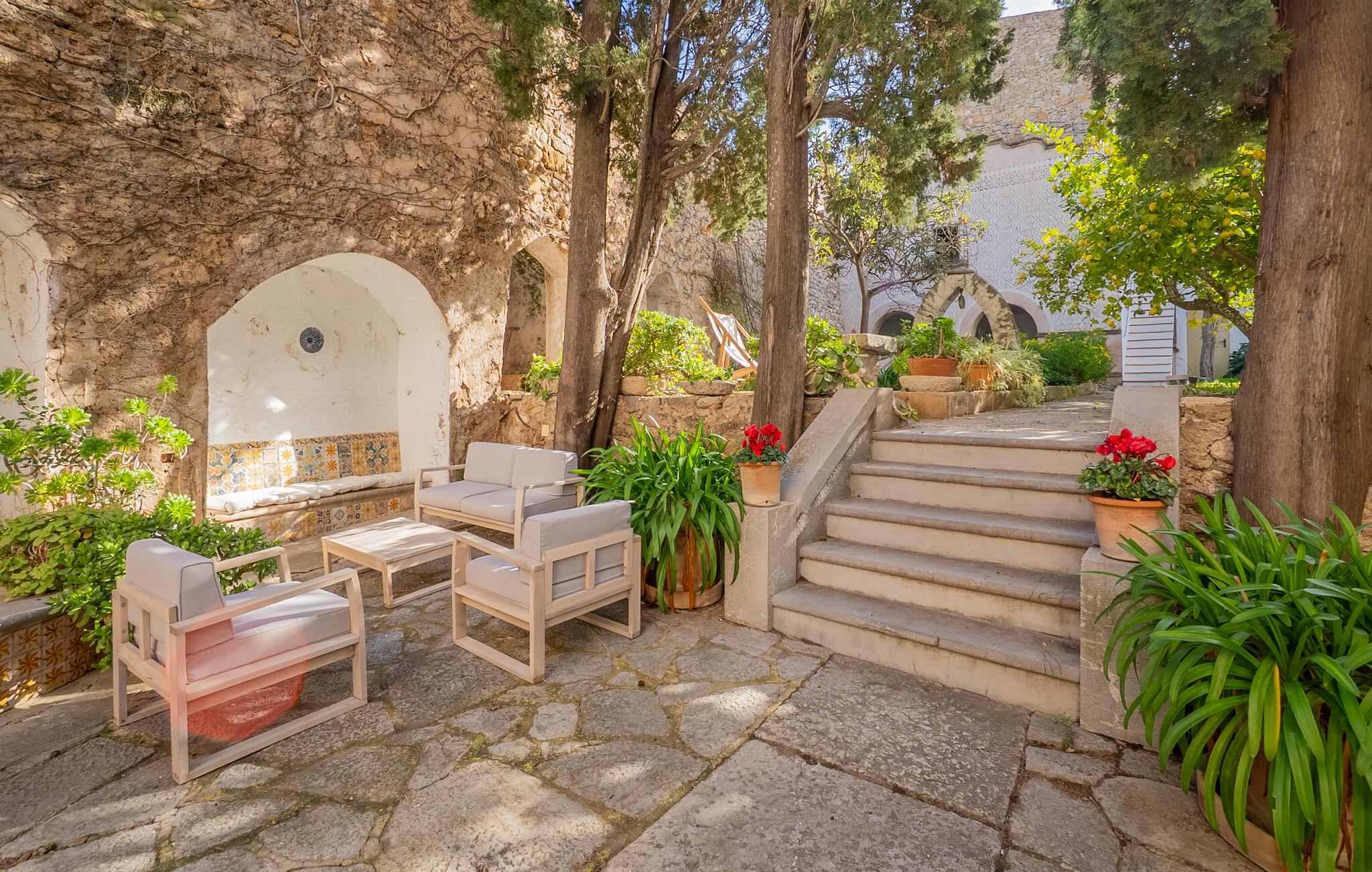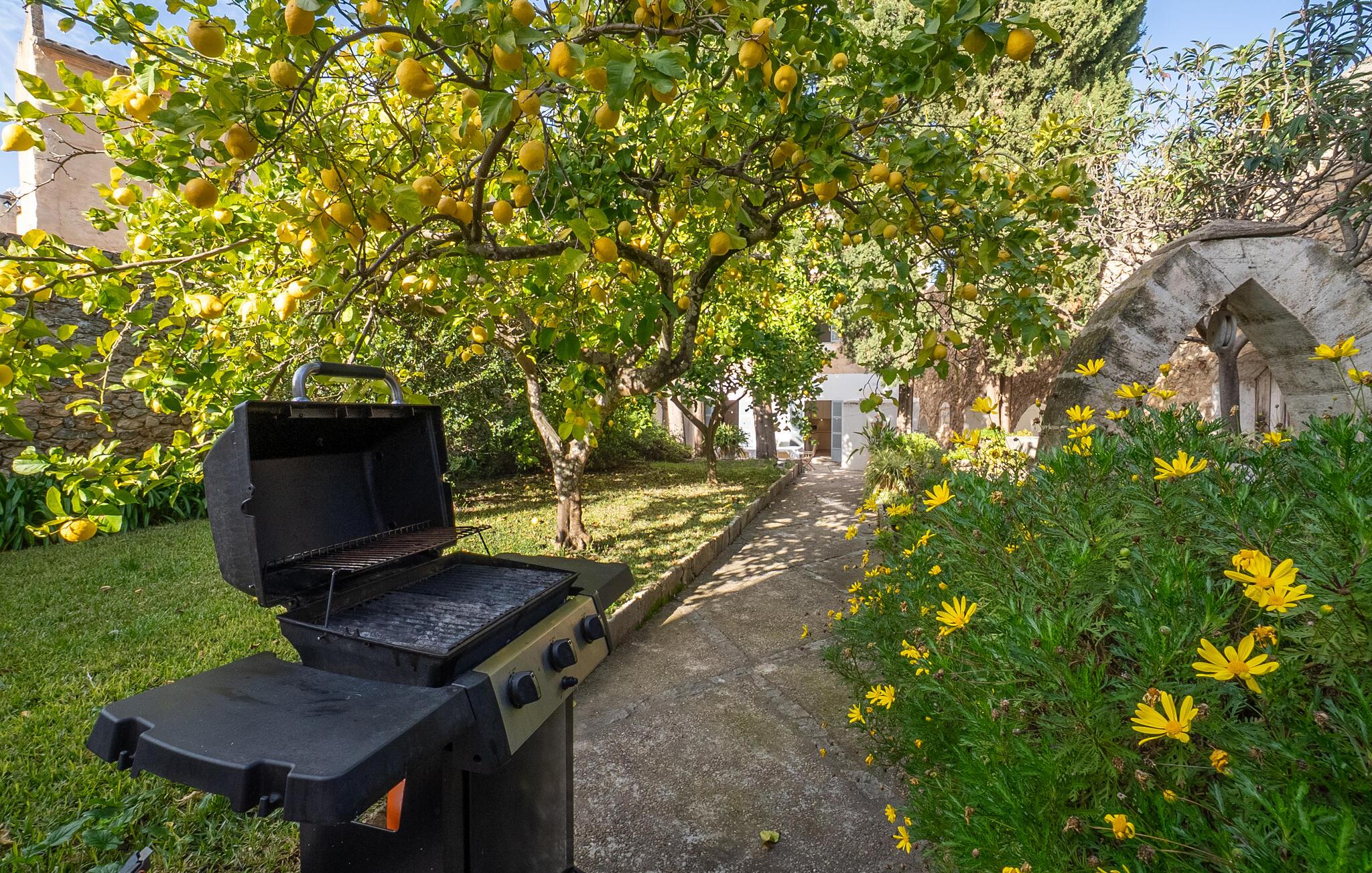 Tilbring afslappende timer i den idylliske have. Lad jer fortrylle af de duftende citrontræer og middelhavsplanter. Brug de komfortable siddepladser til at nyde solen eller læs en bog i skyggen af ??de gamle vægge. I kan spise sammen ved det store spisebord i gården, mens grillen sørger for stemningsfulde aftener.