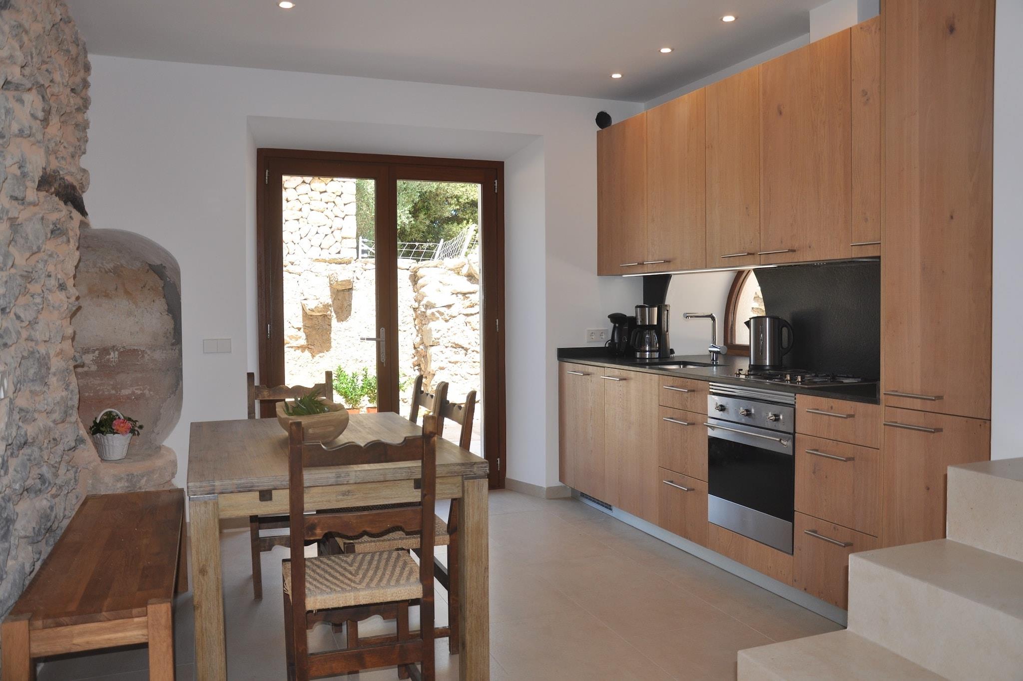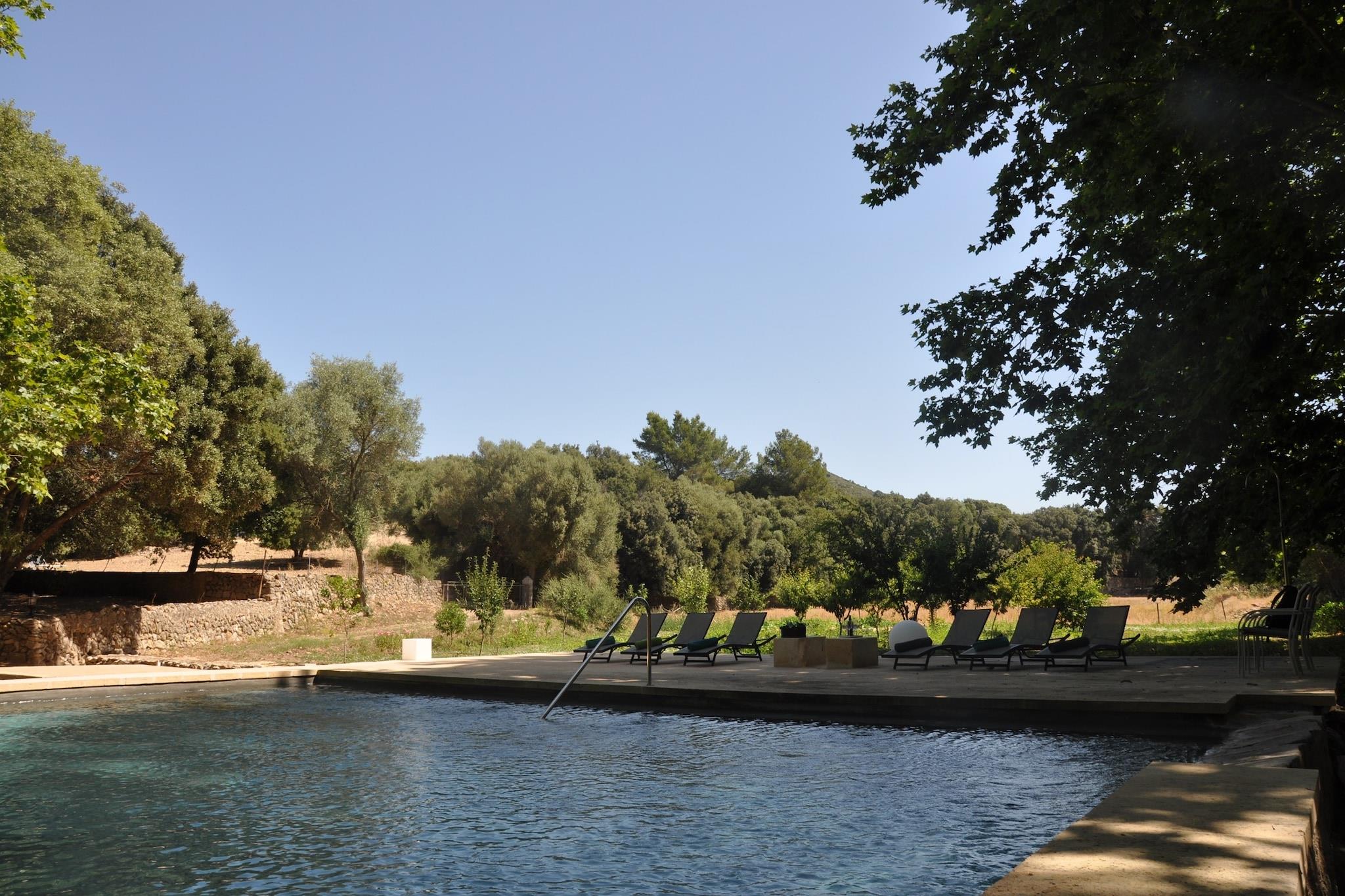 Denne smukke mallorcanske villa blev fuldstændig renoveret i 2016 og kombinerer en traditionel stil med et virkelig moderne interiør. Beliggende i en uforstyrret del af øen, på et 700.000 kvm stort område, omgivet af århundredgamle hule egetræer, oliventræer og træer med en fantastisk udsigt over landskabet, Llevant-bjergkæden og nær den naturlige park de Llevant, er denne villa en perfekt flugt fra den hektiske verden. Villaen med i alt 250 kvm består af 4 soveværelser (2 en-suite) og 3 badeværelser, en rummelig stue med tv, spisestue og fuldt udstyret køkken. Villaen har en WIFI internetforbindelse. Spisepladsen udvider også udendørs, hvilket skaber en perfekt ramme for dem, der nyder et måltid ude i fri luft. Under hensyntagen til forurening og energiforbrug blev det besluttet at anvende vedvarende energikilder til køling og opvarmning i villaen. Huset kan rumme op til 10 personer. Imidlertid opnås en optimal komfort med 8 gæster. Der er en stor swimmingpool (12x12m) med både solrige og skyggefulde loungeområder. Disse lounger har udsigt til en pitoresque have og de mallorcanske bakker. Middelhavet landskab, bakker og skove, der omgiver ejendommen er beskyttet og krydset med vandre-og cykelstier. Villaen ligger i Llevant Natural Park, kendt for sine fjerntliggende og uspolerede strande, og dens kolonier af middelhavskildpadder. Du kan både vandre eller køre gennem reserven op ad en smal vej og nyde den spektakulære udsigt over Alcudia-bugten. Indenfor parken kan Ermita de Betlem-kurven, lige ved kysten, findes. En række vandrestier starter herfra. Sandy og stenige strande og fantastiske klipper er kun 10 minutter væk. De bedste nordlige strande kan nydes: Cala Torta, Cala Mitjana, Cala Estreta, Cala Arenalt d Albarca, Cala Na Clara, Sa Canova, Cala Matzoc vil overraske dig med sin gennemsigtige vand og jomfruelige natur! Villaen ligger kun 3 km fra Ar