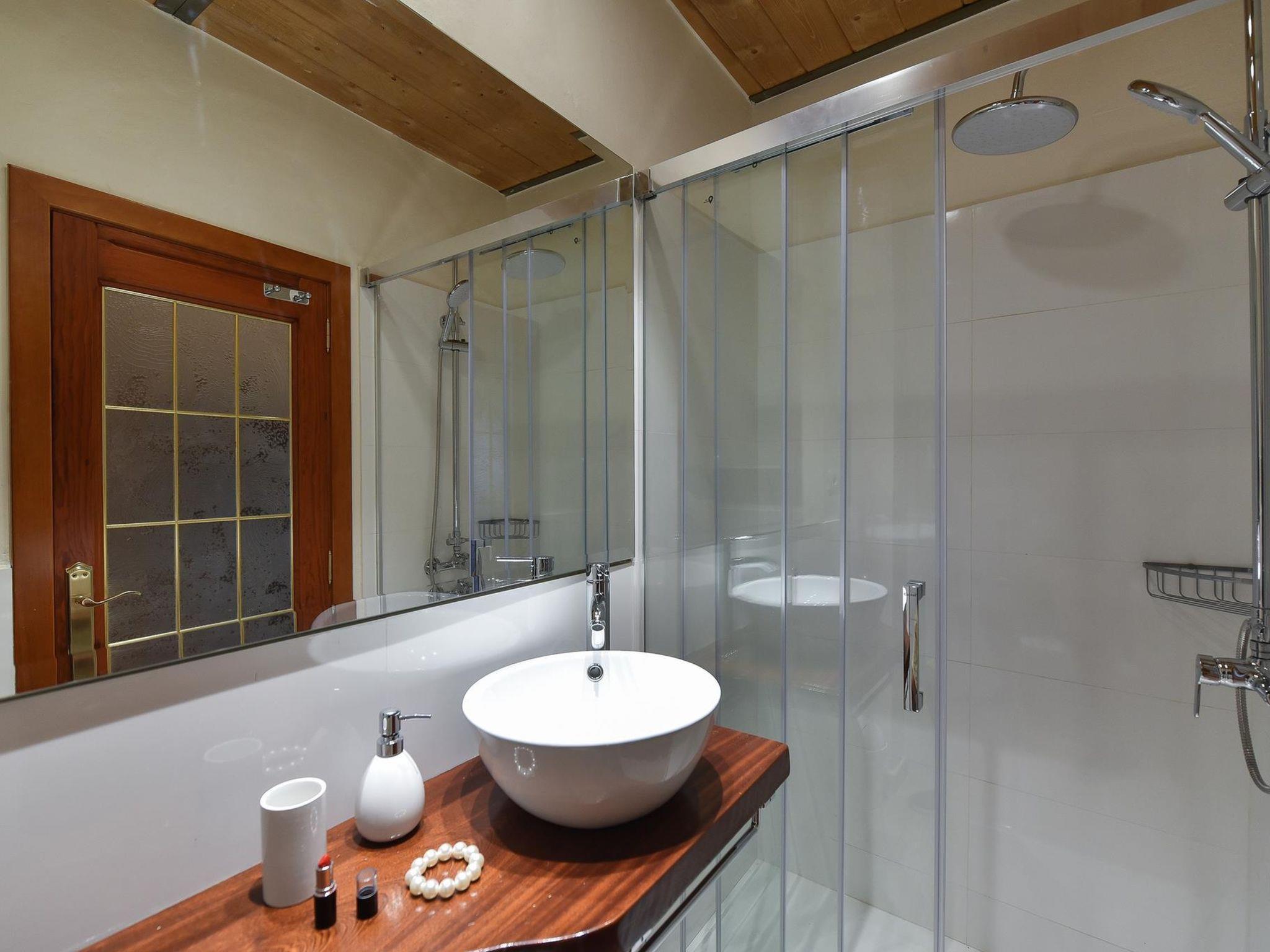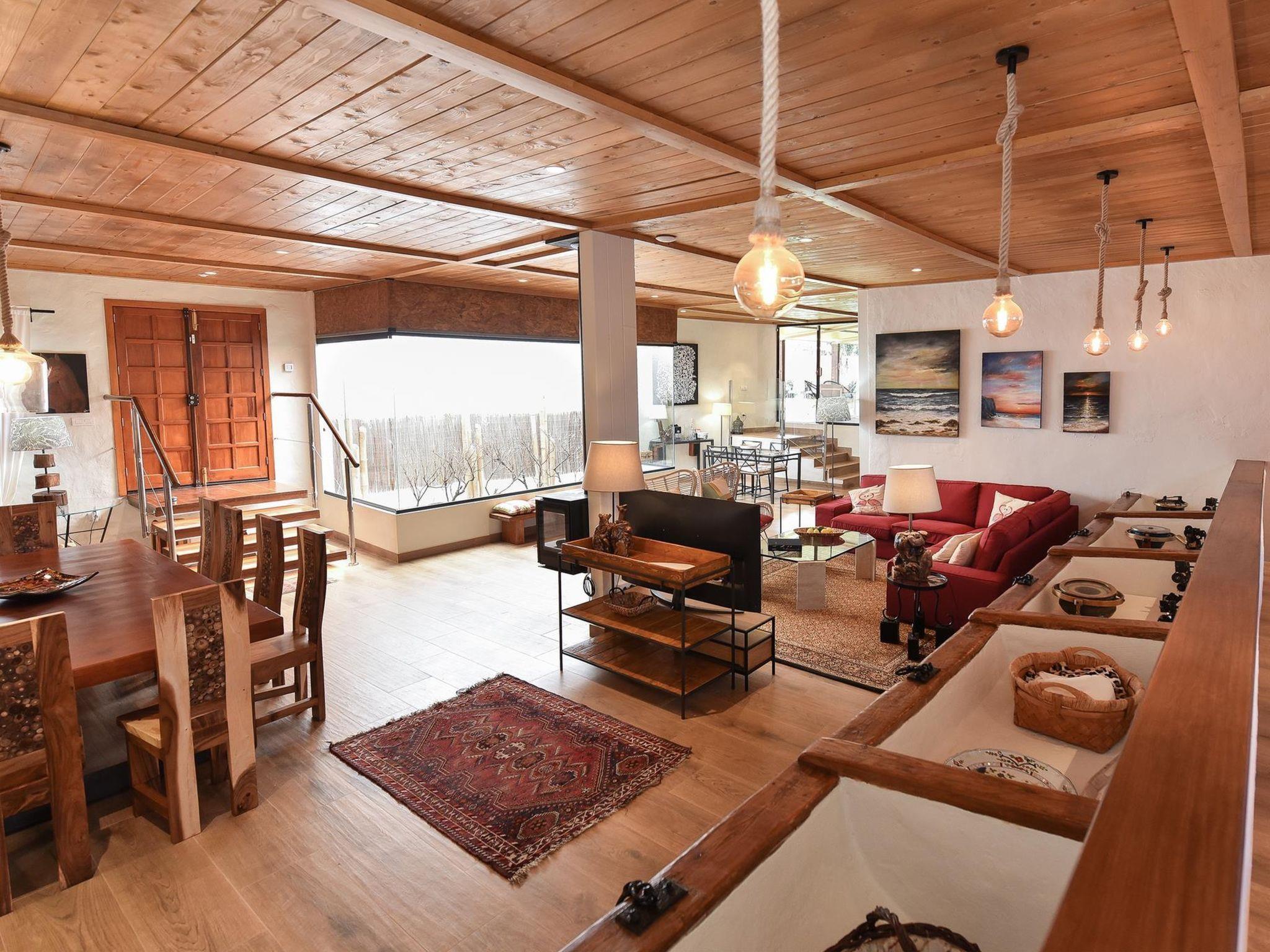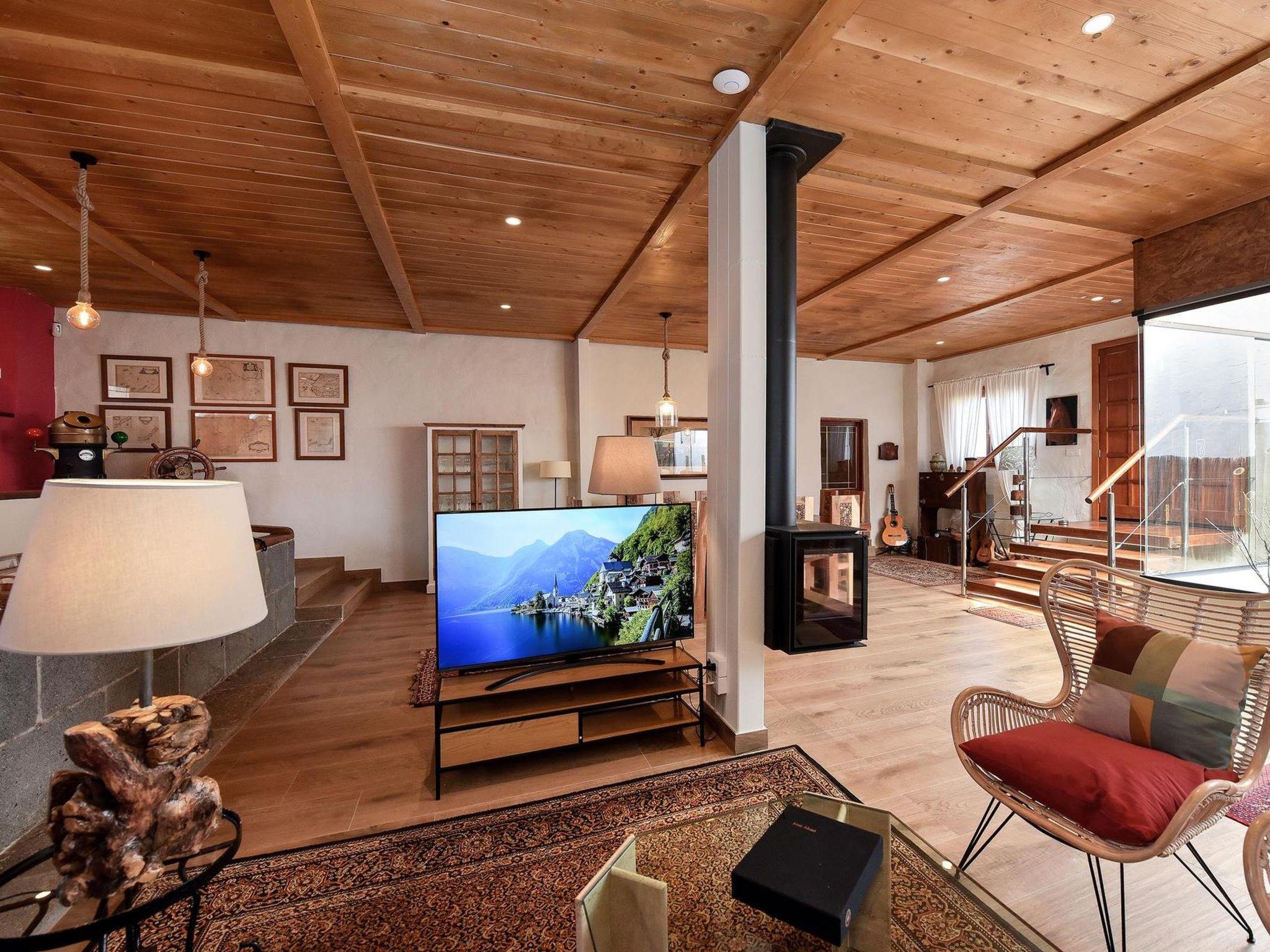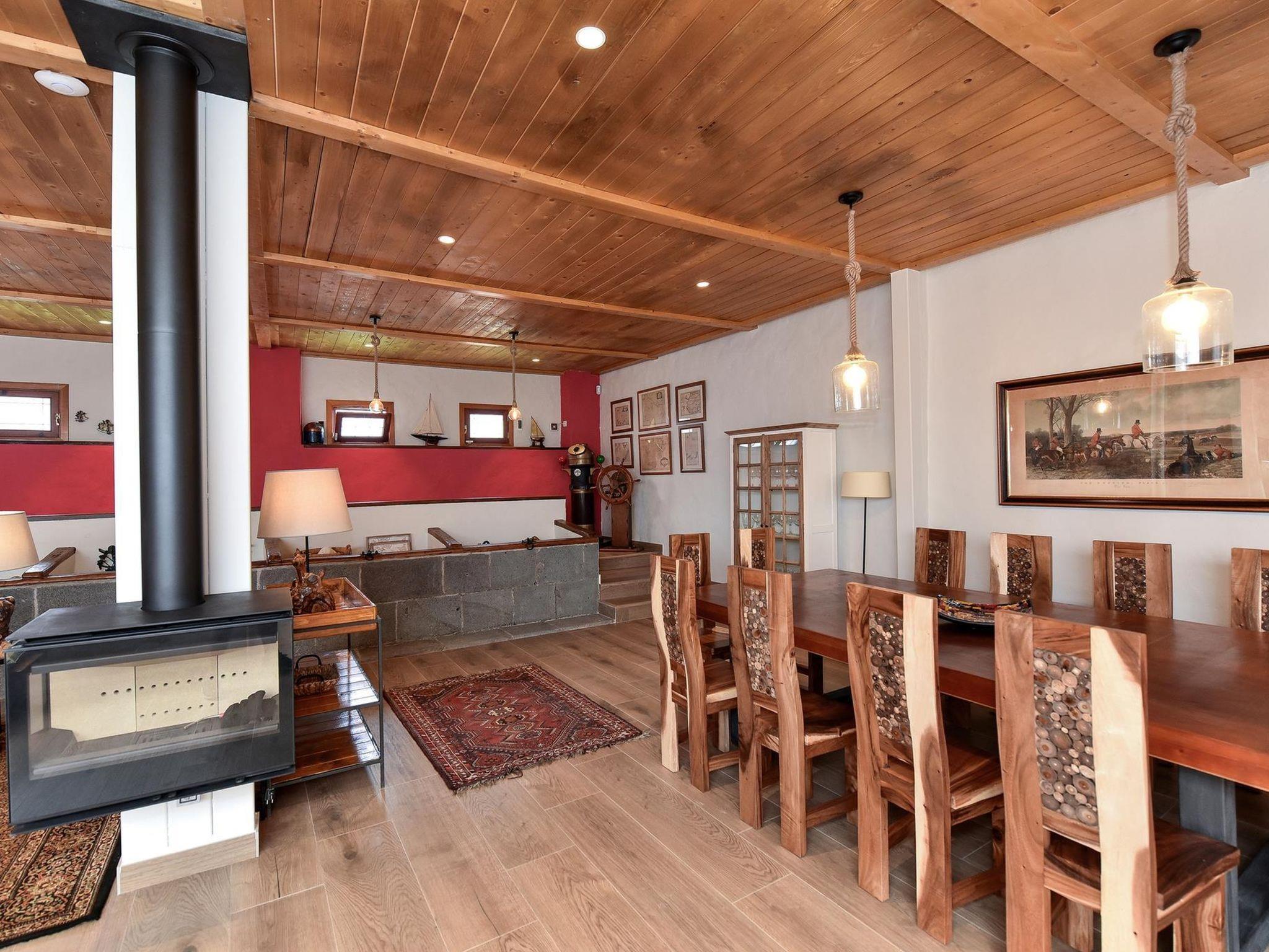 "Finca La Casona de Abajo Arucas", 6-room house 280 m2. Comfortable and rustic furnishings: living/dining room with dining table and digital TV. Exit to the patio. 4 rooms, each room with 1 french bed and shower/WC. 1 room with 1 french bed. Kitchen (oven, dishwasher, 4 ceramic glass hob hotplates, toaster, kettle, microwave, freezer, electric coffee machine) with dining table. Shower/WC. Patio. Terrace furniture, barbecue, deck chairs. View of the swimming pool and the garden. Facilities: washing machine, safe, iron, children's high chair, baby cot for up to 2 year olds, hair dryer. Internet (WiFi, free). Please note: non-smoking house. 2022-T16283 // Reg. Nr.: ESFCTU0000350100001504340000000000000VV-35-1-00187819