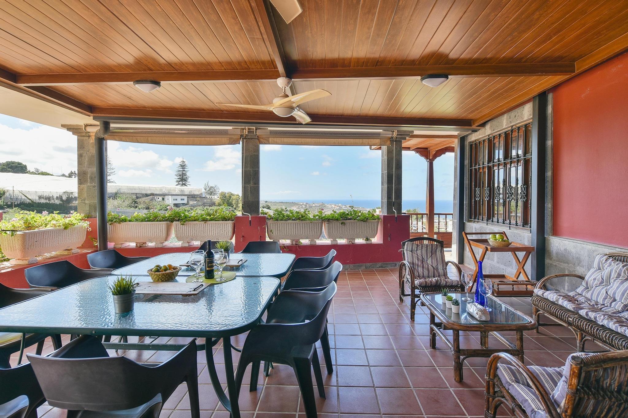 5 værelses villa i et landligt område i den nordlige del af øen med alle de faciliteter du har brug for, med havudsigt. Beliggende på en grund på 4.000 m2, kan denne smukke traditionelle kanariske villa rumme op til 10 personer, fordelt på 2 etager, har 3 soveværelser med dobbeltsenge og yderligere to med enkeltsenge, 4 badeværelser med bruser og et lille toilet. Denne villa er udstyret med et køkken med alle slags apparater, der er nødvendige for et behageligt ophold, såsom ovn, mikroovn, opvaskemaskine, brødrister, kaffemaskine og andre køkkenredskaber, du kan få brug for. Det har også et vaskerum med vaskemaskine og tørretumbler. Huset har aircondition og giver også adgang til en skøn privat tennisbane. Gæster, der booker denne ejendom, har adgang til flere lounger, indendørs og udendørs spiseområder, grill og en smuk privat opvarmet swimmingpool (mod et ekstra gebyr) omgivet af liggestole. Villaen ligger kun 8 minutters kørsel fra strandene i området og kun 15 minutter fra den berømte Las Canteras strand i hovedstaden på Gran Canaria.