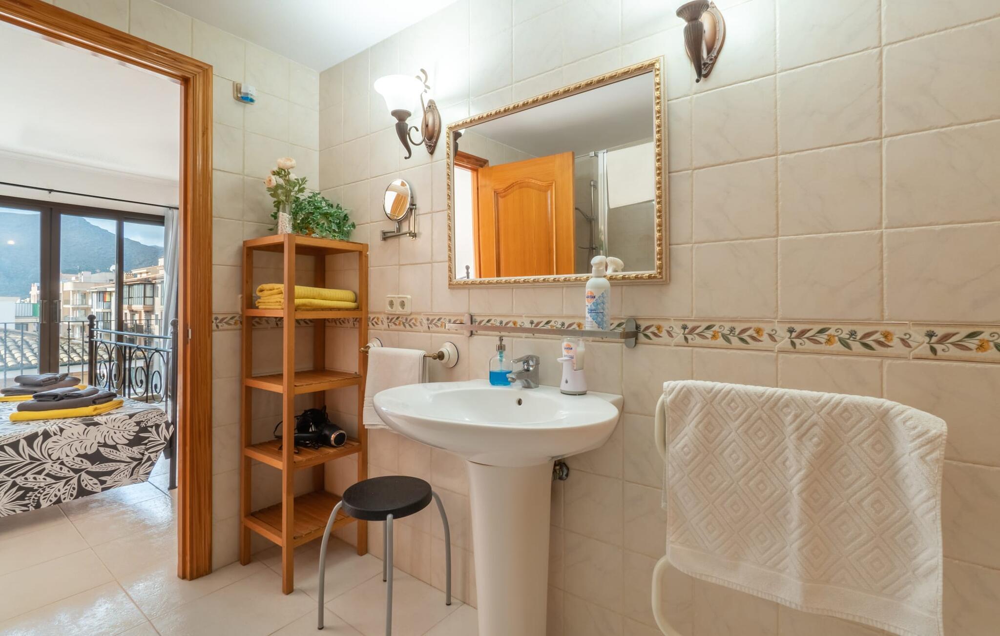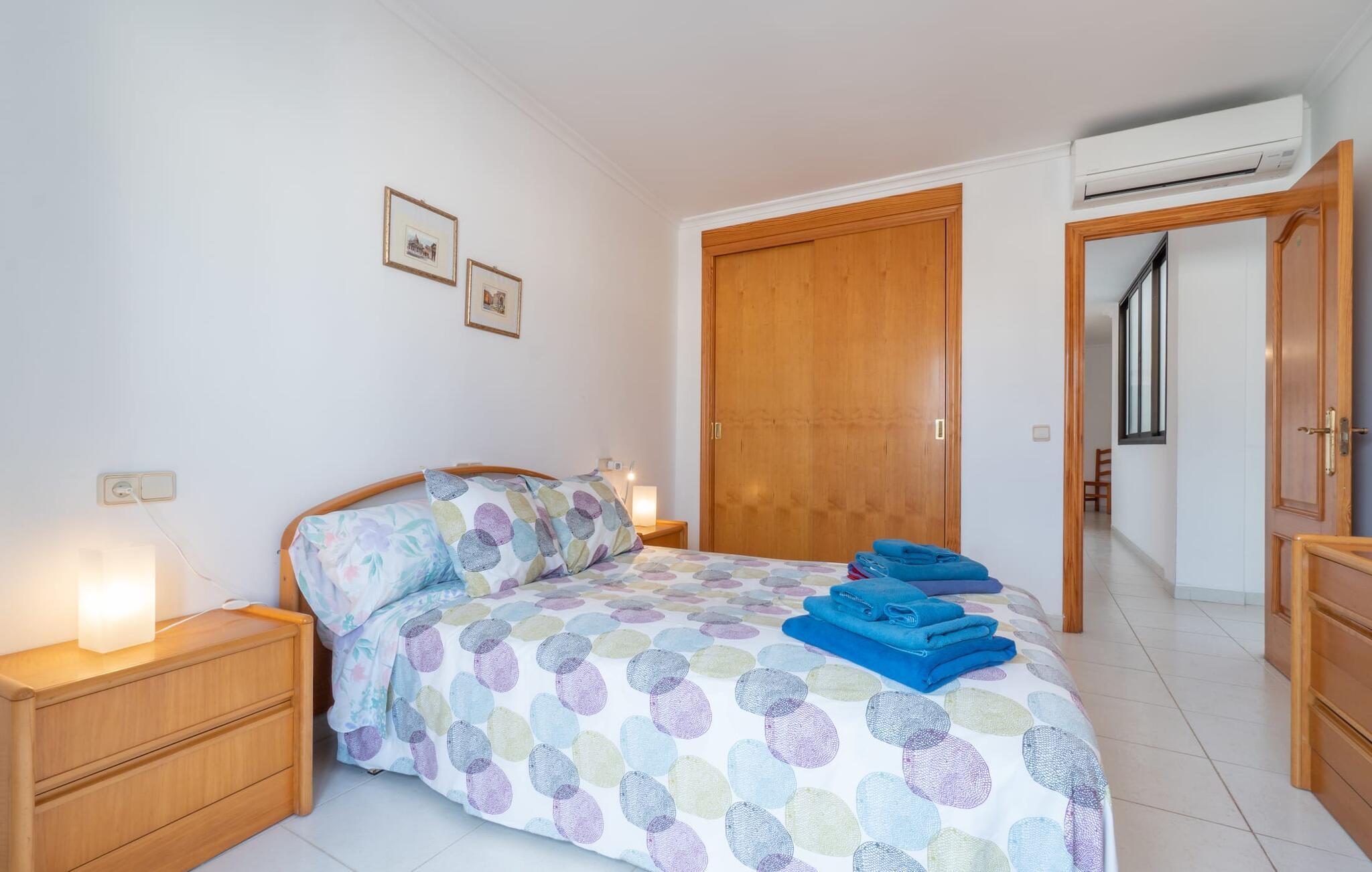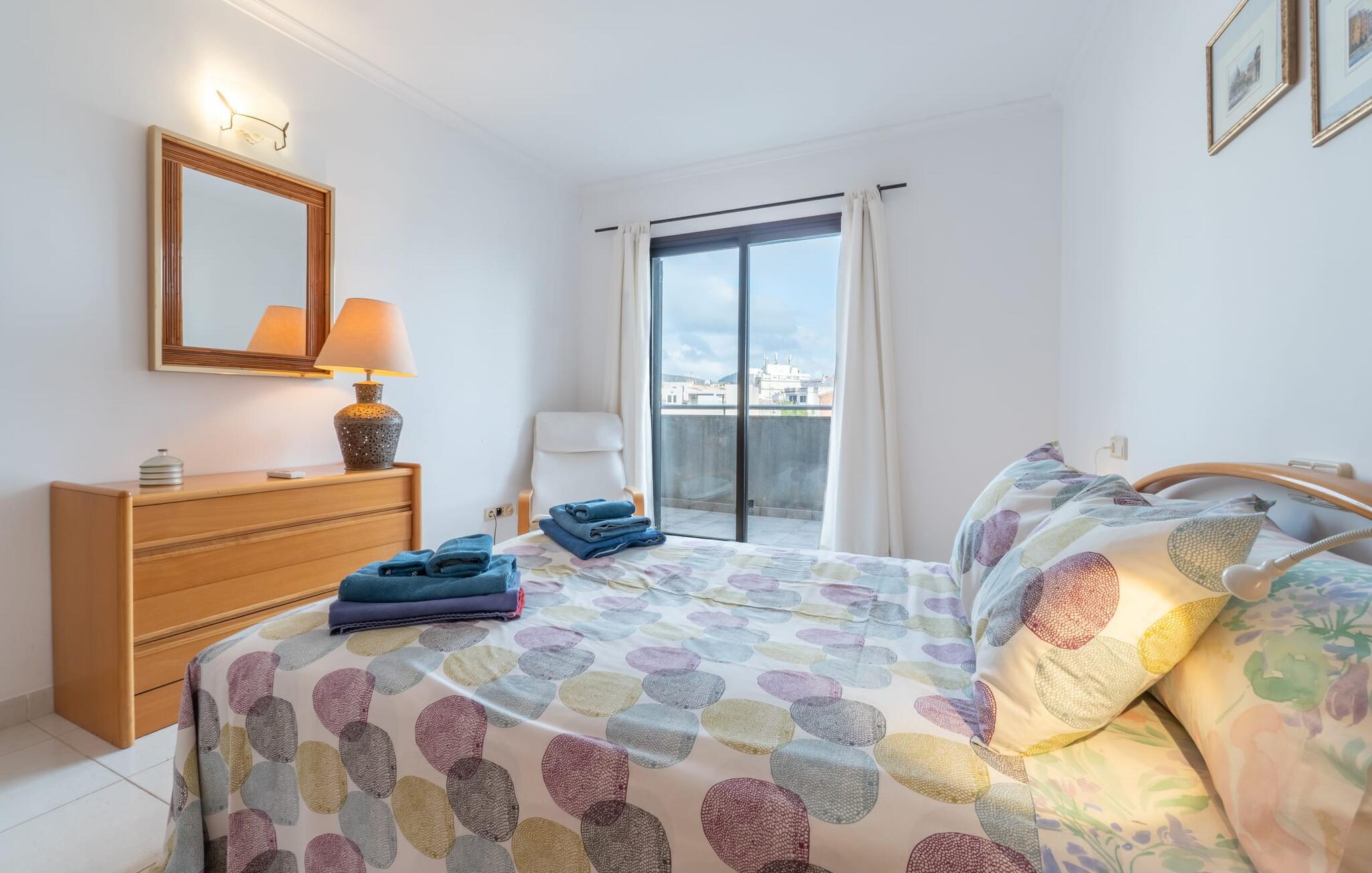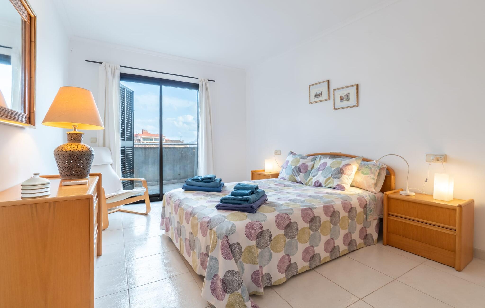 Vælger I denne ferielejlighed på Mallorca, kan I roligt efterlade jeres bil på ferien. Den ideelle tilgængelighed til alle daglige faciliteter samt stranden skaber en høj grad af fleksibilitet og spontanitet. Men I har også flere muligheder for at tilbringe tid udendørs direkte hjemme hos jer. Flere møblerede terrasseområder - overdækket eller direkte under himlen - inviterer jer til at slappe af midt i landsbyen og se landsbybegivenhederne fra et fugleperspektiv. Om aftenen kan I mødes til en grill og afslutte dagen i en venlig atmosfære. En behagelig, lys atmosfære kendetegner værelserne i denne ferielejlighed. Det er på 3. sal i et rækkehus. Den kombinerede opholds- og spisestue med TV er et hyggeligt fællesområde til afslapning og fællesspisning indendørs. Herfra er der direkte udgang til altanen. Om nødvendigt er selvforplejning let muligt i det rummelige, fuldt udstyrede køkken. Her er endda plads til endnu et bord. Og fra dette værelse kan I også træde direkte ud på altanen. Det gælder også de tre soveværelser, hvoraf det ene har eget brusebad. Endnu et badeværelse med bruser fuldender værelserne. Takket være det varme-kolde klimaanlæg er "Atico Roger de Flor" velegnet til behagelige ophold året rundt. Ferielejligheden "Atico Roger de Flor" er beliggende i centrum af Port de Pollença og er absolut imponerende med hensyn til infrastruktur: restauranter, butikker og strande er inden for gåafstand. I Pollença (godt 7 km) kan I opleve et smukt ugentligt marked om søndagen. Bemærk venligst, at denne ejendom ikke accepterer ungdomsgrupper eller polterabender. En ungdomsgruppe på denne ejendom består af personer under 30 år. Book ikke denne ejendom, hvis I er en ungdomsgruppe eller polterabend, da jeres reservation vil blive afvist, når den er booket, hvilket også kan være tilfældet ved ankomst til ejendommen eller under jeres ophold, og I vil ikke modtage en refusion