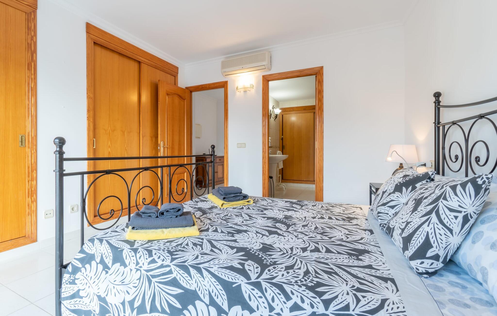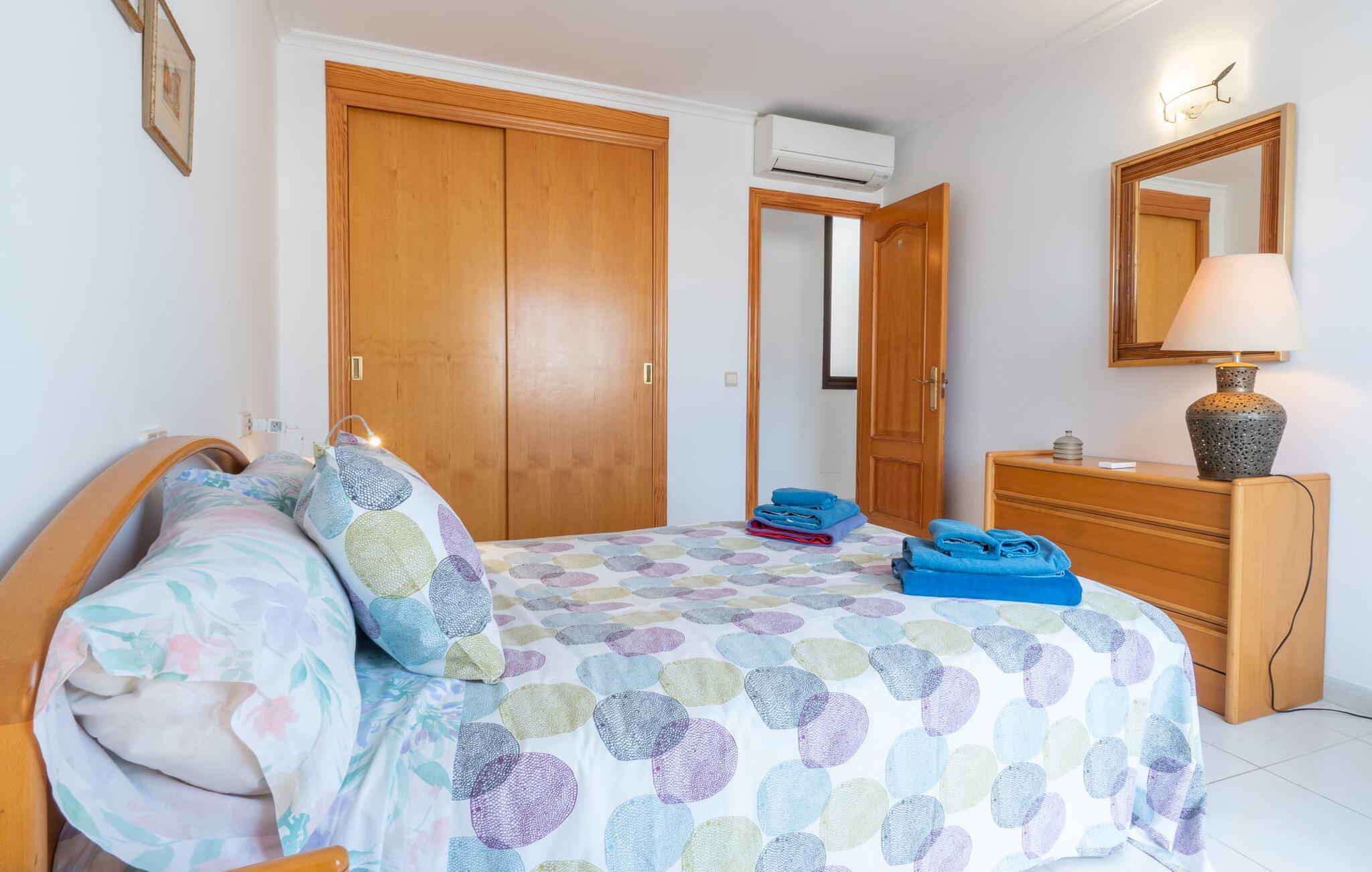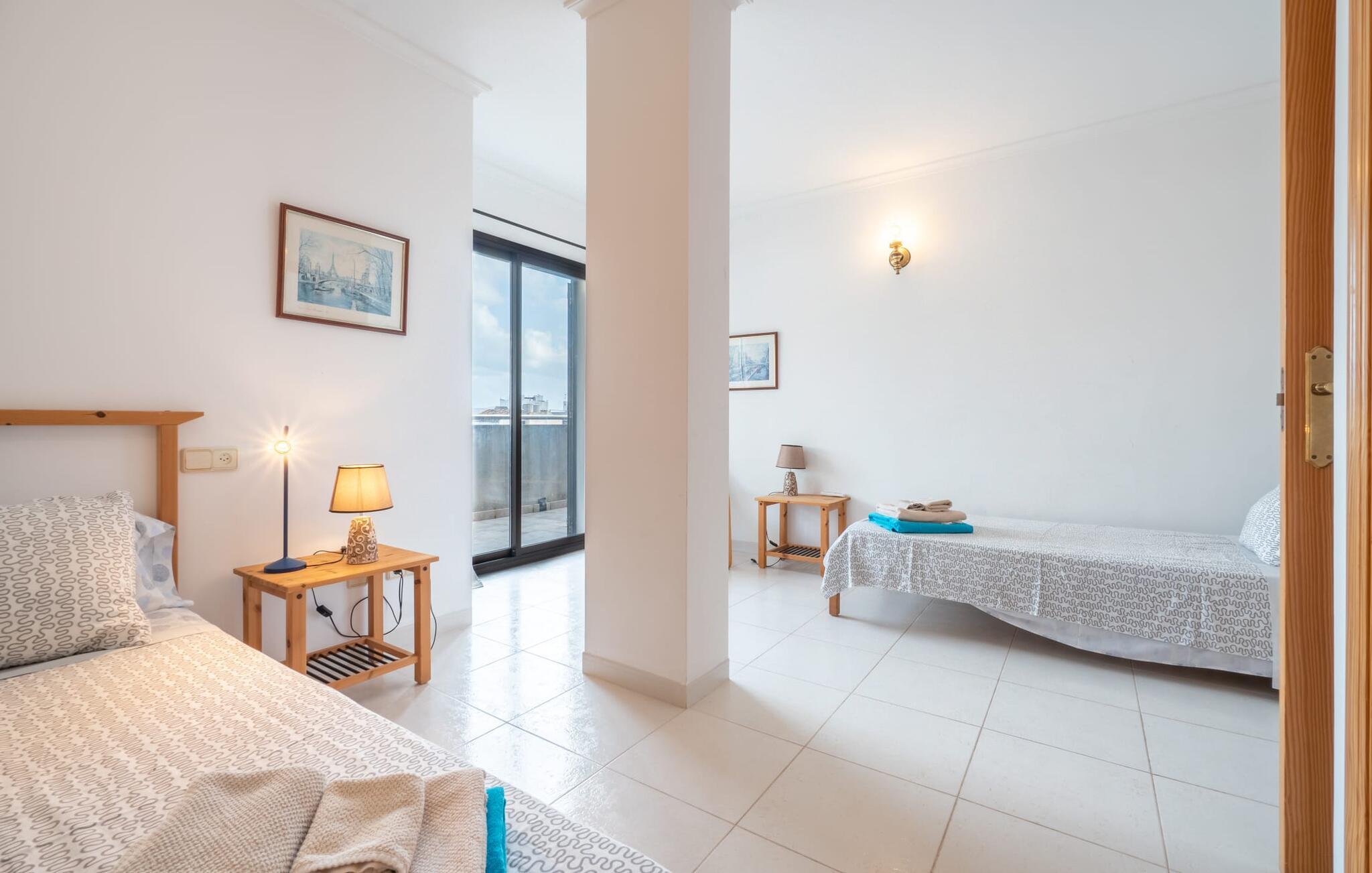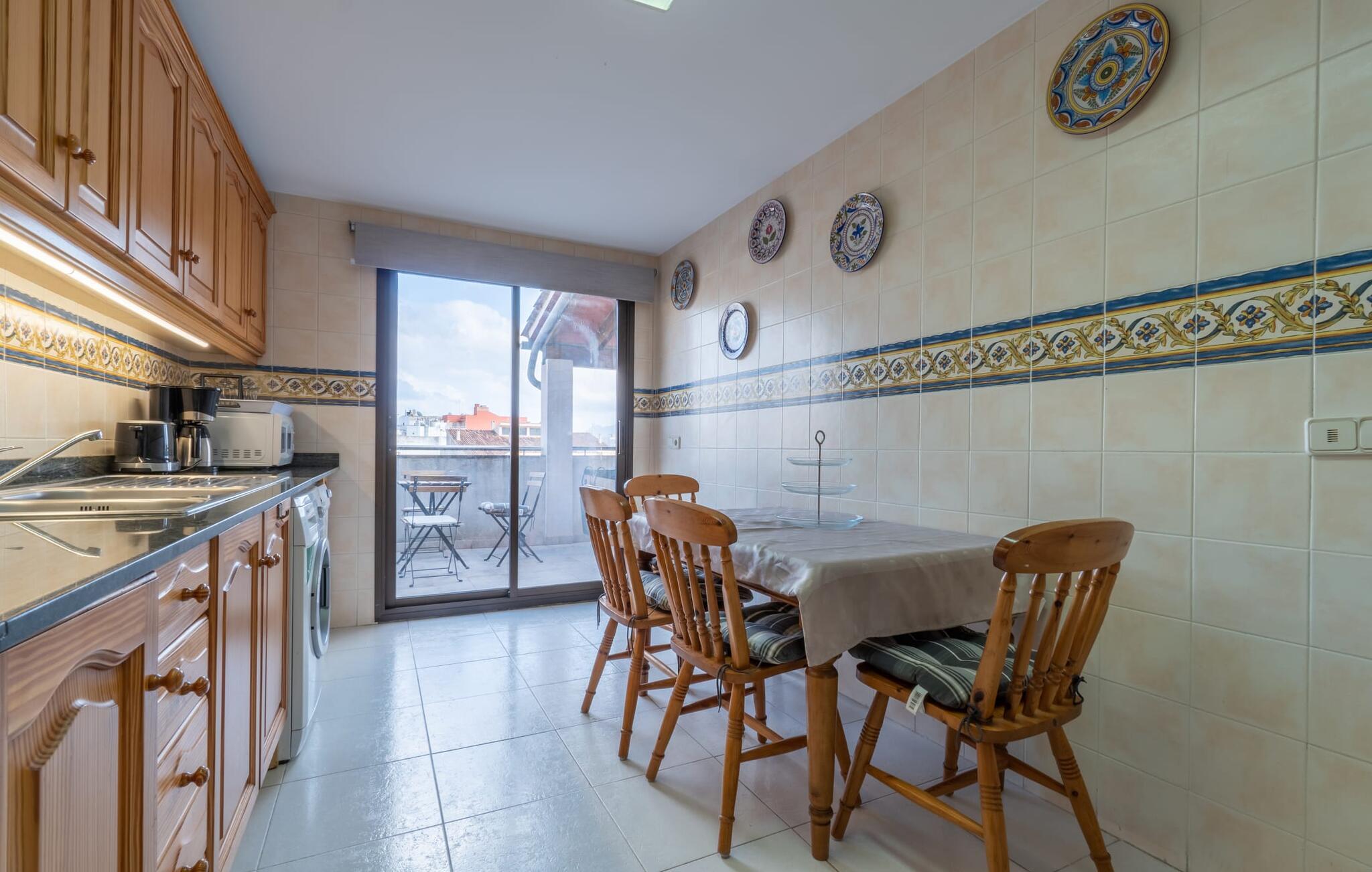 Vælger I denne ferielejlighed på Mallorca, kan I roligt efterlade jeres bil på ferien. Den ideelle tilgængelighed til alle daglige faciliteter samt stranden skaber en høj grad af fleksibilitet og spontanitet. Men I har også flere muligheder for at tilbringe tid udendørs direkte hjemme hos jer. Flere møblerede terrasseområder - overdækket eller direkte under himlen - inviterer jer til at slappe af midt i landsbyen og se landsbybegivenhederne fra et fugleperspektiv. Om aftenen kan I mødes til en grill og afslutte dagen i en venlig atmosfære. En behagelig, lys atmosfære kendetegner værelserne i denne ferielejlighed. Det er på 3. sal i et rækkehus. Den kombinerede opholds- og spisestue med TV er et hyggeligt fællesområde til afslapning og fællesspisning indendørs. Herfra er der direkte udgang til altanen. Om nødvendigt er selvforplejning let muligt i det rummelige, fuldt udstyrede køkken. Her er endda plads til endnu et bord. Og fra dette værelse kan I også træde direkte ud på altanen. Det gælder også de tre soveværelser, hvoraf det ene har eget brusebad. Endnu et badeværelse med bruser fuldender værelserne. Takket være det varme-kolde klimaanlæg er "Atico Roger de Flor" velegnet til behagelige ophold året rundt. Ferielejligheden "Atico Roger de Flor" er beliggende i centrum af Port de Pollença og er absolut imponerende med hensyn til infrastruktur: restauranter, butikker og strande er inden for gåafstand. I Pollença (godt 7 km) kan I opleve et smukt ugentligt marked om søndagen. Bemærk venligst, at denne ejendom ikke accepterer ungdomsgrupper eller polterabender. En ungdomsgruppe på denne ejendom består af personer under 30 år. Book ikke denne ejendom, hvis I er en ungdomsgruppe eller polterabend, da jeres reservation vil blive afvist, når den er booket, hvilket også kan være tilfældet ved ankomst til ejendommen eller under jeres ophold, og I vil ikke modtage en refusion