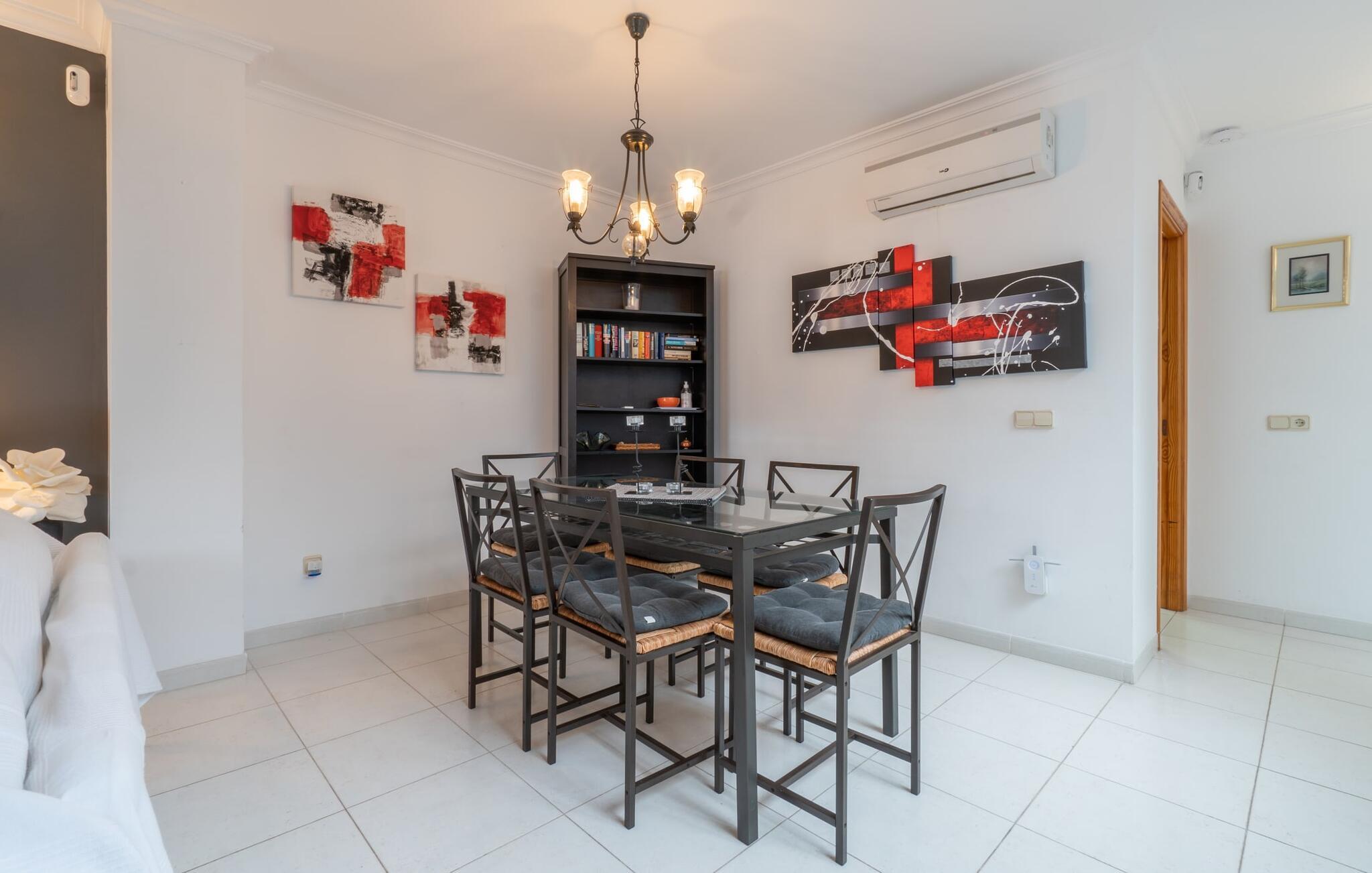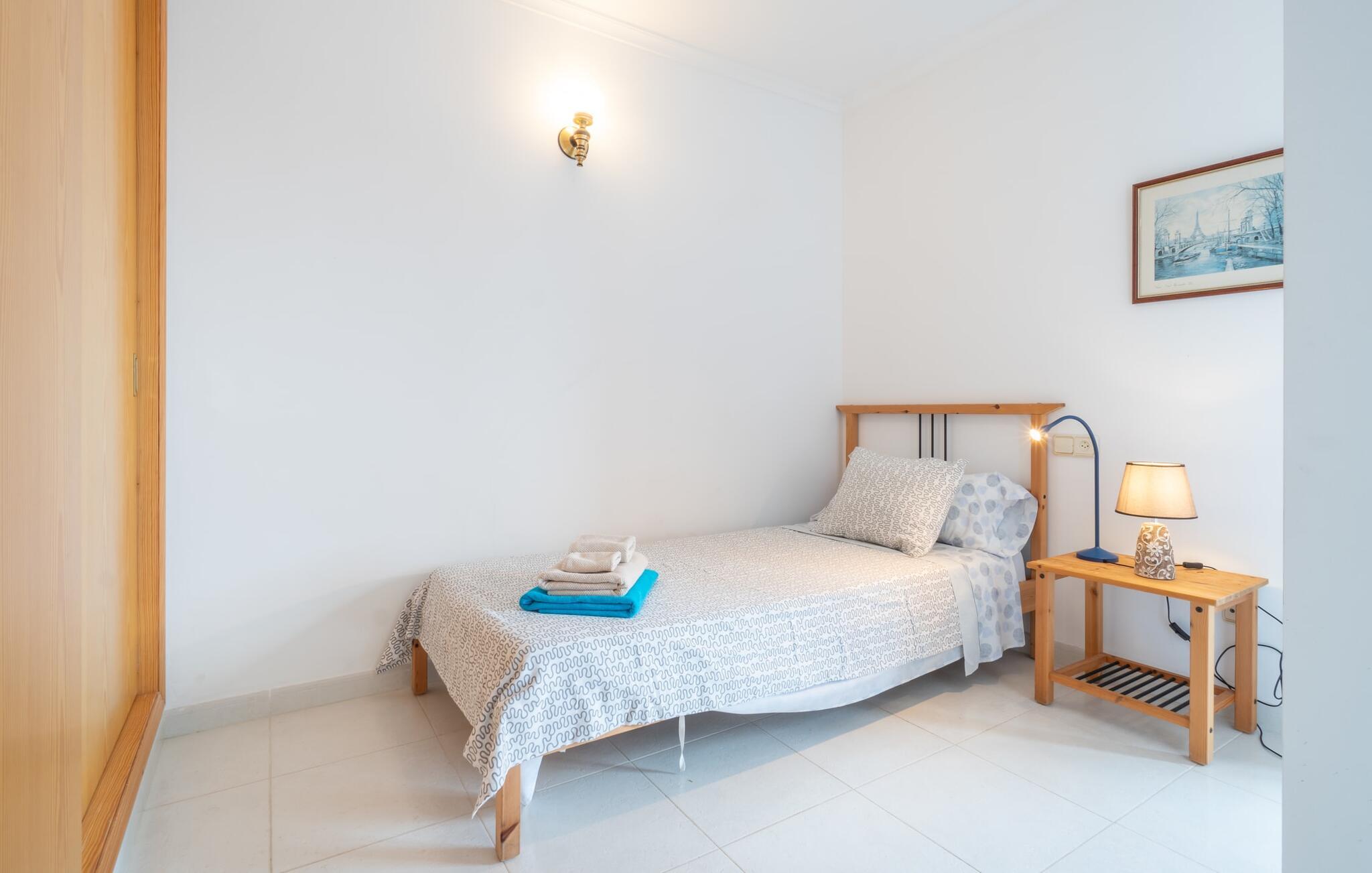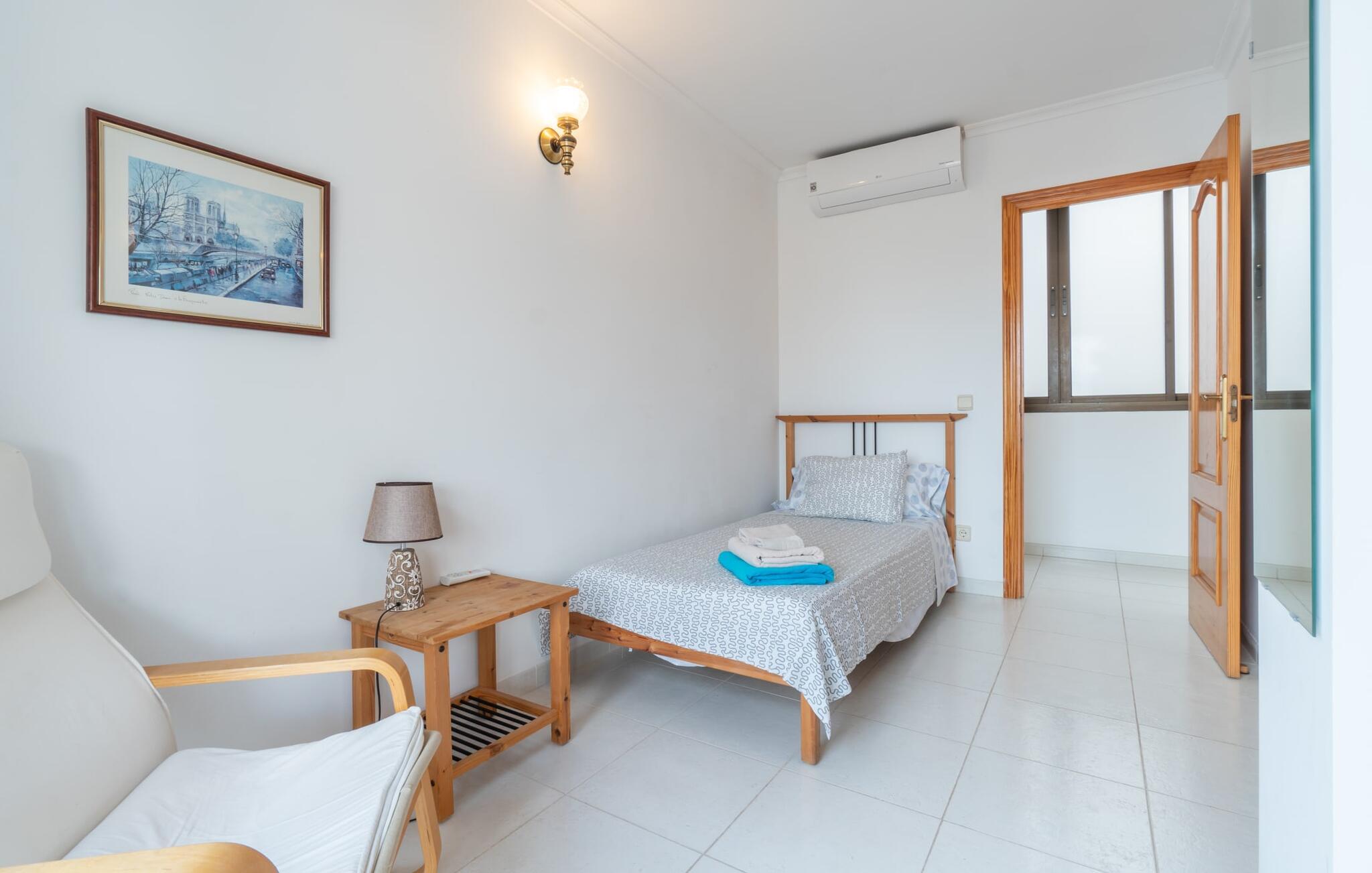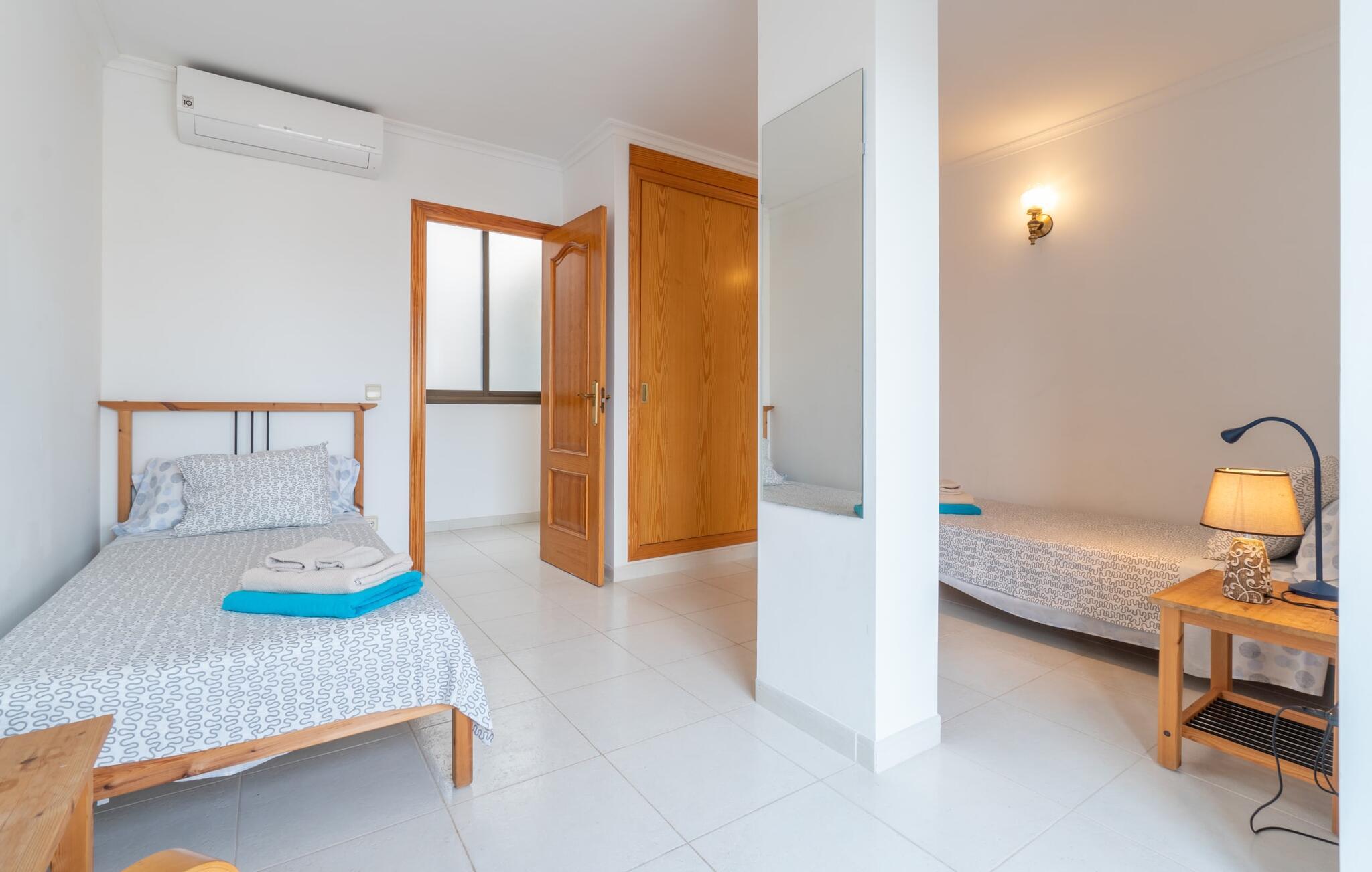 Vælger I denne ferielejlighed på Mallorca, kan I roligt efterlade jeres bil på ferien. Den ideelle tilgængelighed til alle daglige faciliteter samt stranden skaber en høj grad af fleksibilitet og spontanitet. Men I har også flere muligheder for at tilbringe tid udendørs direkte hjemme hos jer. Flere møblerede terrasseområder - overdækket eller direkte under himlen - inviterer jer til at slappe af midt i landsbyen og se landsbybegivenhederne fra et fugleperspektiv. Om aftenen kan I mødes til en grill og afslutte dagen i en venlig atmosfære. En behagelig, lys atmosfære kendetegner værelserne i denne ferielejlighed. Det er på 3. sal i et rækkehus. Den kombinerede opholds- og spisestue med TV er et hyggeligt fællesområde til afslapning og fællesspisning indendørs. Herfra er der direkte udgang til altanen. Om nødvendigt er selvforplejning let muligt i det rummelige, fuldt udstyrede køkken. Her er endda plads til endnu et bord. Og fra dette værelse kan I også træde direkte ud på altanen. Det gælder også de tre soveværelser, hvoraf det ene har eget brusebad. Endnu et badeværelse med bruser fuldender værelserne. Takket være det varme-kolde klimaanlæg er "Atico Roger de Flor" velegnet til behagelige ophold året rundt. Ferielejligheden "Atico Roger de Flor" er beliggende i centrum af Port de Pollença og er absolut imponerende med hensyn til infrastruktur: restauranter, butikker og strande er inden for gåafstand. I Pollença (godt 7 km) kan I opleve et smukt ugentligt marked om søndagen. Bemærk venligst, at denne ejendom ikke accepterer ungdomsgrupper eller polterabender. En ungdomsgruppe på denne ejendom består af personer under 30 år. Book ikke denne ejendom, hvis I er en ungdomsgruppe eller polterabend, da jeres reservation vil blive afvist, når den er booket, hvilket også kan være tilfældet ved ankomst til ejendommen eller under jeres ophold, og I vil ikke modtage en refusion