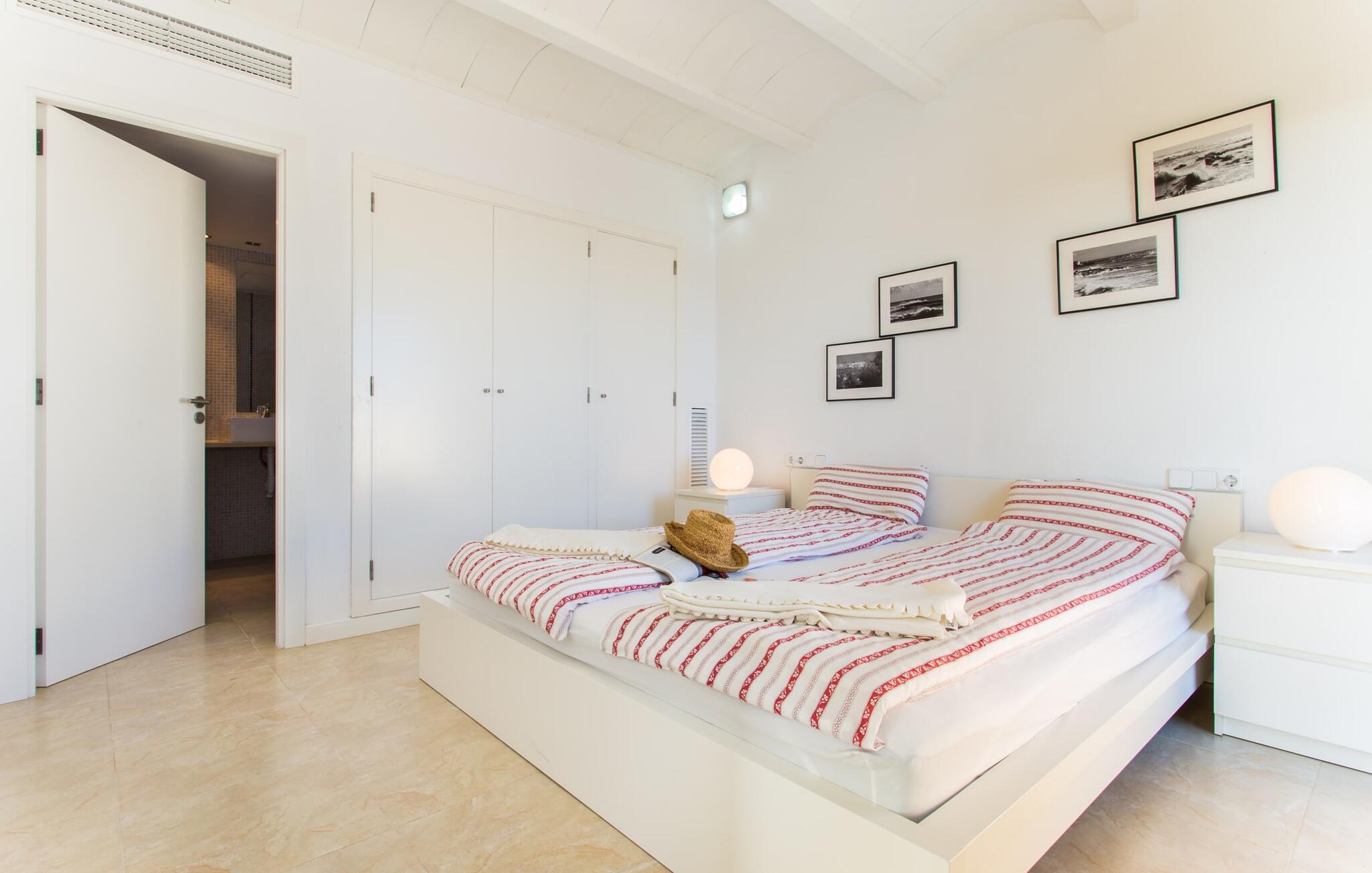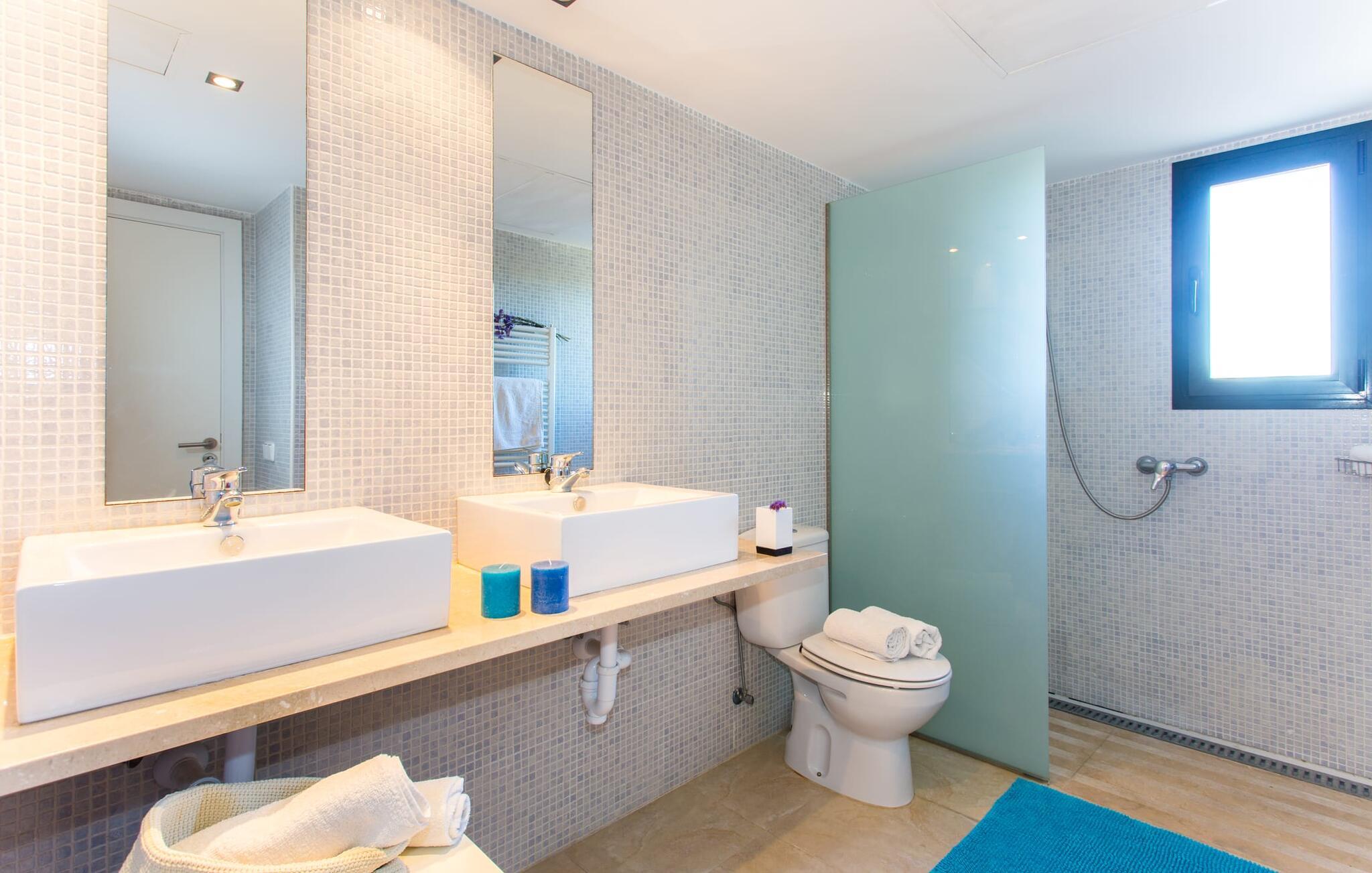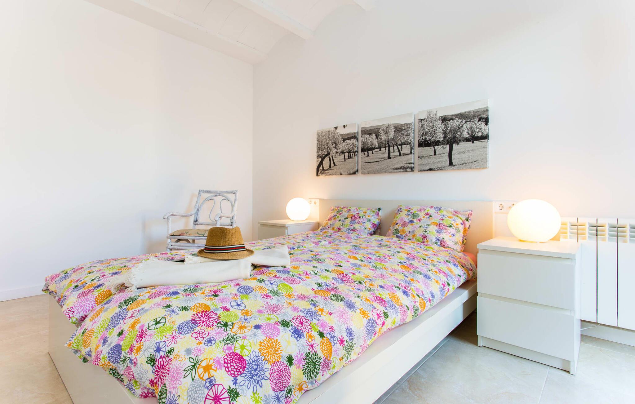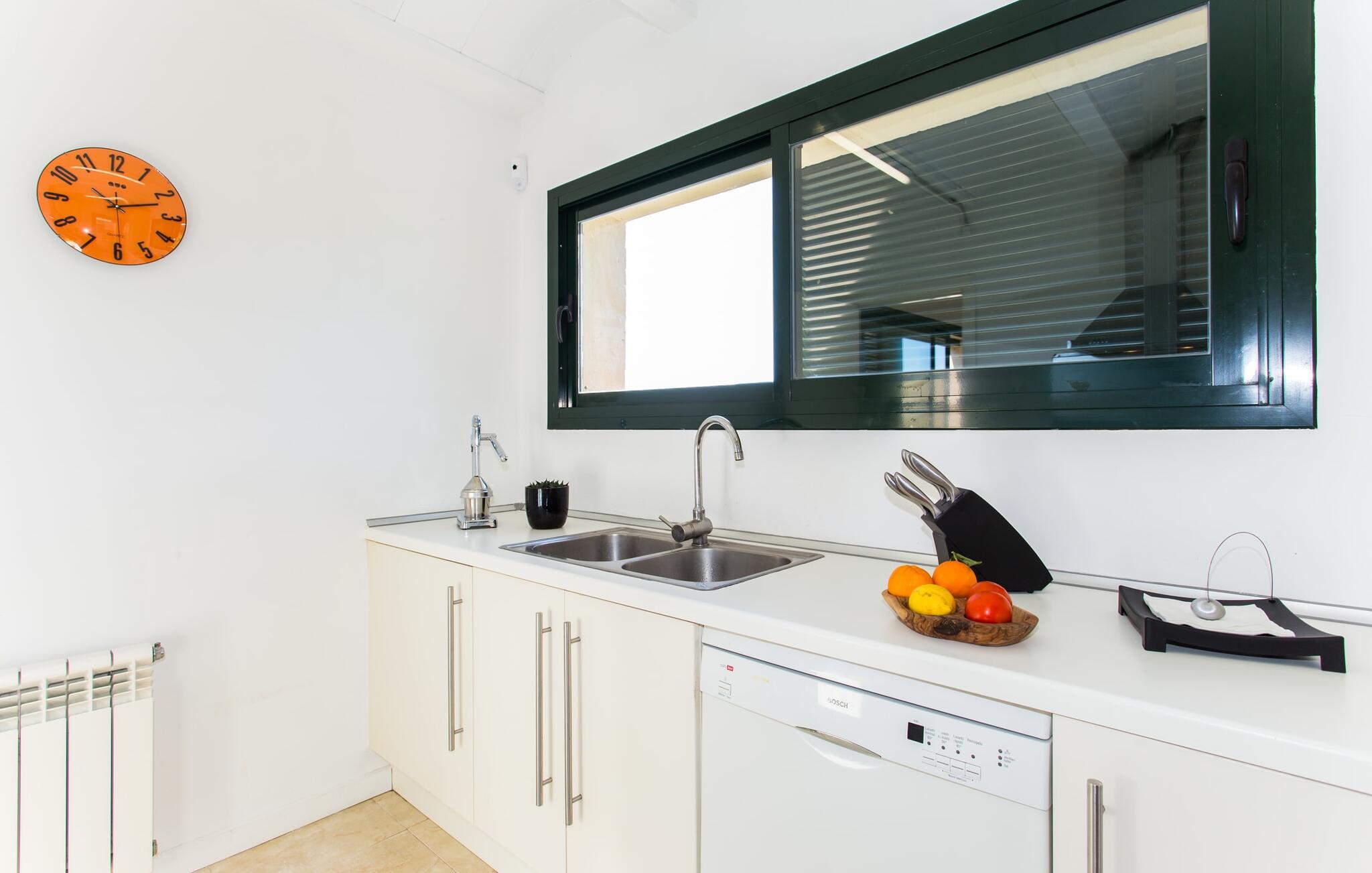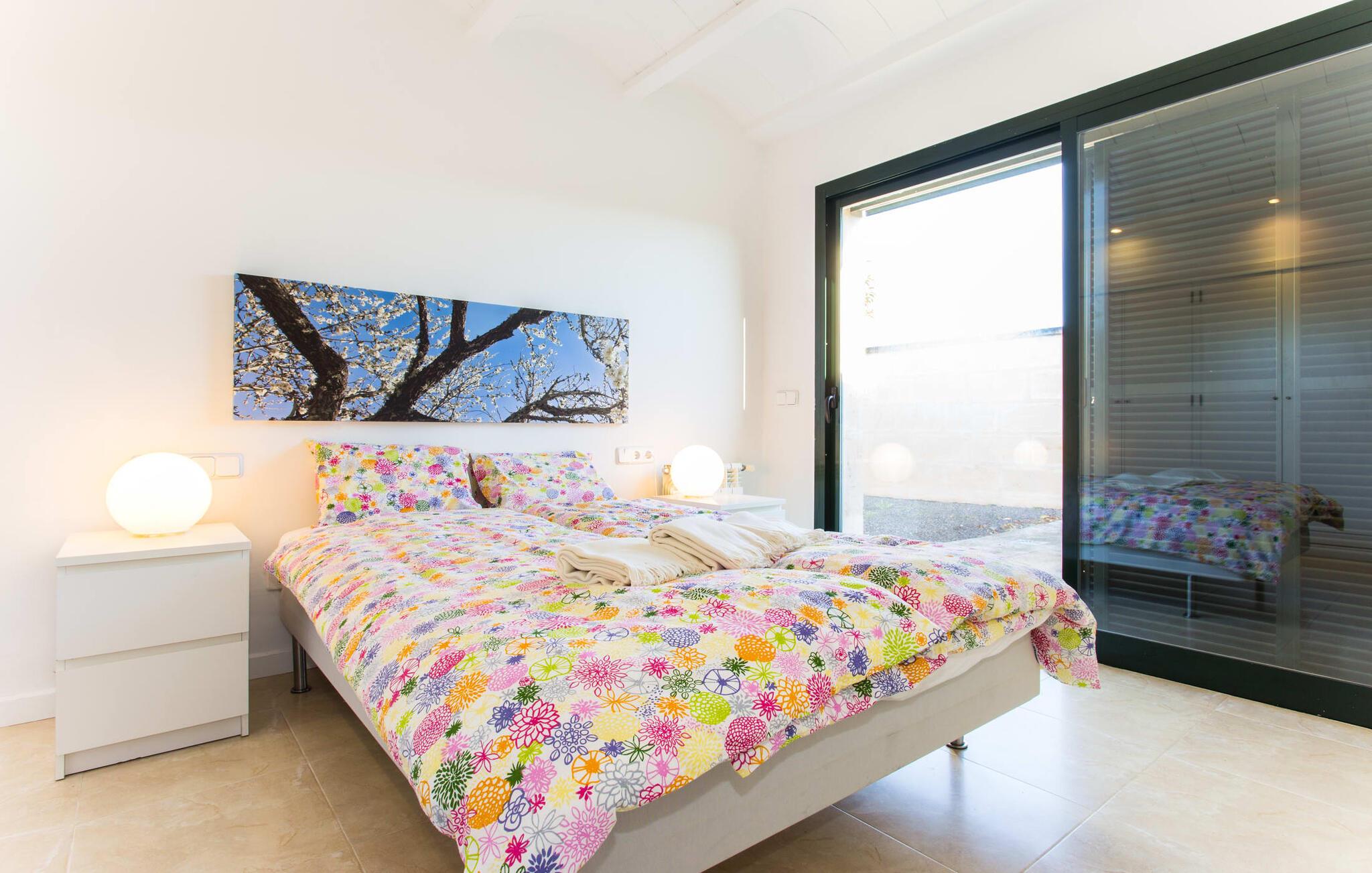 Den moderne villa "Baix des Pujol" har en attraktiv udvendig facade af synligt murværk og er omgivet af store græsplæner, der tilbyder et afslappende miljø under middelhavssolen. poolen og en skyggefuld terrasse på bagsiden. Poolen dekoreret med blå mosaikfliser og trappeindgangen inviterer jer til at slappe af i det unikke middelhavslys. En muret grill inviterer jer til at tage på kulinariske opdagelsesture med lokale markedsingredienser. Der er skyggefulde parkeringspladser i nærheden af huset stue med udgang til terrasse og to komfortable sofaer og en stilfuld pejs til køligere aftener I tilknytning til spisepladsen ligger det fuldt udstyrede køkken, som komfortabelt kan rumme seks voksne og to børn. På dette niveau er der tre soveværelser og tre badeværelser, ovenpå er der et fjerde imponerende soveværelse og et ensuite badeværelse. Hvert soveværelse er individuelt indrettet, og villaen er udstyret med aircondition og varme for at give komfort hele året rundt. Den moderne villa "Baix des Pujol" ligger midt på øen mellem de to landlige byer Petra og Ariany og byder på en vidunderlig udsigt over det omkringliggende landskab og mod Ariany. Det er et glimrende udgangspunkt for ture mod nord, øst eller vestkysten samt til Manacor, Alcúdia-bugten og adskillige strande som San Baulo og Can Picafort. Elforbruget i denne bolig er inkluderet i prisen i det sjældne tilfælde af overskridelse I vil blive opkrævet gebyret kontant på stedet.