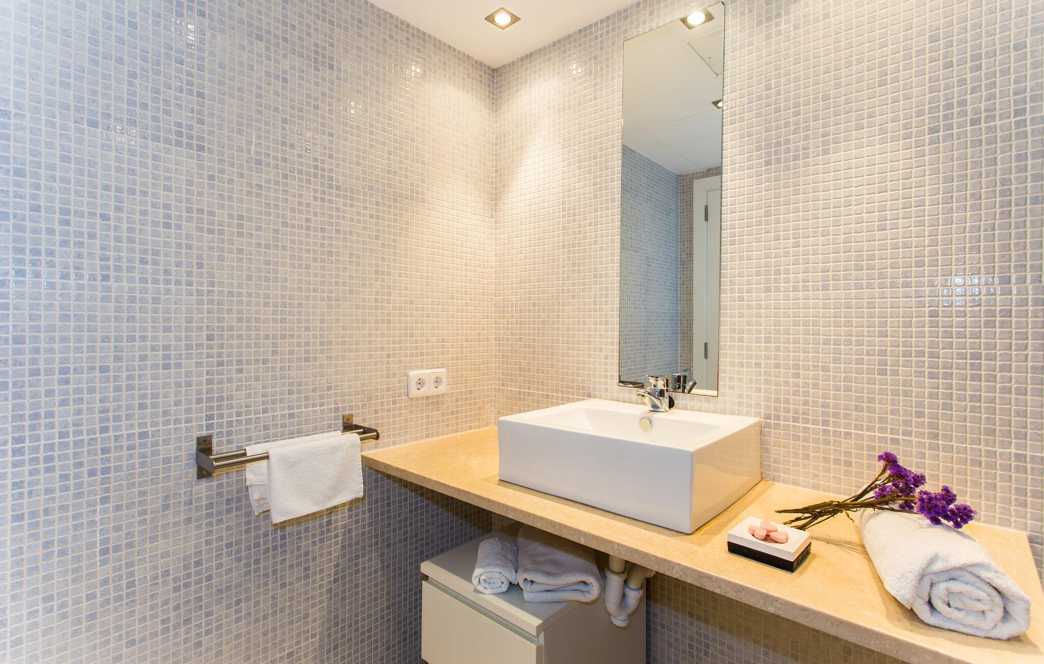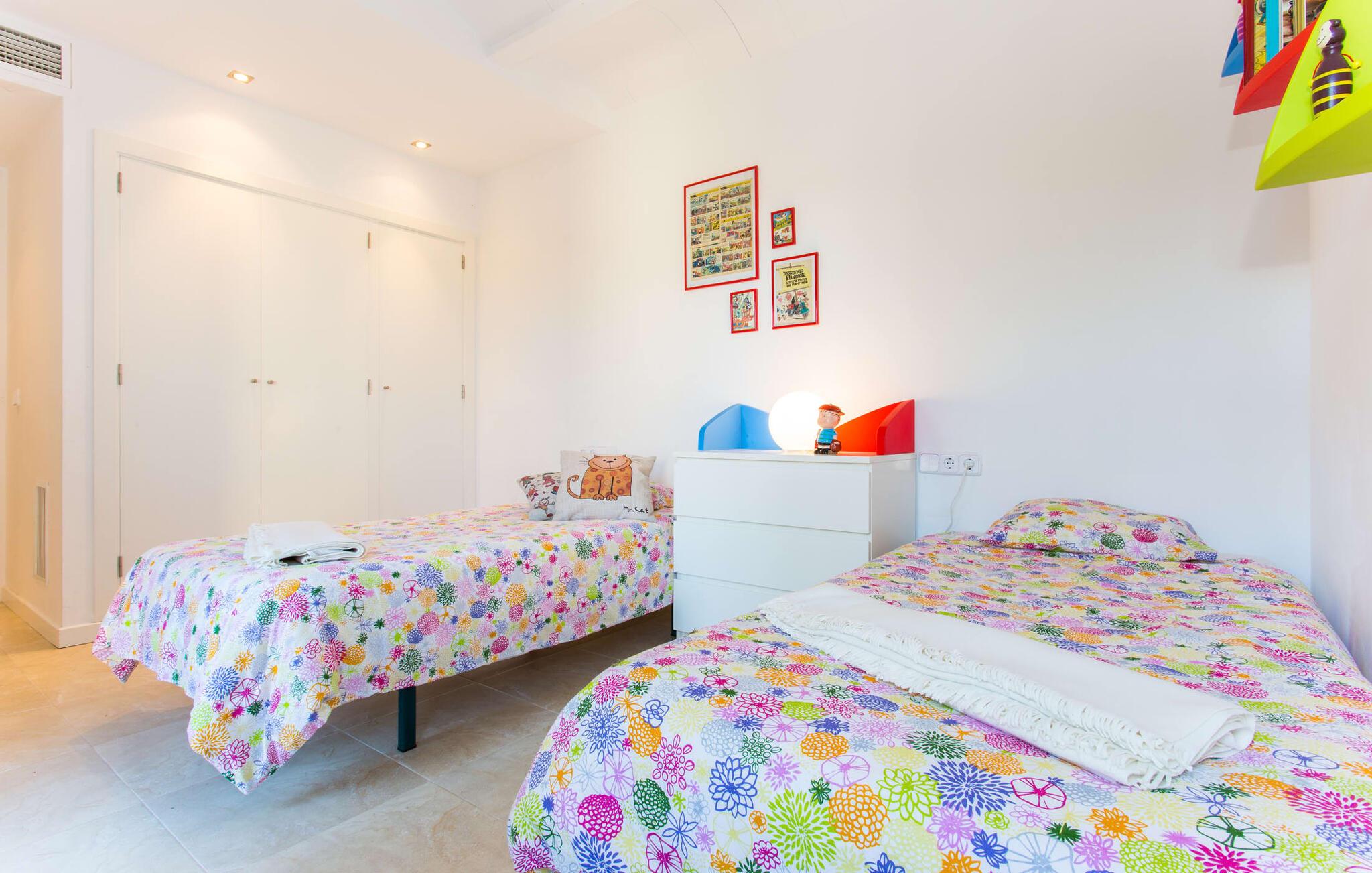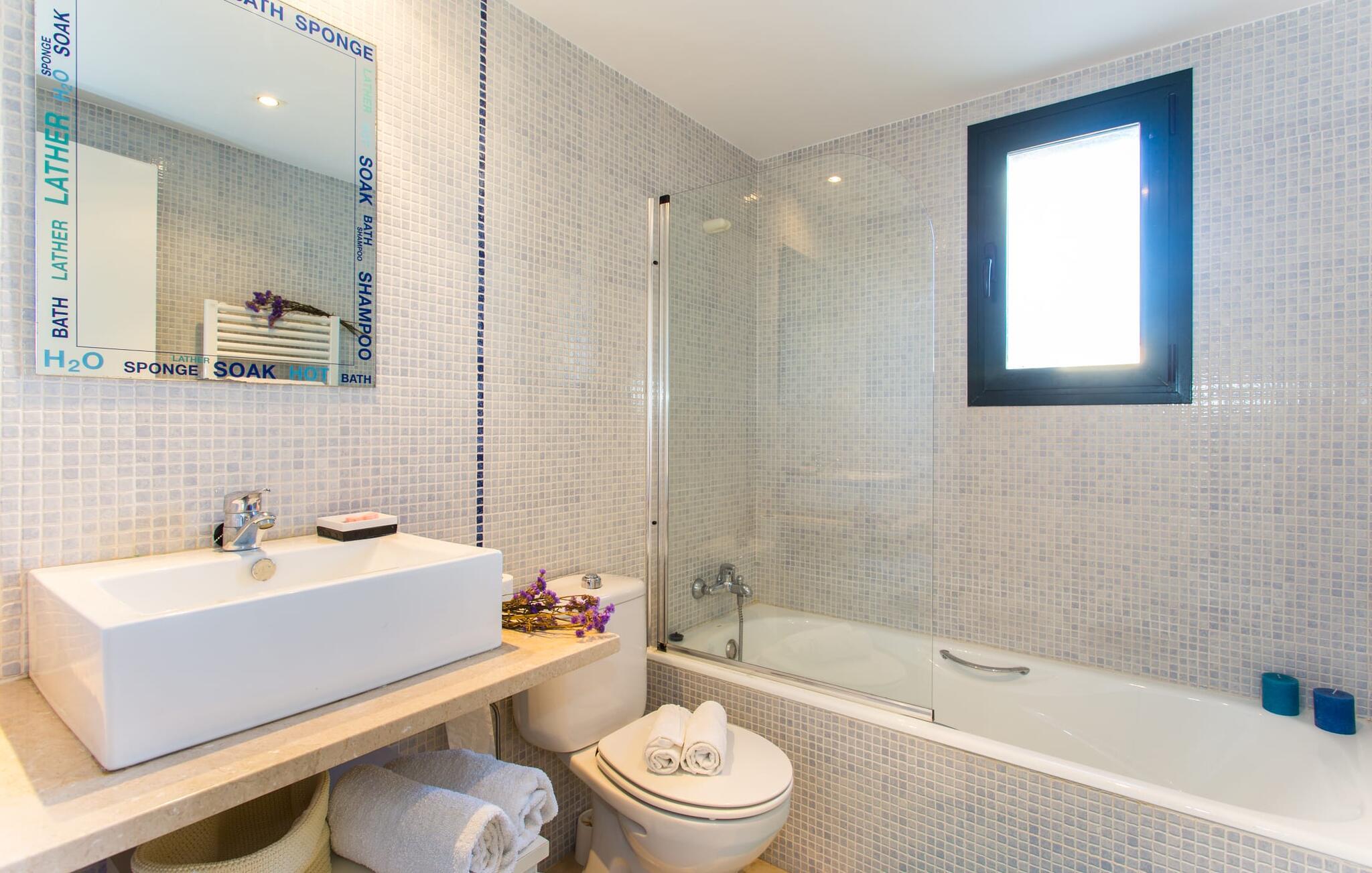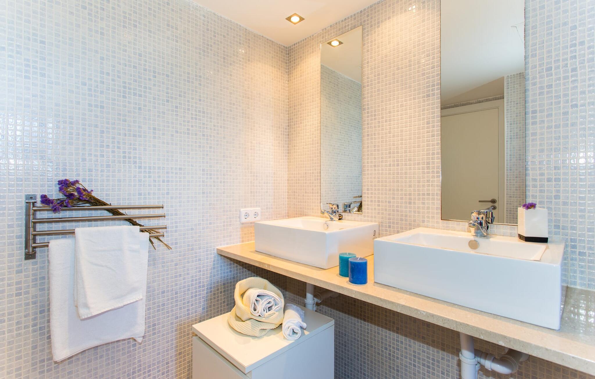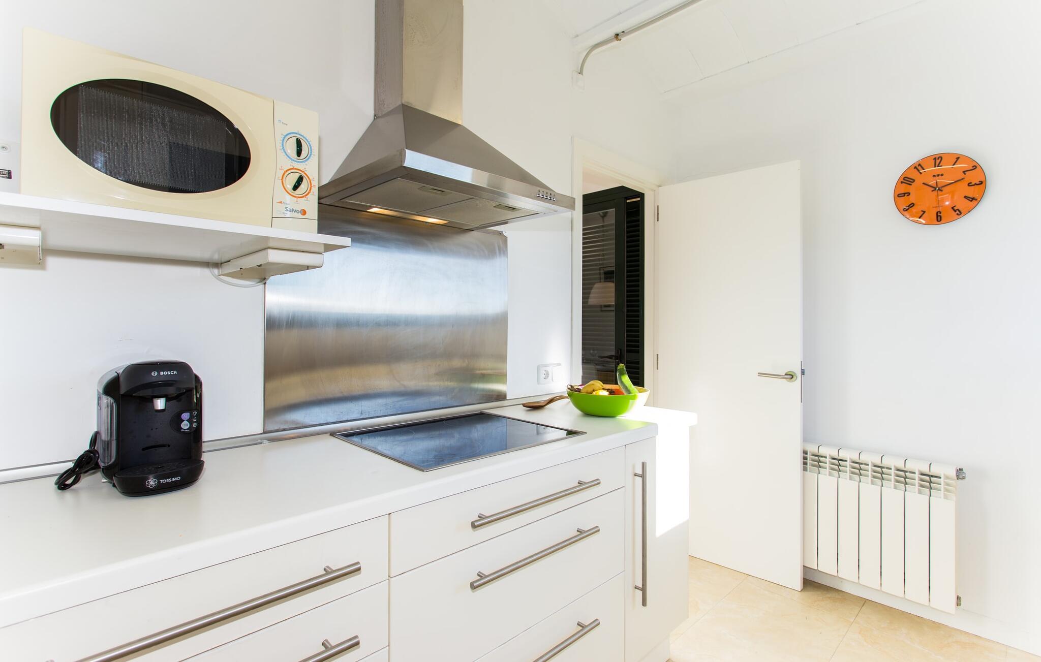 Den moderne villa "Baix des Pujol" har en attraktiv udvendig facade af synligt murværk og er omgivet af store græsplæner, der tilbyder et afslappende miljø under middelhavssolen. poolen og en skyggefuld terrasse på bagsiden. Poolen dekoreret med blå mosaikfliser og trappeindgangen inviterer jer til at slappe af i det unikke middelhavslys. En muret grill inviterer jer til at tage på kulinariske opdagelsesture med lokale markedsingredienser. Der er skyggefulde parkeringspladser i nærheden af huset stue med udgang til terrasse og to komfortable sofaer og en stilfuld pejs til køligere aftener I tilknytning til spisepladsen ligger det fuldt udstyrede køkken, som komfortabelt kan rumme seks voksne og to børn. På dette niveau er der tre soveværelser og tre badeværelser, ovenpå er der et fjerde imponerende soveværelse og et ensuite badeværelse. Hvert soveværelse er individuelt indrettet, og villaen er udstyret med aircondition og varme for at give komfort hele året rundt. Den moderne villa "Baix des Pujol" ligger midt på øen mellem de to landlige byer Petra og Ariany og byder på en vidunderlig udsigt over det omkringliggende landskab og mod Ariany. Det er et glimrende udgangspunkt for ture mod nord, øst eller vestkysten samt til Manacor, Alcúdia-bugten og adskillige strande som San Baulo og Can Picafort. Elforbruget i denne bolig er inkluderet i prisen i det sjældne tilfælde af overskridelse I vil blive opkrævet gebyret kontant på stedet.