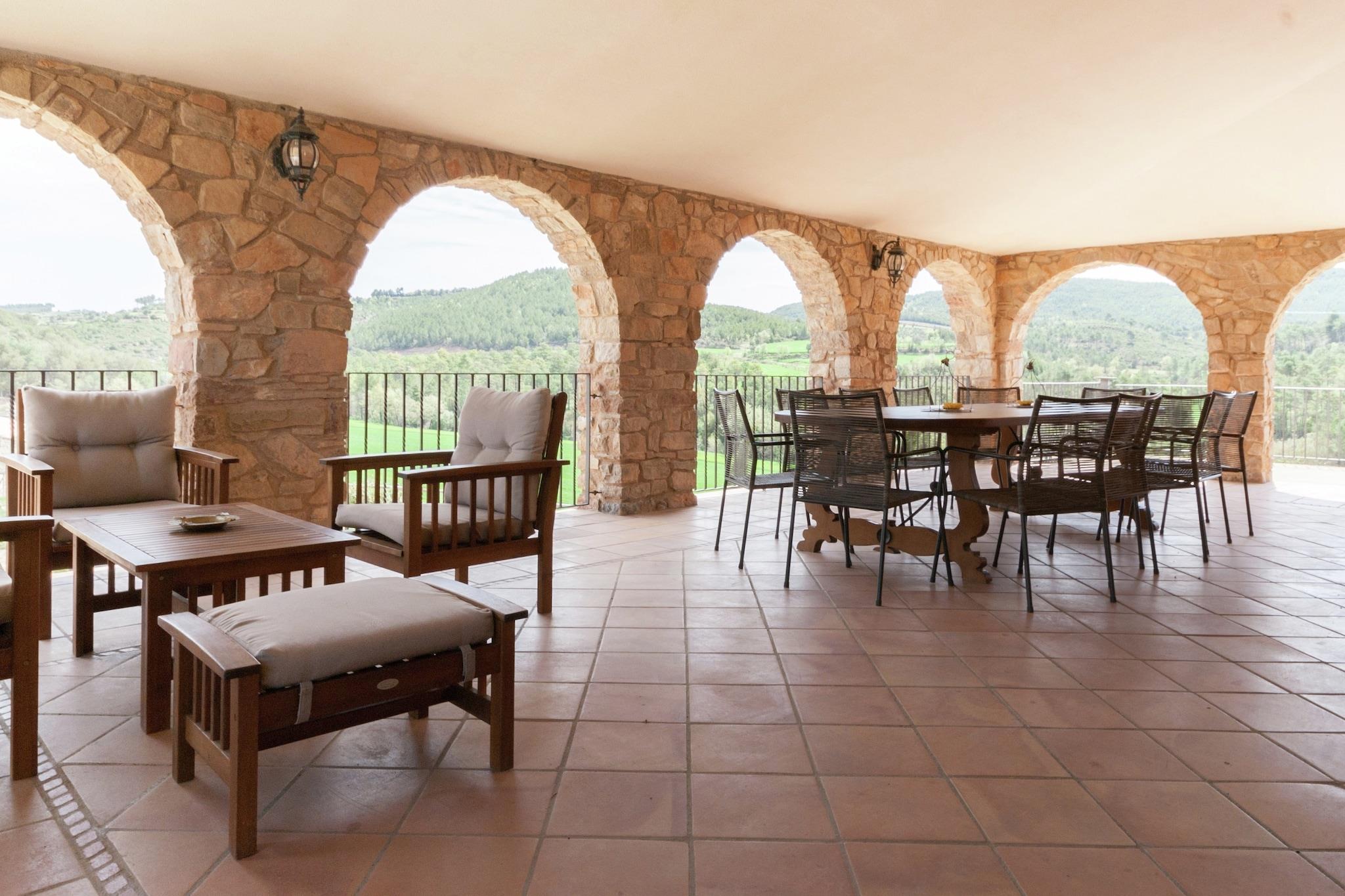 Bondehus med privat pool i naturen ligger en times kørsel fra Barcelona. Mansionet blev renoveret i 2012 og har 5 dobbeltværelser, alle med privat badeværelse (et værelse med handicapadgang). Den store stue har et læserhjørne og wifi og et stort køkken med pejs. Alt er stueetagen. Eksteriøret er ikke mindre behageligt, her finder du en stor overdækket terrasse med grill, spillehal, have med interessante steder, hvor du kan opleve landets liv og nyde. Mindre end en times kørsel fra Barcelona.