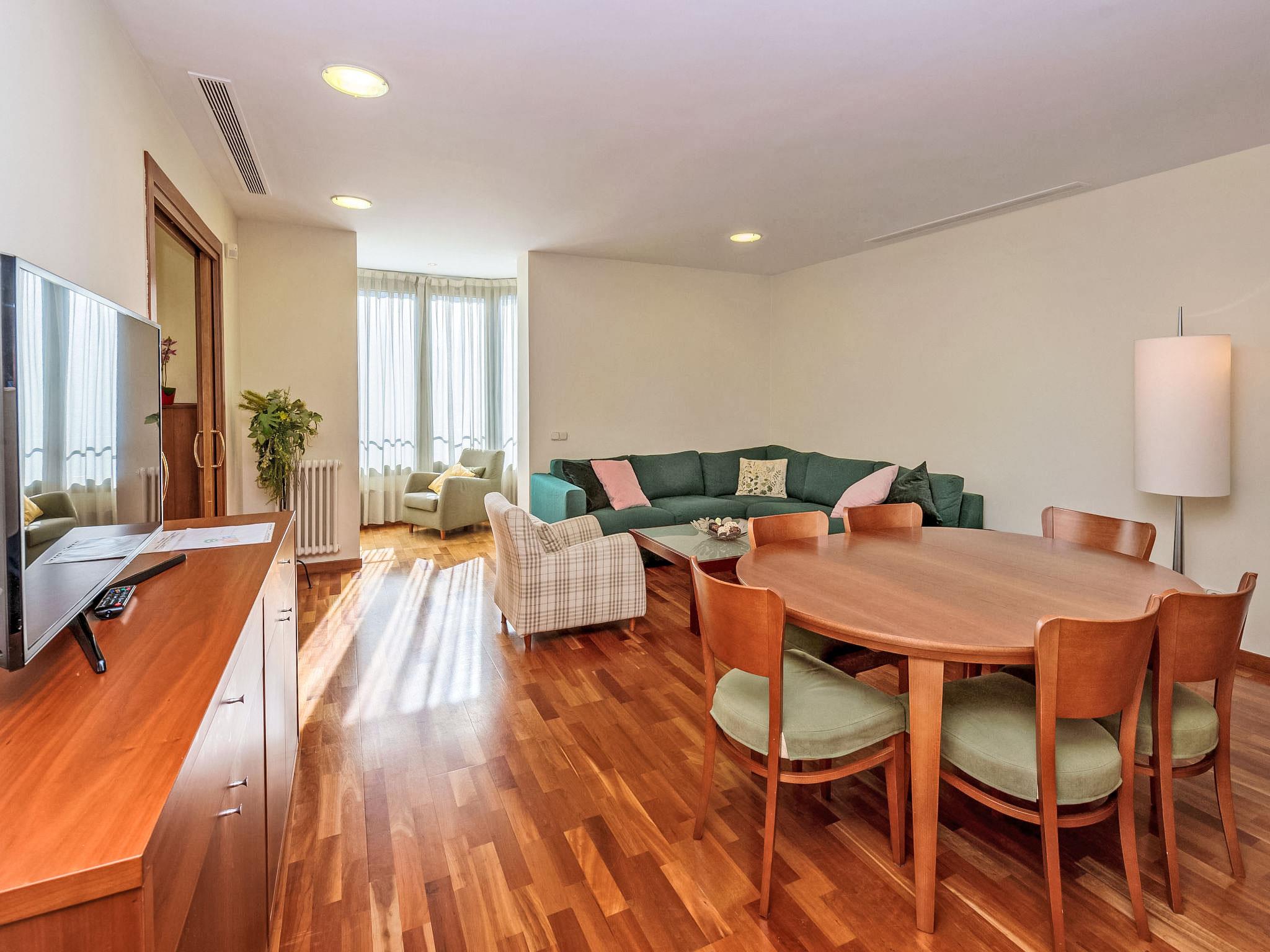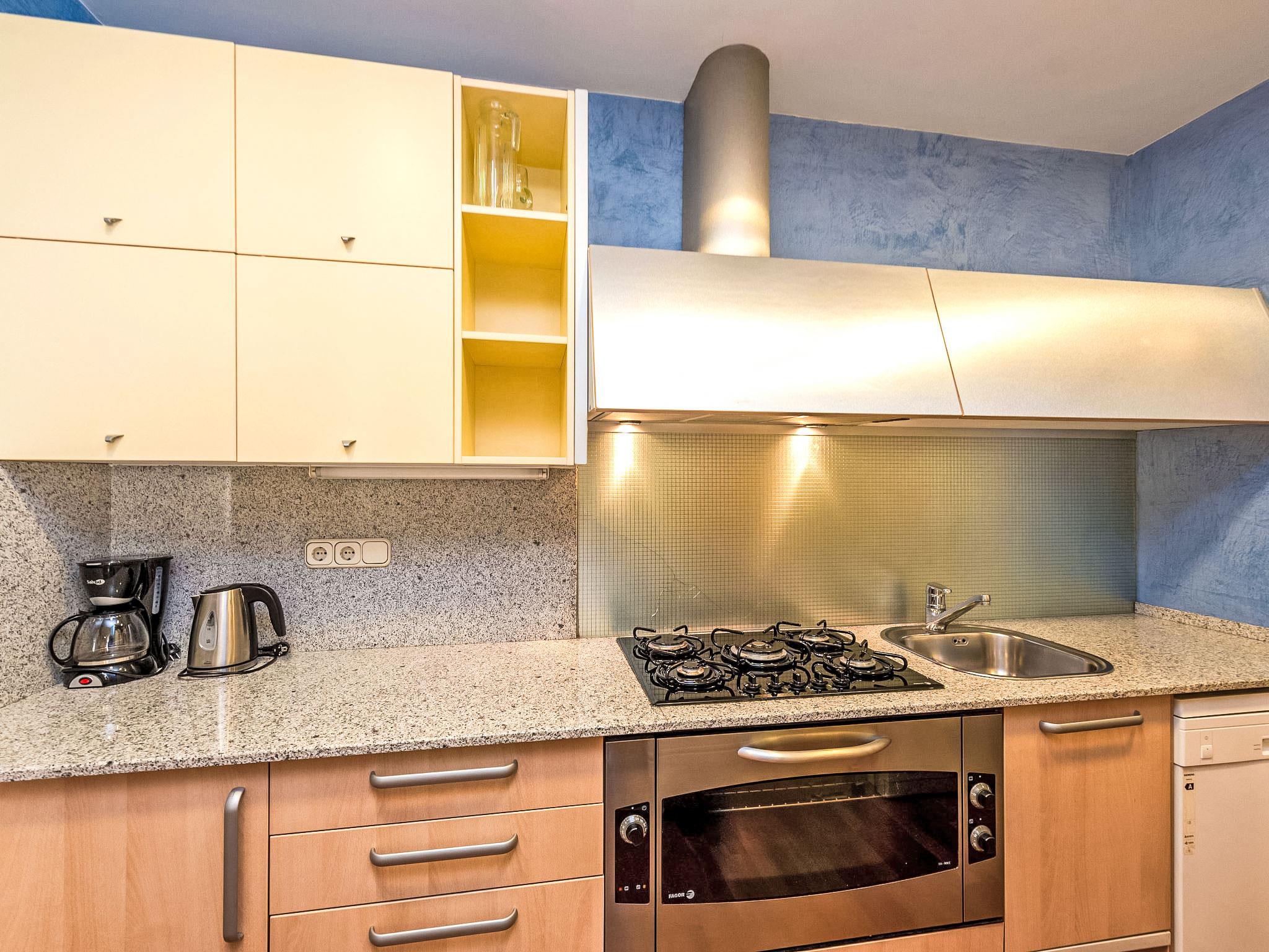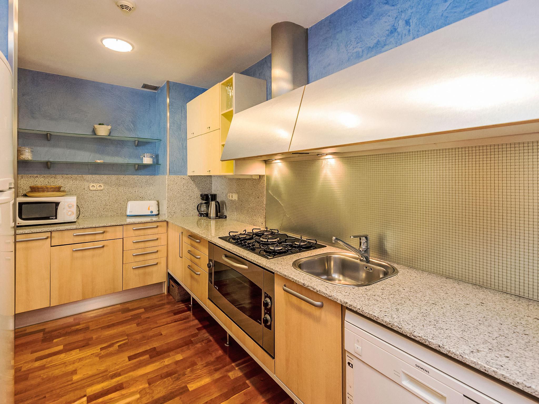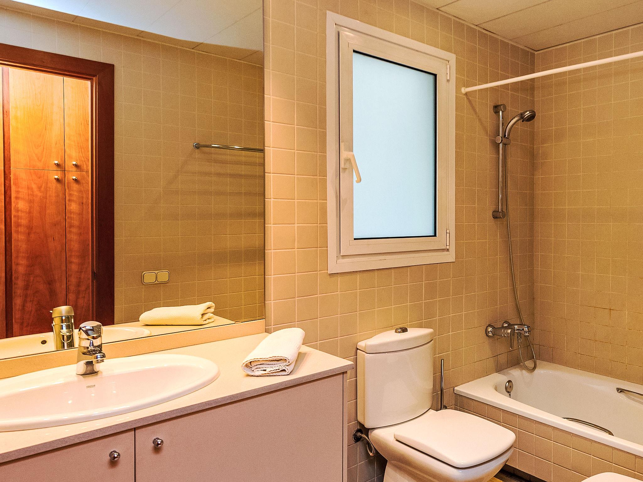 4-room apartment 100 m2 on 5th floor. Practical and comfortable furnishings: living/dining room with digital TV and air conditioning. 1 room with 2 beds (90 cm, length 190 cm). 1 room with 1 french bed (160 cm, length 190 cm). 1 room with 1 french bed (140 cm, length 190 cm), bath/WC. Open kitchen (oven, dishwasher, microwave, freezer, electric coffee machine). Shower/WC. Heating. View of the resort. Facilities: washing machine, dryer, iron, baby cot for up to 2 year olds (extra). Internet (WiFi, free). Suitable for families. Cot is on request and subject to availability. HUTB008446 // Reg. Nr.: ESFCTU000008056000596021000000000000000000HUTB0084463