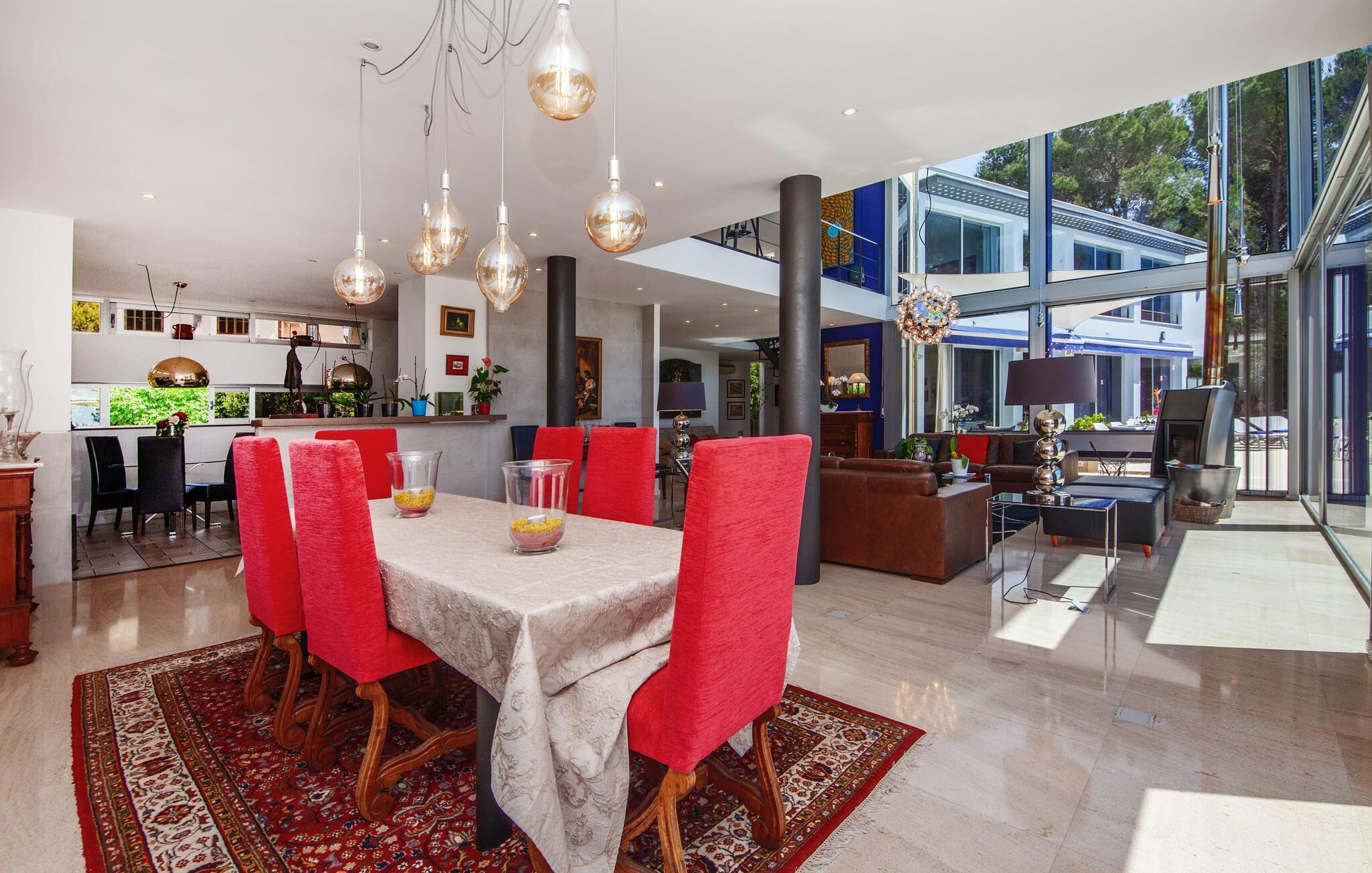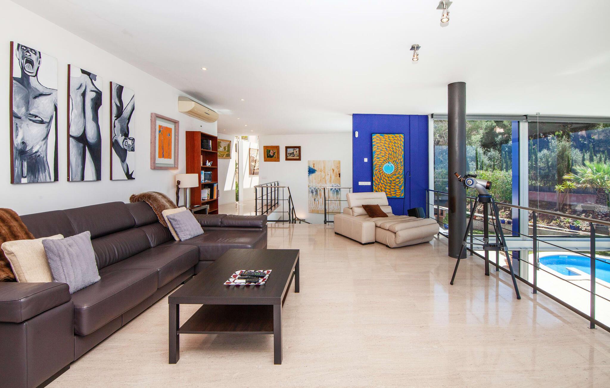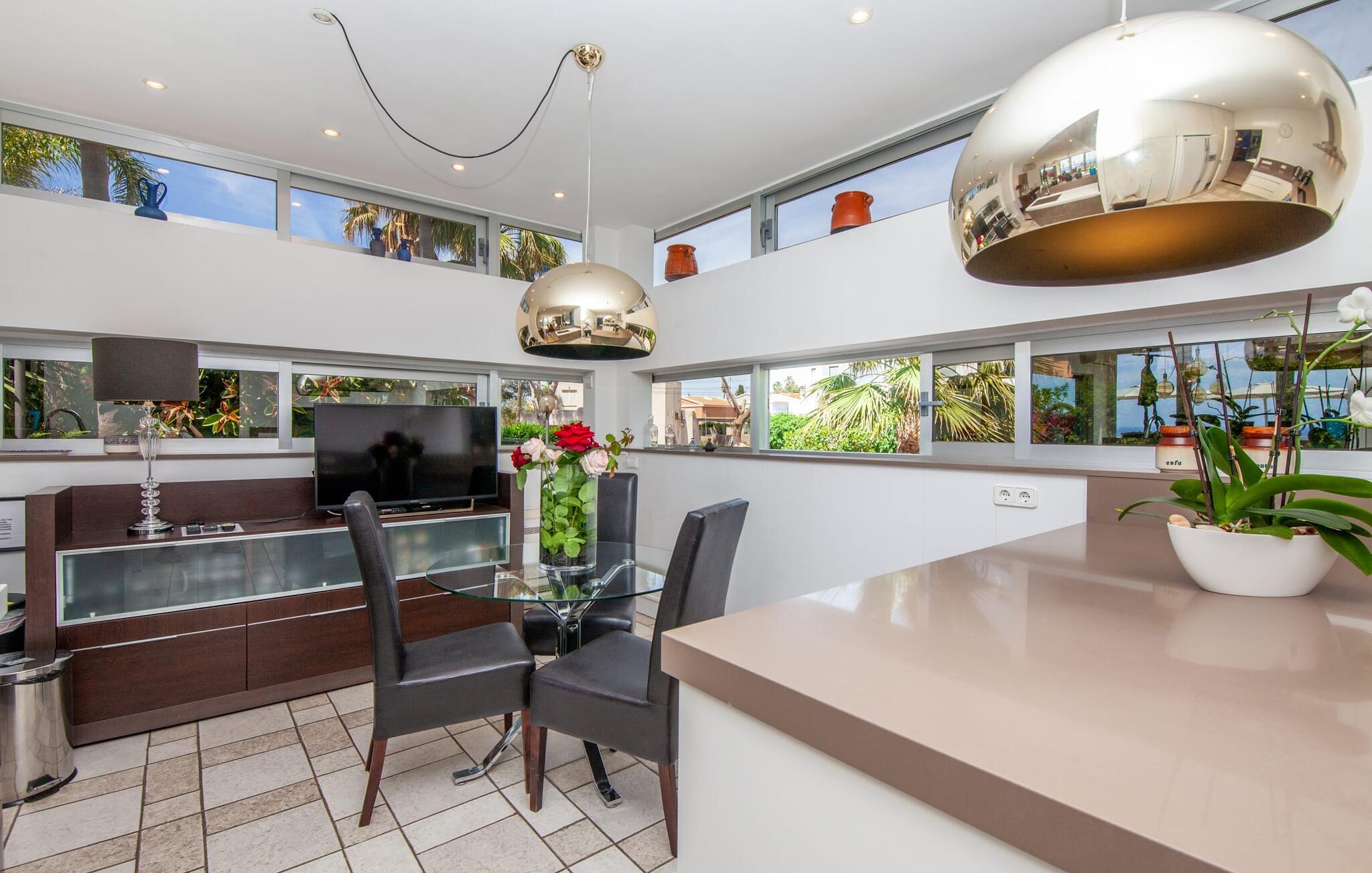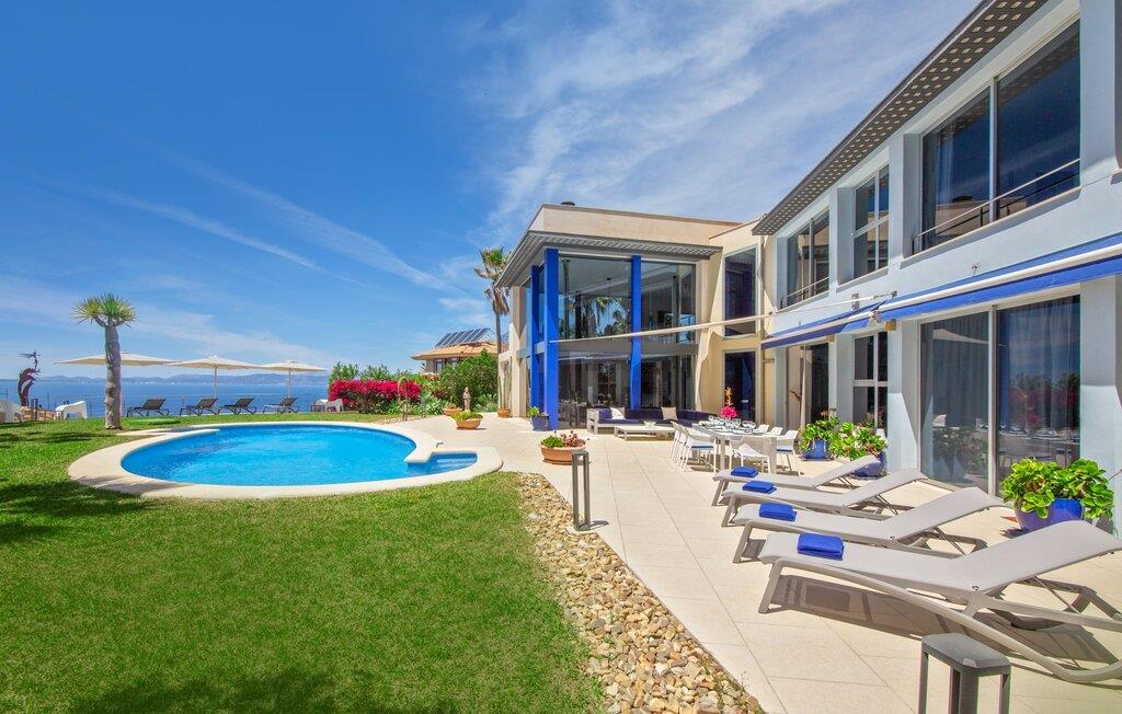 Denne perle lever op til sit navn: et sommerhus som en privat bugt, beliggende på det terrasserede plateau med en vidunderlig havudsigt. Den stolte pool med varierende dybder og en subtil græsk trappe er ikke den eneste blå detalje, der skinner her! Her er der kælet for alle detaljer, selv facaden, der imponerer med sine panoramavinduer, der rækker op til det flade tag, har en blå ramme, hvilket betyder, at den passer perfekt ind i billedet af denne sommervilla. Den delvise overdækning af terrassen med et praktisk fortelt og en mørkeblå parasol sikrer, at jeres hud får en kort pause fra solen, inden I trækker jeres liggestol tilbage på den grønne eng eller gør jer godt tilpas på træterrassen ved poolen for at læse jeres yndlingsroman og lyt til de blide bølger. Eller I kan tage plads på rækværket og nyde udsigten i det fjerne. Så snart I føler jer sulten, står den mobile kuglegrill til jeres rådighed for at fremtrylle en eller to lækkerier. Det smukke udendørs spisebord direkte på terrassen er et særdeles velegnet sted at spise! I vil helt sikkert kunne lide det rummelige og afslappet designede interiør i denne moderne villa! Den kommer med mange stilfulde designdetaljer. Fra opholdsstuen, som indbyder til at slappe af og slappe af (med fladskærms-tv, en topmoderne pejs og to elegante sofaer), når I den tilhørende spiseplads, som flyder ud i det åbne køkken. Farverne varierer her, men sikrer stadig perfekt harmoni. De store arbejdsflader i køkkenet giver plads nok til at prøve mere vovede opskrifter. Der er et smukt lille glasbord med fire læderlænestole til en hurtig morgenkaffe. Udover gæstetoilet er der også et af soveværelserne med eget badeværelse i stueetagen. Arkitekterne brugte i øvrigt også generøsitet på samtlige badeværelser, herunder materialebrug. Glas- og marmorelementer smelter smukt sammen og efterlader ingen tvivl om, at I har valgt et førsteklasses hjem. Fra den lyse foyer kan man nå overetagen via en trappe. Her kan I se en anden højkvalitets stue, der er direkte forbundet med de tre soveværelser og badeværelser. Panoramaterrassen skriger efter at gå udenfor og beundre udsigten. Og som om "Bay Blue" ikke allerede havde meget at byde på, er det også værd at udforske området på egen hånd. For eksempel vil en gåtur gennem de typiske middelhavsgader i den lille by Badia Blava, som I kan nå til fods på få minutter, give jer mulighed for hurtigt at glemme hverdagen. Selvom villaen ligger i et beboelsesområde og tæt på Ma-6014, er den dejlig stille. Bugten Bahia Azul (en del af Badia Blava), som betyder "den blå bugt", er en garanti for afslapning og byder på en vidunderlig udsigt over hovedstadens promenade og det åbne hav. Vandet er for det meste smukt klart og er ideelt til alle former for vandsport, herunder snorkling og dykning. Og der er mange andre strande i området, den smukke Es Trenc strand og Sa Rapita strand kan nås på omkring 10-15 minutter i bil. Den rolige bugt Cala Pi ligger ca. 15 km væk. Hvis I foretrækker noget mere livligt, kan I nå Playa de Palma i Arenal eller Can Pastilla på cirka 10 minutter i bil. Og for alle, der ikke elsker vandet, byder de omkringliggende byer på masser af muligheder for at shoppe, spise og dyrke sport. Stranden i Badia Blava er kun omkring 10 minutters gang væk. Dette er i øvrigt en af de smukkeste strande på øen, med muligheder for dykning og snorkling. For en omfattende shoppingoplevelse, et besøg på det ugentlige marked eller en tur på en smart restaurant behøver I kun cirka 25 minutter i bil til Llucmajor. Maioris Golfbane eller Palma Aquarium er også i nærheden. Dette er den varierede ferieoplevelse, som I kan opleve i villaen "Bay Blue"!