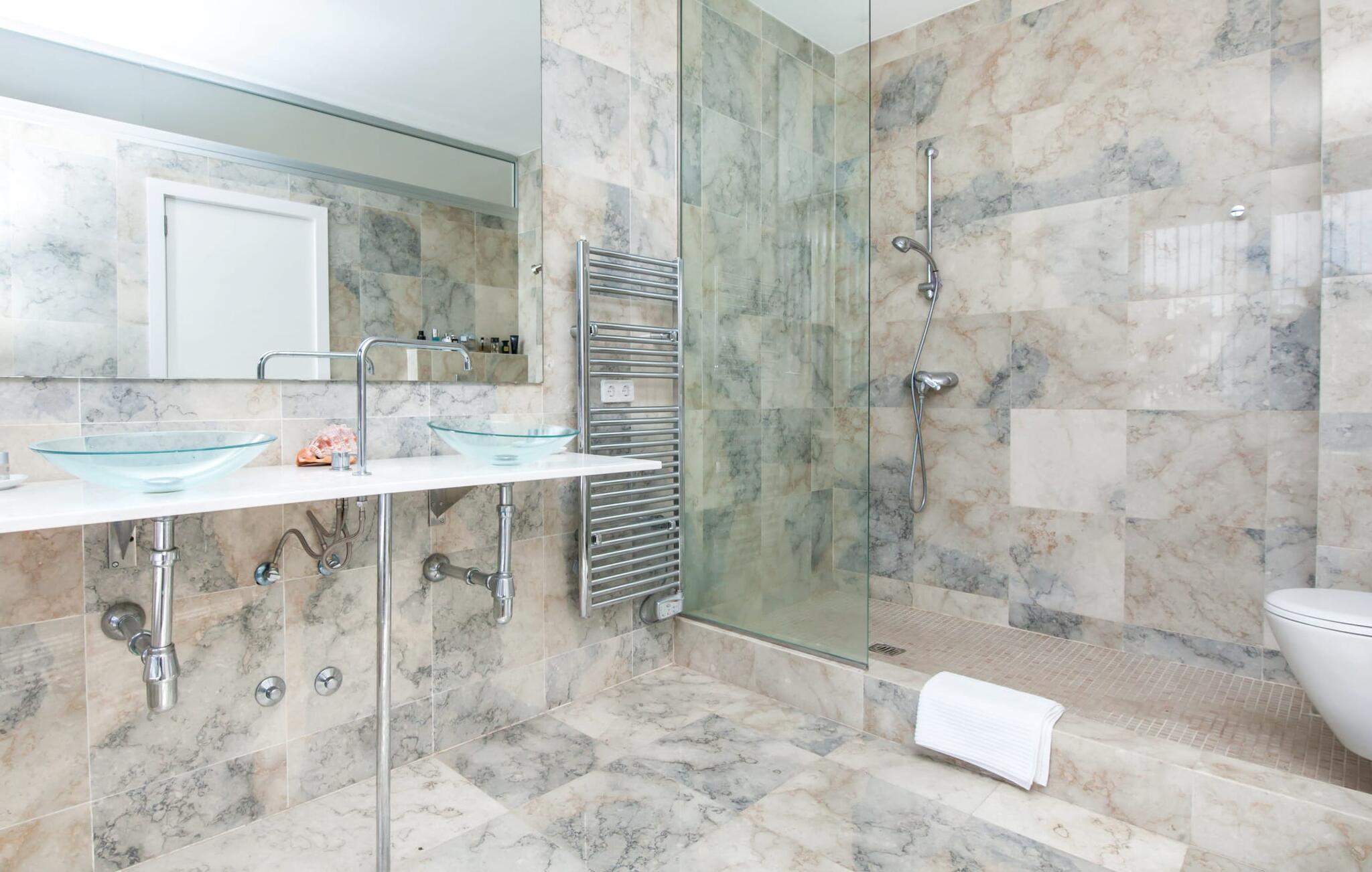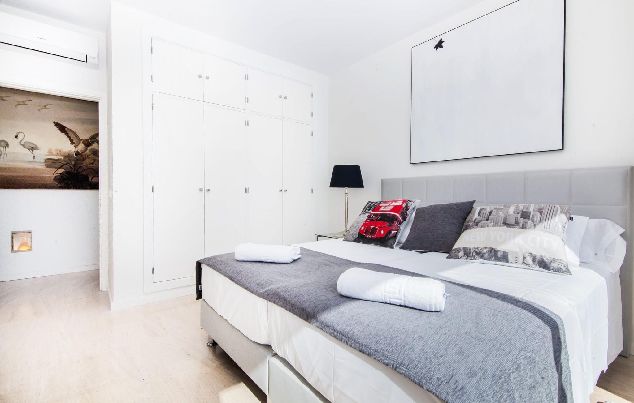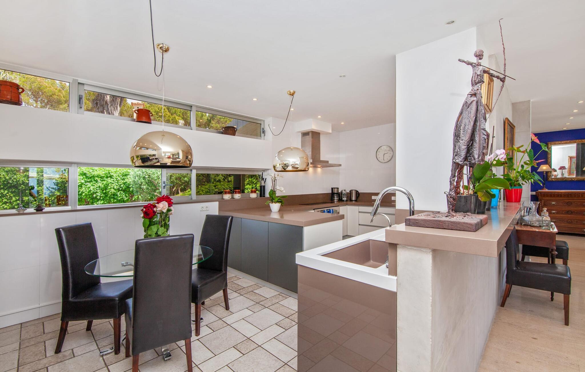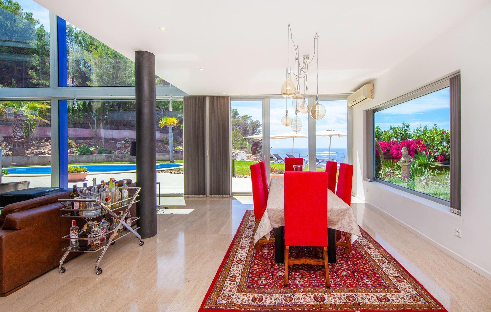 Denne perle lever op til sit navn: et sommerhus som en privat bugt, beliggende på det terrasserede plateau med en vidunderlig havudsigt. Den stolte pool med varierende dybder og en subtil græsk trappe er ikke den eneste blå detalje, der skinner her! Her er der kælet for alle detaljer, selv facaden, der imponerer med sine panoramavinduer, der rækker op til det flade tag, har en blå ramme, hvilket betyder, at den passer perfekt ind i billedet af denne sommervilla. Den delvise overdækning af terrassen med et praktisk fortelt og en mørkeblå parasol sikrer, at jeres hud får en kort pause fra solen, inden I trækker jeres liggestol tilbage på den grønne eng eller gør jer godt tilpas på træterrassen ved poolen for at læse jeres yndlingsroman og lyt til de blide bølger. Eller I kan tage plads på rækværket og nyde udsigten i det fjerne. Så snart I føler jer sulten, står den mobile kuglegrill til jeres rådighed for at fremtrylle en eller to lækkerier. Det smukke udendørs spisebord direkte på terrassen er et særdeles velegnet sted at spise! I vil helt sikkert kunne lide det rummelige og afslappet designede interiør i denne moderne villa! Den kommer med mange stilfulde designdetaljer. Fra opholdsstuen, som indbyder til at slappe af og slappe af (med fladskærms-tv, en topmoderne pejs og to elegante sofaer), når I den tilhørende spiseplads, som flyder ud i det åbne køkken. Farverne varierer her, men sikrer stadig perfekt harmoni. De store arbejdsflader i køkkenet giver plads nok til at prøve mere vovede opskrifter. Der er et smukt lille glasbord med fire læderlænestole til en hurtig morgenkaffe. Udover gæstetoilet er der også et af soveværelserne med eget badeværelse i stueetagen. Arkitekterne brugte i øvrigt også generøsitet på samtlige badeværelser, herunder materialebrug. Glas- og marmorelementer smelter smukt sammen og efterlader ingen tvivl om, at I har valgt et førsteklasses hjem. Fra den lyse foyer kan man nå overetagen via en trappe. Her kan I se en anden højkvalitets stue, der er direkte forbundet med de tre soveværelser og badeværelser. Panoramaterrassen skriger efter at gå udenfor og beundre udsigten. Og som om "Bay Blue" ikke allerede havde meget at byde på, er det også værd at udforske området på egen hånd. For eksempel vil en gåtur gennem de typiske middelhavsgader i den lille by Badia Blava, som I kan nå til fods på få minutter, give jer mulighed for hurtigt at glemme hverdagen. Selvom villaen ligger i et beboelsesområde og tæt på Ma-6014, er den dejlig stille. Bugten Bahia Azul (en del af Badia Blava), som betyder "den blå bugt", er en garanti for afslapning og byder på en vidunderlig udsigt over hovedstadens promenade og det åbne hav. Vandet er for det meste smukt klart og er ideelt til alle former for vandsport, herunder snorkling og dykning. Og der er mange andre strande i området, den smukke Es Trenc strand og Sa Rapita strand kan nås på omkring 10-15 minutter i bil. Den rolige bugt Cala Pi ligger ca. 15 km væk. Hvis I foretrækker noget mere livligt, kan I nå Playa de Palma i Arenal eller Can Pastilla på cirka 10 minutter i bil. Og for alle, der ikke elsker vandet, byder de omkringliggende byer på masser af muligheder for at shoppe, spise og dyrke sport. Stranden i Badia Blava er kun omkring 10 minutters gang væk. Dette er i øvrigt en af de smukkeste strande på øen, med muligheder for dykning og snorkling. For en omfattende shoppingoplevelse, et besøg på det ugentlige marked eller en tur på en smart restaurant behøver I kun cirka 25 minutter i bil til Llucmajor. Maioris Golfbane eller Palma Aquarium er også i nærheden. Dette er den varierede ferieoplevelse, som I kan opleve i villaen "Bay Blue"!