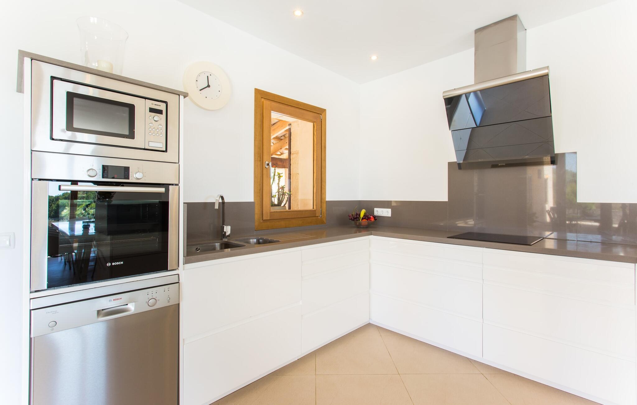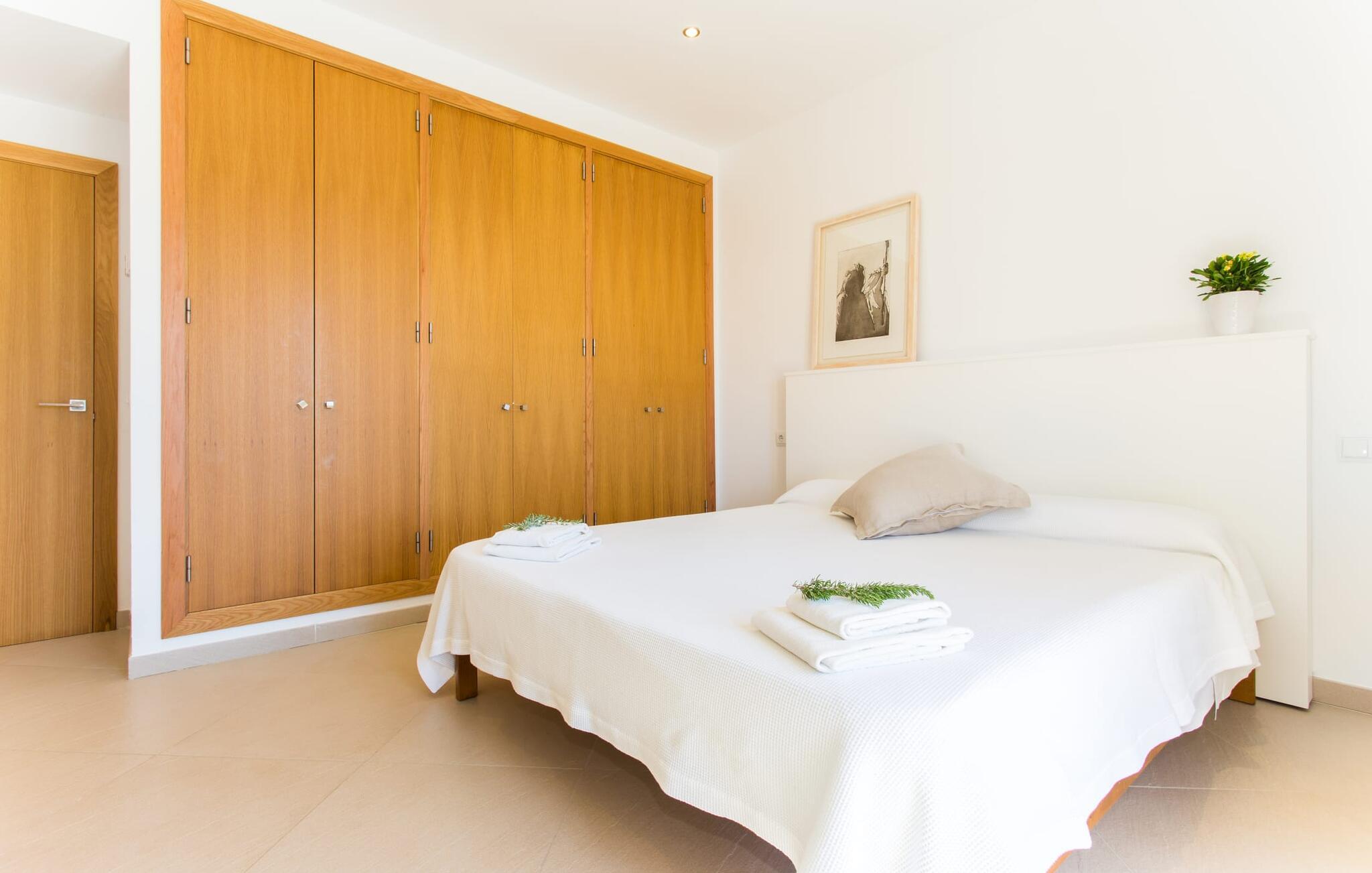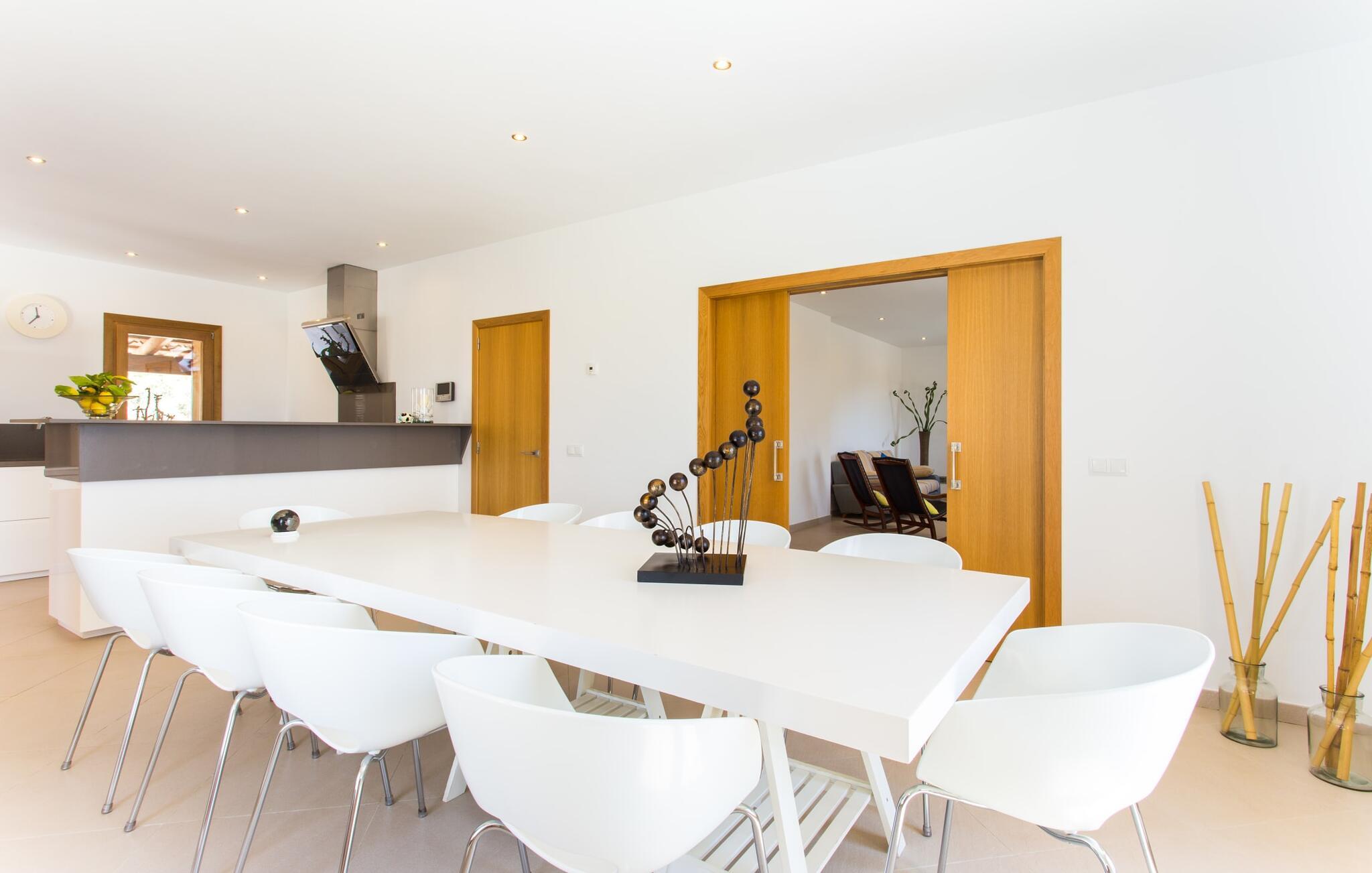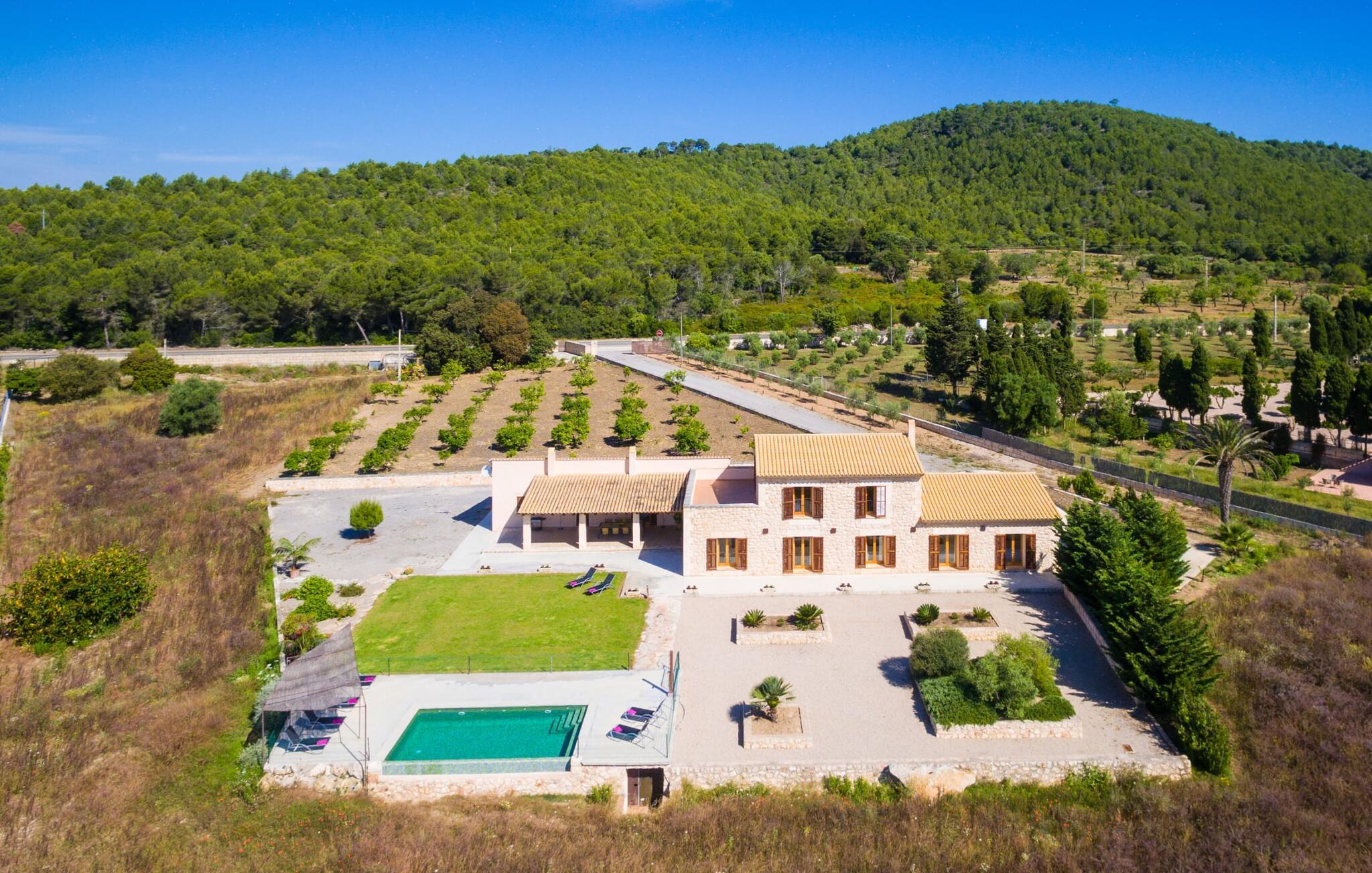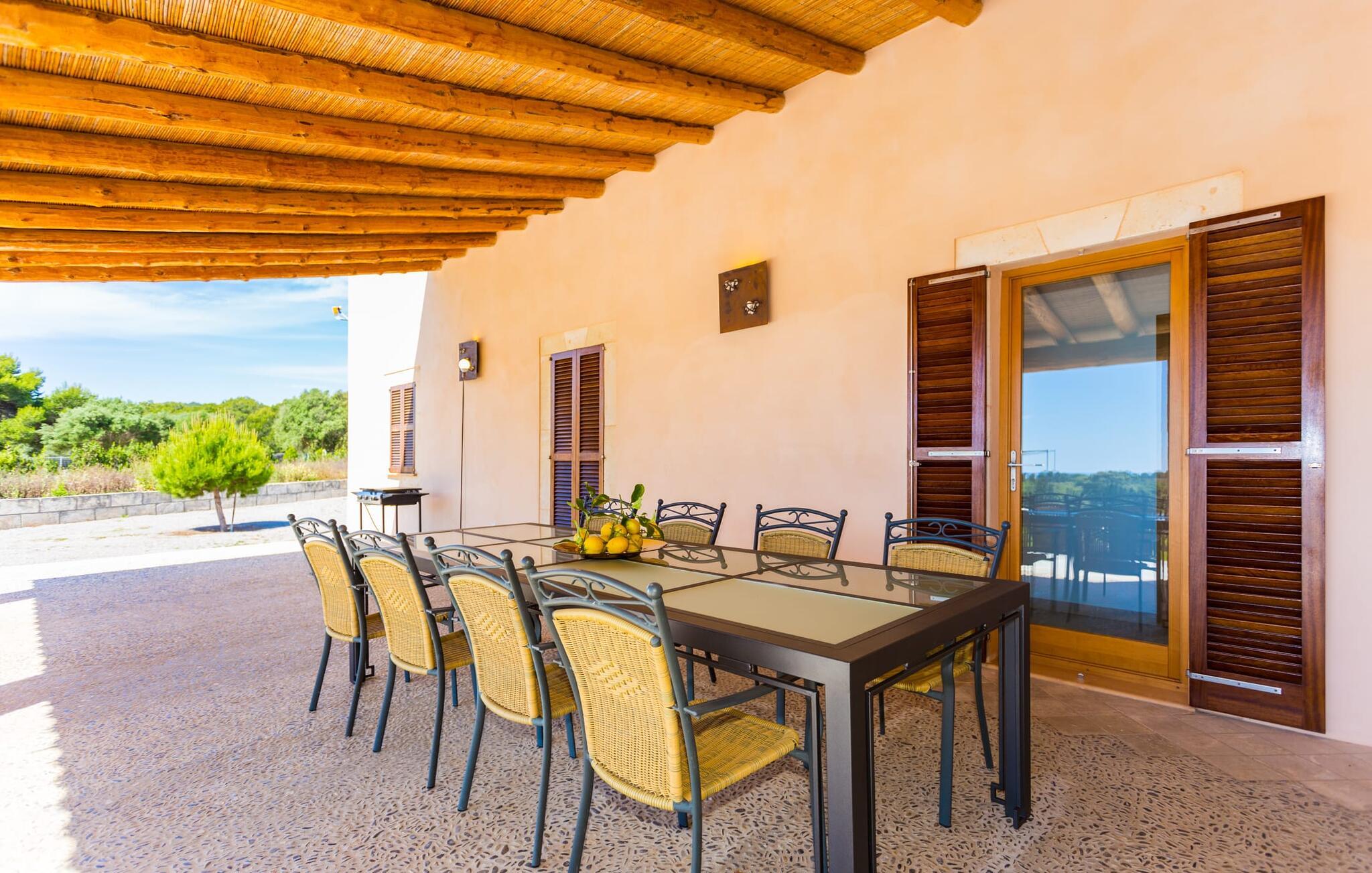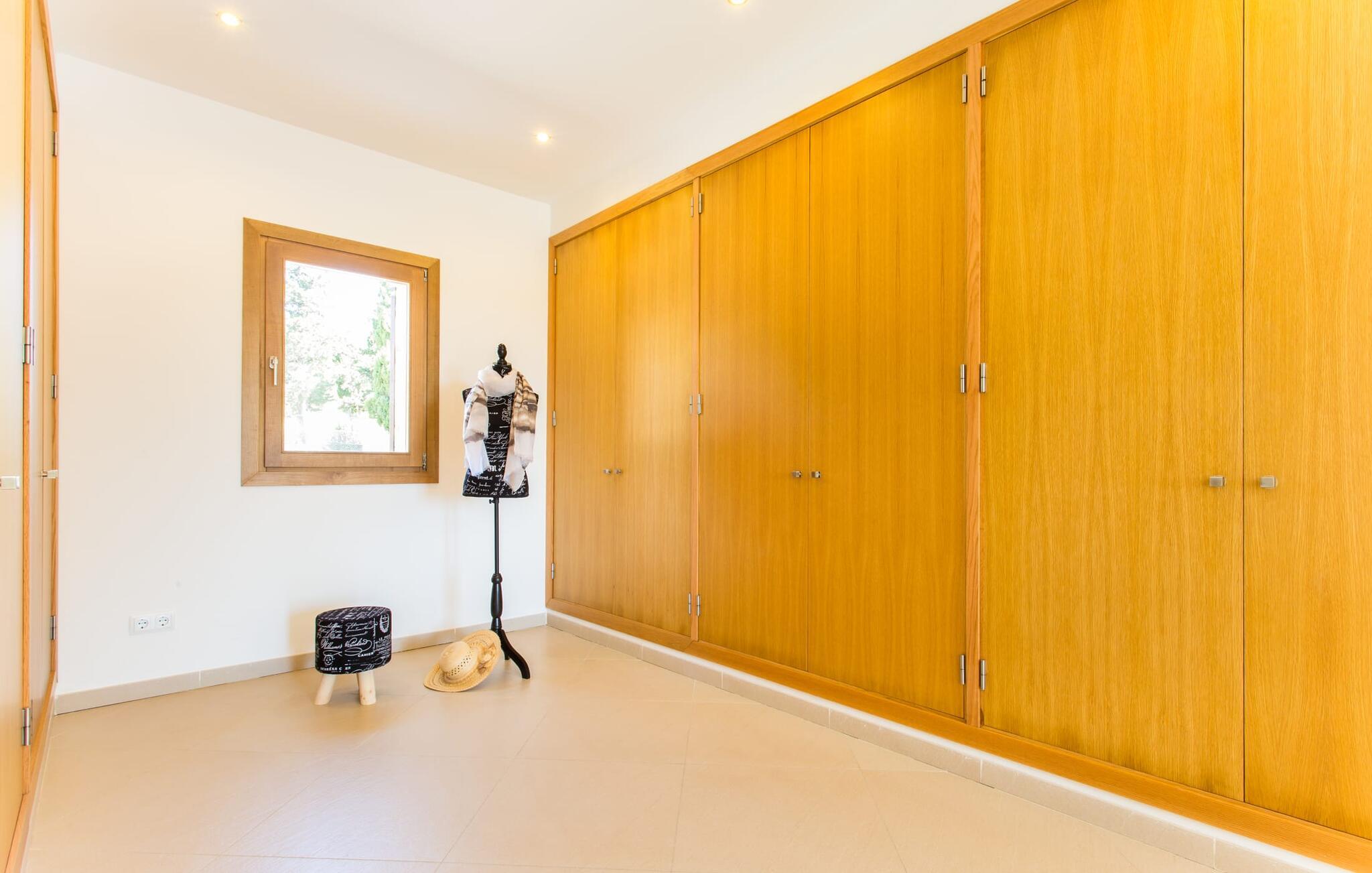 Efter en forfriskende svømmetur i jeres private mini-hav, kan I tage en siesta på den omsluttende terrasse, på en af liggestolene under en markise eller, hvis I føler, at I ikke har fået nok sol endnu, tage en pause til frokost og slap af på græsplænen og lad den varme sol blidt kærtegne jeres hud. Rejser I med børn? Ingen grund til bekymring – poolen er børnesikker. Udearealet er smukt anlagt med aflange grusarealer og fire øer med omhyggeligt beplantet grønt. Den restaurerede facade på den 100 år gamle villa er et sandt blikfang med sine brune skodder og ligger over en overdækket terrasse med et stort bord, hvor I kan nyde ferielækkerier tilberedt efter jeres smag på grillen. Indenfor vil I hurtigt mærke, at jeres sommerhus - selvom det har en lang historie - er fyldt med moderne elementer og udstråler en sublim lysstyrke. Alt her vidner om ejernes udsøgte stil, som har skabt et meget lyst og indbydende interiør med stor sans for detaljer og også takket være de store vinduespartier. I kan nemt tilberede mere kunstfærdige retter i det perfekt udstyrede køkken og servere dem i samme rum ved det hvide træbord, som også kan bruges til at spille brætspil eller til socialt samvær. En skydedør i lyst træ åbner udsigten ind til den moderne stue, hvor I kan vælge mellem gyngestole og to komfortable sofaer. Når I sidder her, kan I nyde den knitrende, stilfulde pejs, der skaber en hjemlig, varm atmosfære, eller se en af klassikerne fra jeres must-see-filmliste. Når alt kommer til alt, er ferie den perfekte mulighed for endelig at gøre alle de ting, I aldrig finder tid til. I stueetagen er der et soveværelse, et badeværelse og et andet soveværelse med badeværelse, som kun er tilgængeligt fra dette værelse. Upåfaldende kunstværker fordelt i hele huset bryder rummet op med et generøst, minimalistisk, klart præg. Trappen i gangen fører op til øverste etage, hvor I bliver mødt af endnu en stue med sofaer. Hvid er den fremherskende farve i kombination med andre jordnære naturtoner. Der er også en balkon på første sal med udsigt til havet i det fjerne, der glitrer i tusinde nuancer af blåt. Selvom I forlader villaen for at udforske omgivelserne, vil I finde mange naturlige toner. Villaen ligger lige på en gade, som I nogle gange kan høre. Fordelen er dog, at I er meget godt forbundet, og jeres daglige indkøb kan gøres i landsbyen Son Servera, kun 7 km væk, som er ideel til en gåtur med sine stejle gader. På vejen dertil kommer I forbi Pula golfbane, hvor I kan arbejde på jeres handicap. Eller I kan tage til den livlige kystby Cala Millor, kun 7 km fra jeres villa. Her kan I besøge det lokale marked om søndagen, hvor I kan købe frisk fisk fanget af fiskerne om morgenen. I kan selvfølgelig også gå i havet, for takket være det fine, hvide sand og den fremragende vandkvalitet er indsejlingen skånsom og meget skånsom. Costa de los Pinos med dets turkise vand og idylliske bugter, der får enhver ferierejsendes hjerte til at banke hurtigere, kan nås på kun 8 minutter. For at afslutte jeres dag kan I nyde den uforglemmelige aftenstemning i byen Artà, omkring 7,6 km væk, med dens mange snoede gader. Villaen "Bell Jardi" kombinerer århundreders tradition med uforlignelig modernitet og vidner om alsidigheden i denne særlige region på Mallorca. Her står Son Servera med sine stejle gader i skærende kontrast til den smukke, blide natur, der omgiver den. Hvis I er en hav- og naturelsker, vil overfloden af smukke kystbyer og strande som Cala Millor, Cala Bona, Costa dels Pins og Cala Agulla få jer til at føle, at I er i paradis - og gæt hvad: det er I faktisk! Artà, middelalderbyen med magisk charme, ligger kun 10 minutters kørsel væk.