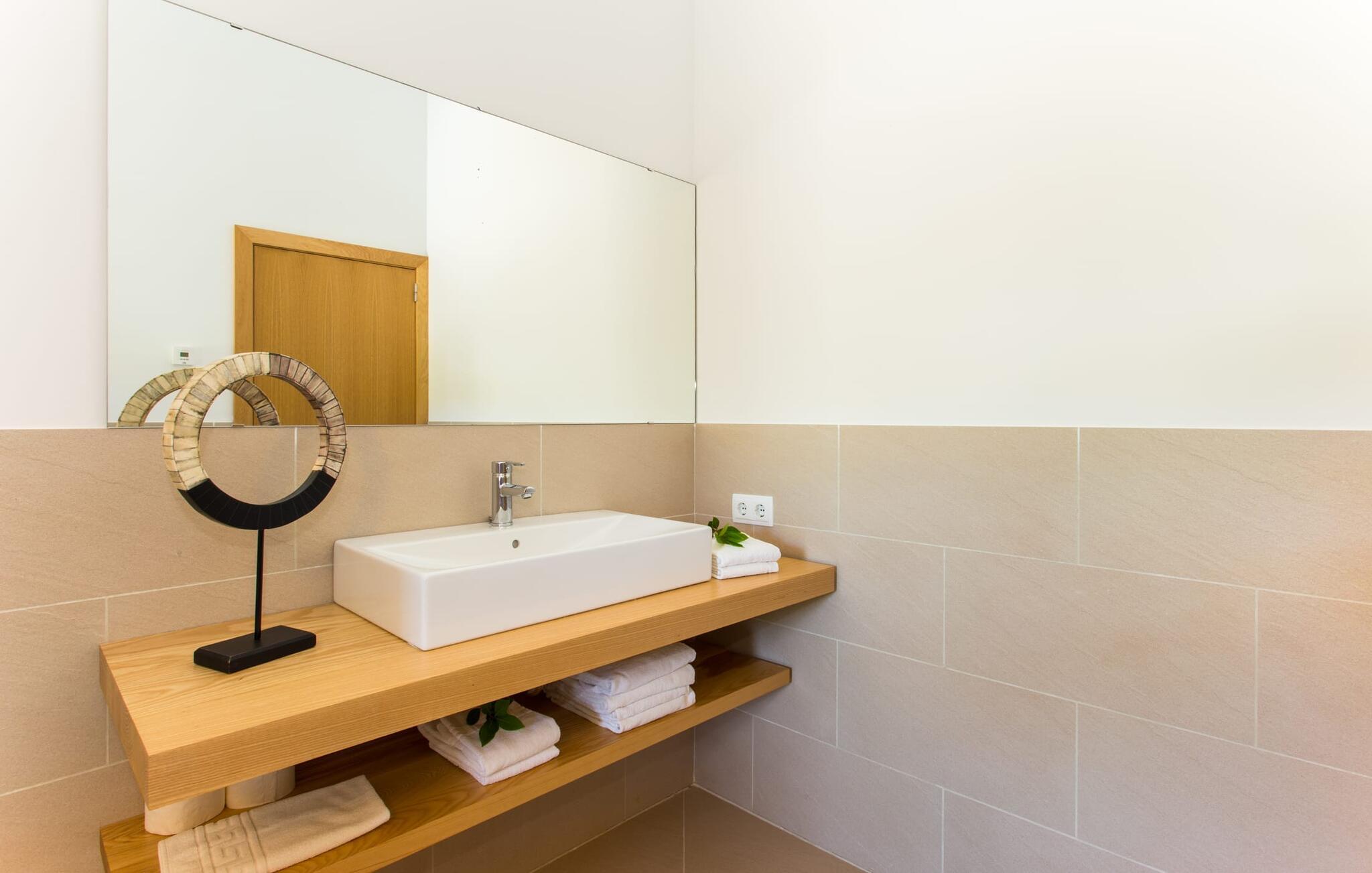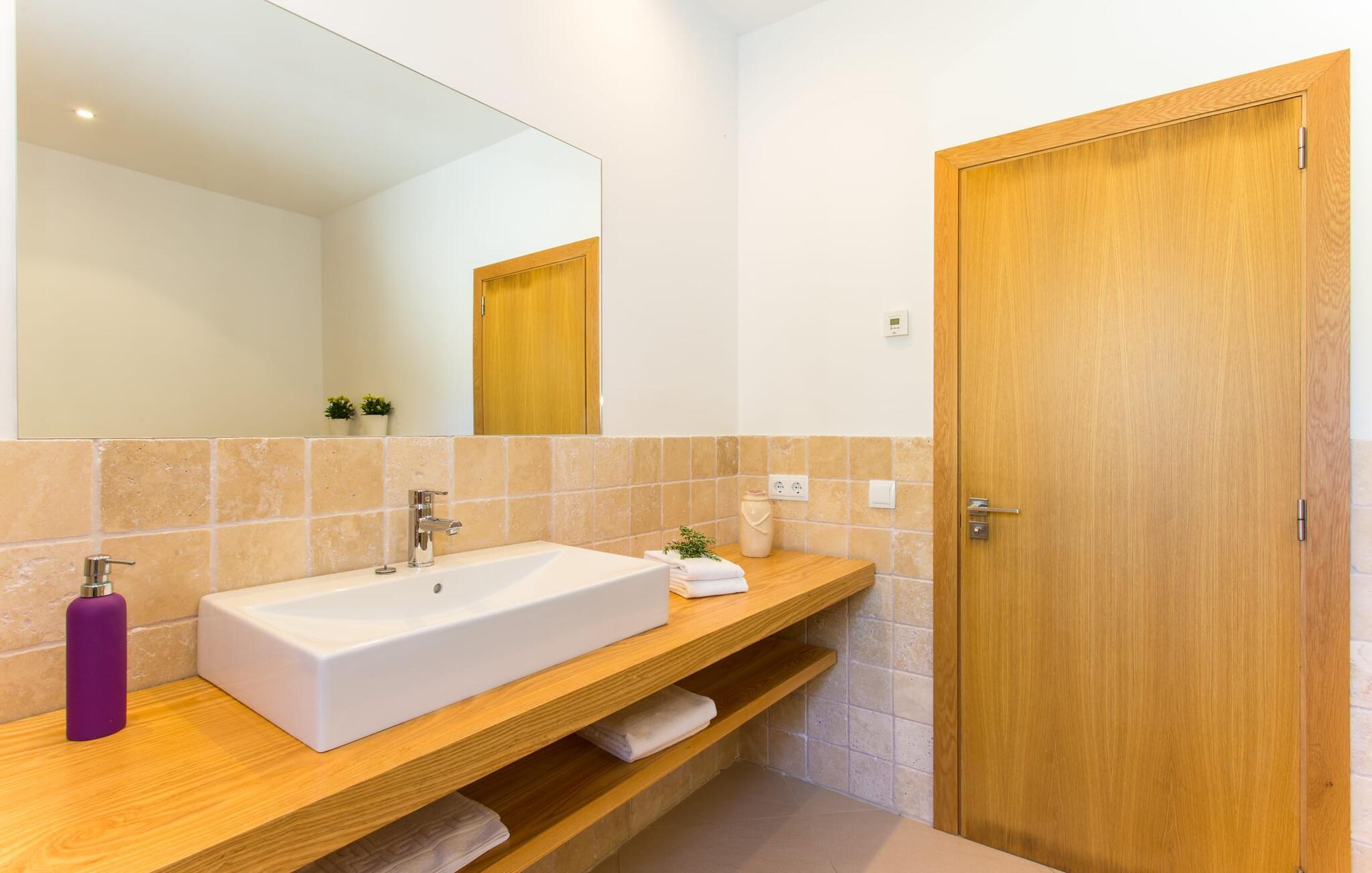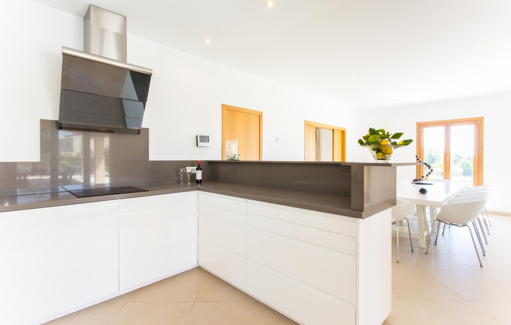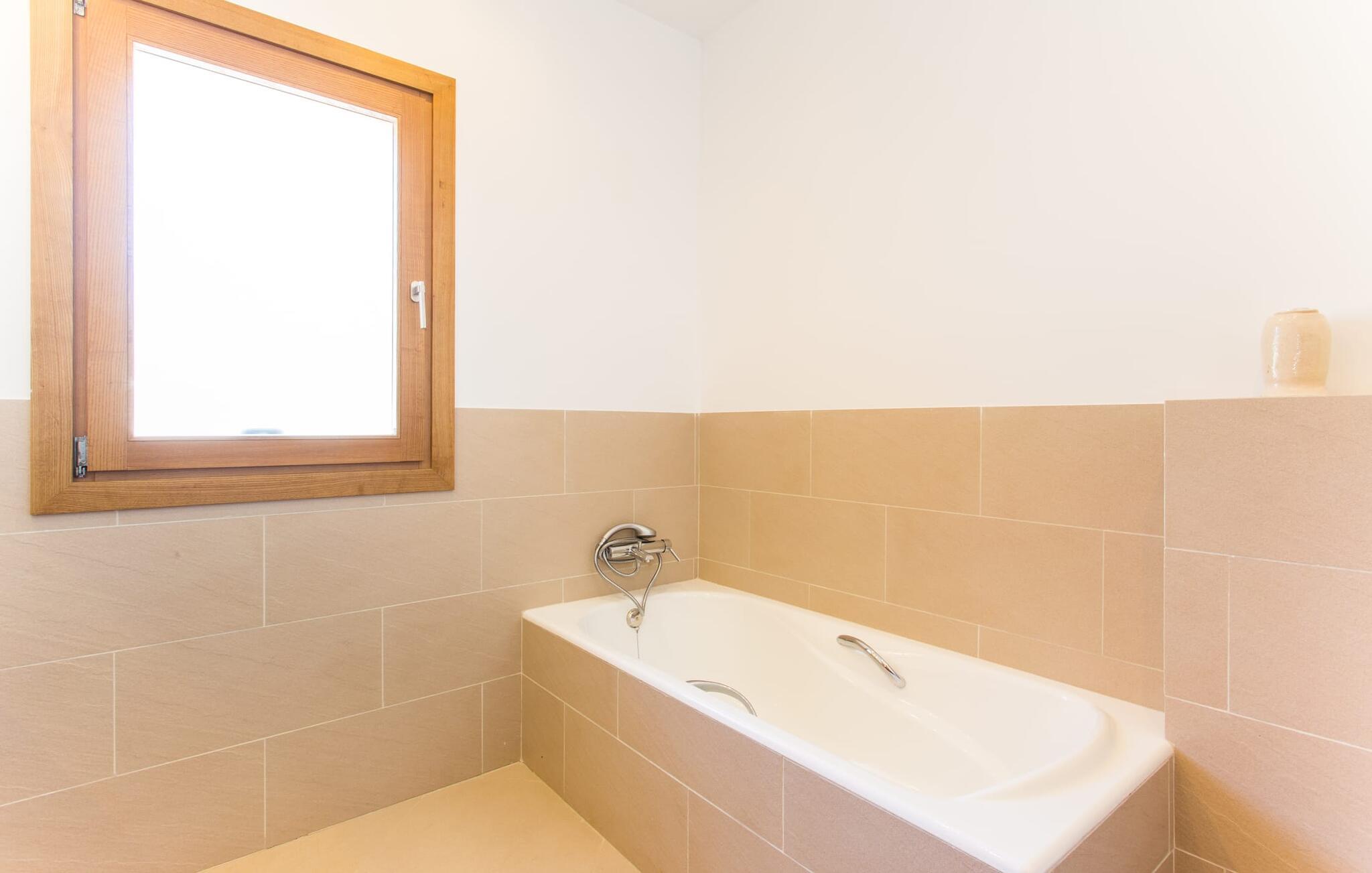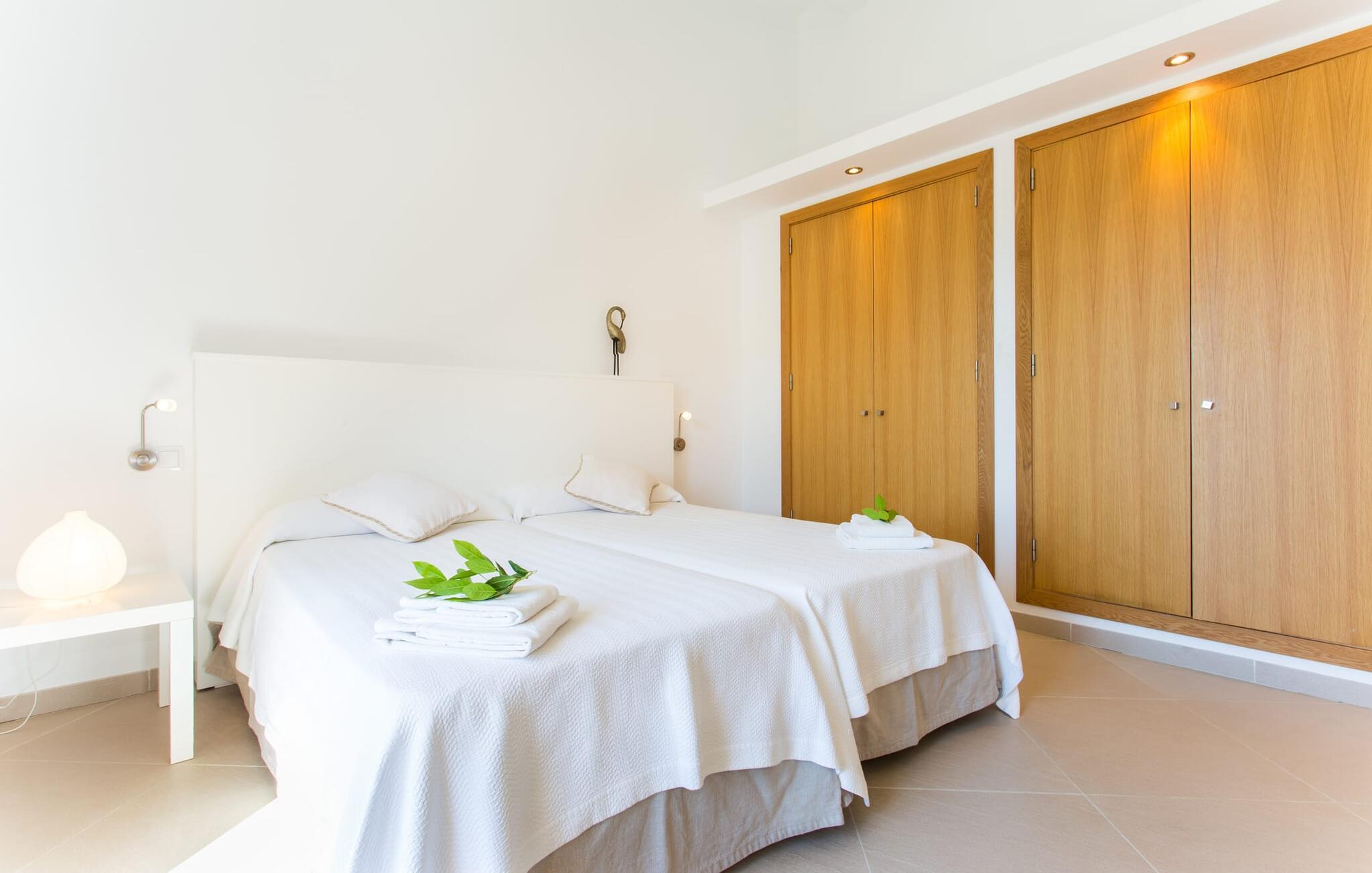 Efter en forfriskende svømmetur i jeres private mini-hav, kan I tage en siesta på den omsluttende terrasse, på en af liggestolene under en markise eller, hvis I føler, at I ikke har fået nok sol endnu, tage en pause til frokost og slap af på græsplænen og lad den varme sol blidt kærtegne jeres hud. Rejser I med børn? Ingen grund til bekymring – poolen er børnesikker. Udearealet er smukt anlagt med aflange grusarealer og fire øer med omhyggeligt beplantet grønt. Den restaurerede facade på den 100 år gamle villa er et sandt blikfang med sine brune skodder og ligger over en overdækket terrasse med et stort bord, hvor I kan nyde ferielækkerier tilberedt efter jeres smag på grillen. Indenfor vil I hurtigt mærke, at jeres sommerhus - selvom det har en lang historie - er fyldt med moderne elementer og udstråler en sublim lysstyrke. Alt her vidner om ejernes udsøgte stil, som har skabt et meget lyst og indbydende interiør med stor sans for detaljer og også takket være de store vinduespartier. I kan nemt tilberede mere kunstfærdige retter i det perfekt udstyrede køkken og servere dem i samme rum ved det hvide træbord, som også kan bruges til at spille brætspil eller til socialt samvær. En skydedør i lyst træ åbner udsigten ind til den moderne stue, hvor I kan vælge mellem gyngestole og to komfortable sofaer. Når I sidder her, kan I nyde den knitrende, stilfulde pejs, der skaber en hjemlig, varm atmosfære, eller se en af klassikerne fra jeres must-see-filmliste. Når alt kommer til alt, er ferie den perfekte mulighed for endelig at gøre alle de ting, I aldrig finder tid til. I stueetagen er der et soveværelse, et badeværelse og et andet soveværelse med badeværelse, som kun er tilgængeligt fra dette værelse. Upåfaldende kunstværker fordelt i hele huset bryder rummet op med et generøst, minimalistisk, klart præg. Trappen i gangen fører op til øverste etage, hvor I bliver mødt af endnu en stue med sofaer. Hvid er den fremherskende farve i kombination med andre jordnære naturtoner. Der er også en balkon på første sal med udsigt til havet i det fjerne, der glitrer i tusinde nuancer af blåt. Selvom I forlader villaen for at udforske omgivelserne, vil I finde mange naturlige toner. Villaen ligger lige på en gade, som I nogle gange kan høre. Fordelen er dog, at I er meget godt forbundet, og jeres daglige indkøb kan gøres i landsbyen Son Servera, kun 7 km væk, som er ideel til en gåtur med sine stejle gader. På vejen dertil kommer I forbi Pula golfbane, hvor I kan arbejde på jeres handicap. Eller I kan tage til den livlige kystby Cala Millor, kun 7 km fra jeres villa. Her kan I besøge det lokale marked om søndagen, hvor I kan købe frisk fisk fanget af fiskerne om morgenen. I kan selvfølgelig også gå i havet, for takket være det fine, hvide sand og den fremragende vandkvalitet er indsejlingen skånsom og meget skånsom. Costa de los Pinos med dets turkise vand og idylliske bugter, der får enhver ferierejsendes hjerte til at banke hurtigere, kan nås på kun 8 minutter. For at afslutte jeres dag kan I nyde den uforglemmelige aftenstemning i byen Artà, omkring 7,6 km væk, med dens mange snoede gader. Villaen "Bell Jardi" kombinerer århundreders tradition med uforlignelig modernitet og vidner om alsidigheden i denne særlige region på Mallorca. Her står Son Servera med sine stejle gader i skærende kontrast til den smukke, blide natur, der omgiver den. Hvis I er en hav- og naturelsker, vil overfloden af smukke kystbyer og strande som Cala Millor, Cala Bona, Costa dels Pins og Cala Agulla få jer til at føle, at I er i paradis - og gæt hvad: det er I faktisk! Artà, middelalderbyen med magisk charme, ligger kun 10 minutters kørsel væk.