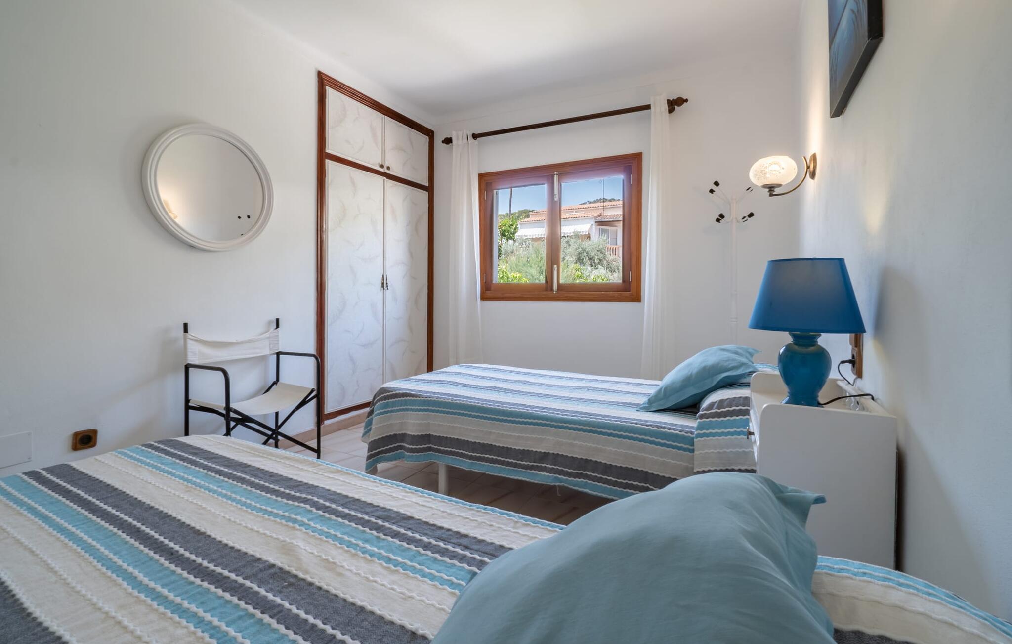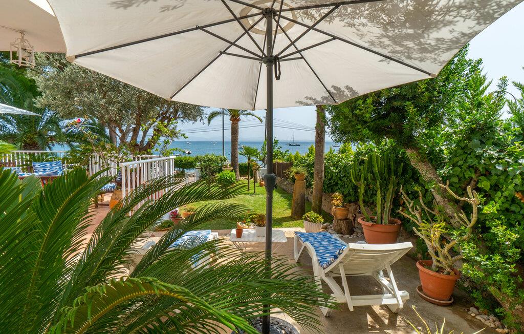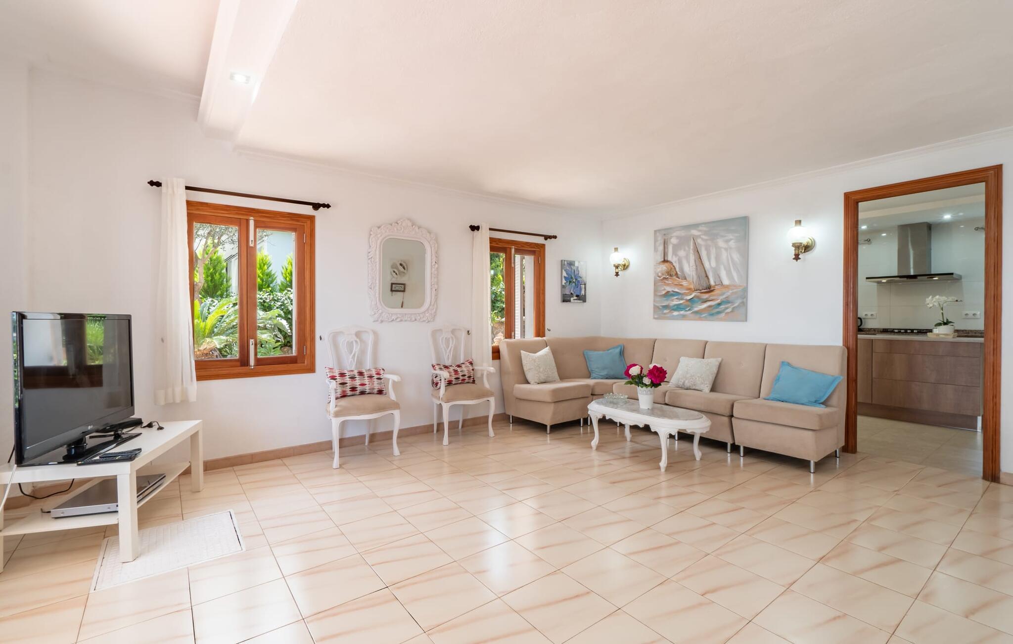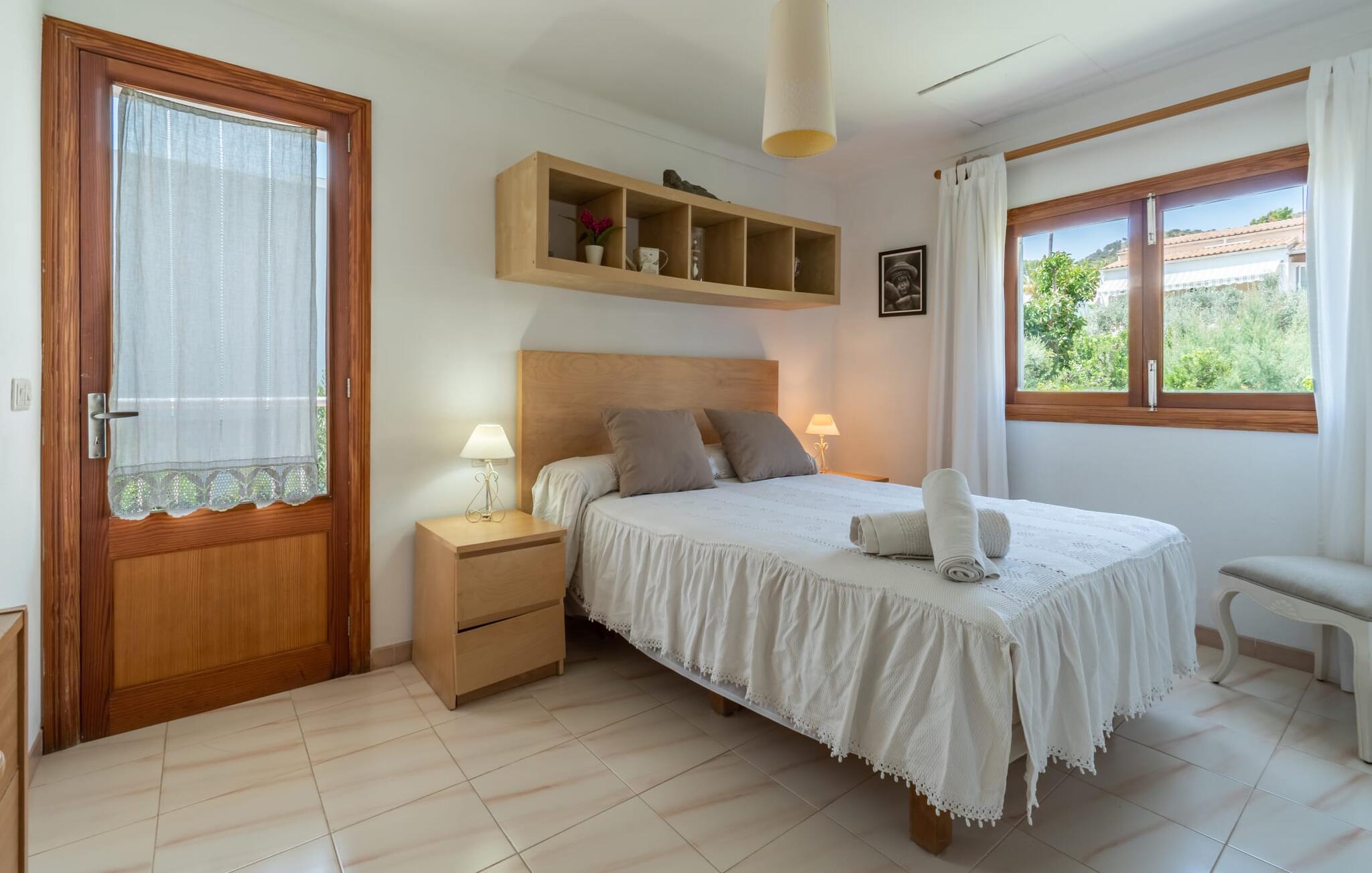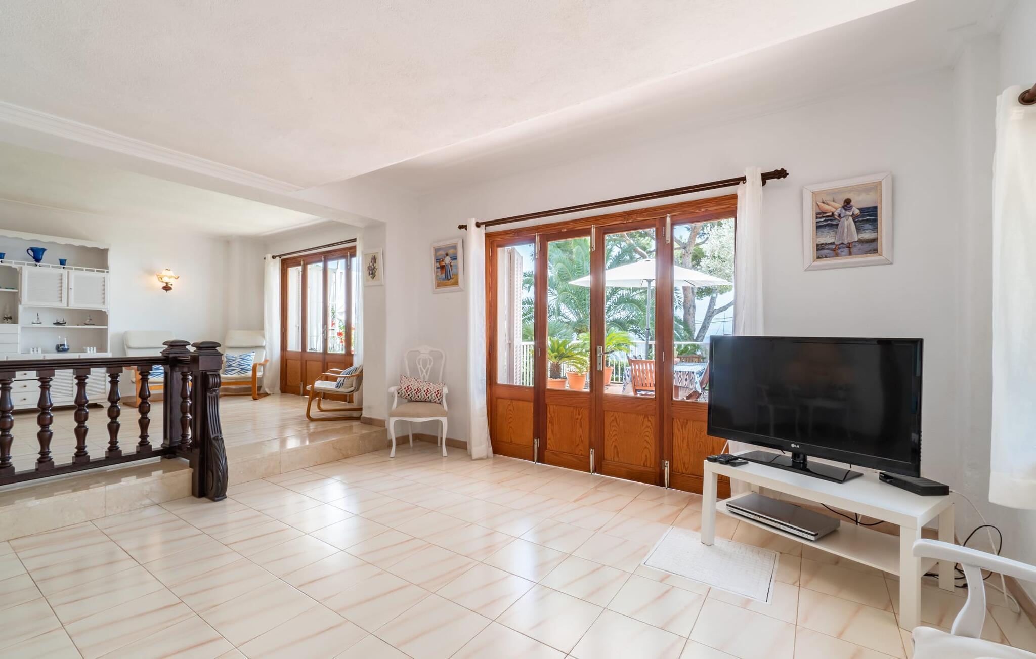 Har I et hus ved havet i tankerne? “Bell Punt står til jeres rådighed! På forskellige overdækkede eller åbne terrasser og den store altan kan I sidde her med udsigt over havet og nyde jeres morgenmad eller solide grillaftener, solbade og måske slet ikke lave noget ved havet En blid brise kærtegner jeres hud. Den kærligt anlagte have med knudrede oliventræer og høje palmer fører jer direkte til havet, mindre end 30 meter væk, hvis overflade glitrer i sollys I kan nå havet via anløbsbroen, hvor I kan dingle med benene og se drømmende ved horisonten. En rummelig stue-spisestue med forskellige hyggelige områder, visuelt adskilt af et trin og et lille rækværk, byder på mange indbydende muligheder for at blive hængende og slappe af indendørs. Lyse møbler, gulve og vægge giver behageligt lys, mens farverige dekorationer tilføjer små, effektive accenter. Køkkenet, lige ved siden af og med direkte adgang til det fri, er naturligvis fuldt udstyret og derfor ideelt til selvforplejning på ferien. Der er også et badeværelse på denne stueplan, mens de fire dobbeltværelser - nogle med kæmpe vinduer og tilsvarende betagende udsigt - og det andet badeværelse er på øverste etage, hvor den omkringliggende altan også er placeret. Dette feriehus på Mallorca er svært at slå for sin beliggenhed lige ved havet! Kun et par skridt adskiller villaen "Bell Punt" fra vandet, på hvis bølger bådene forsigtigt vugger. 600 m² jord, anlagt som en smuk have, supplerer den maritime beliggenhed atmosfærisk. Takket være sin beliggenhed på en lille gade med lidt trafik er shopping let, og flere strande som Alcananda eller Cala Ponset (400-500 m) er i nærheden.