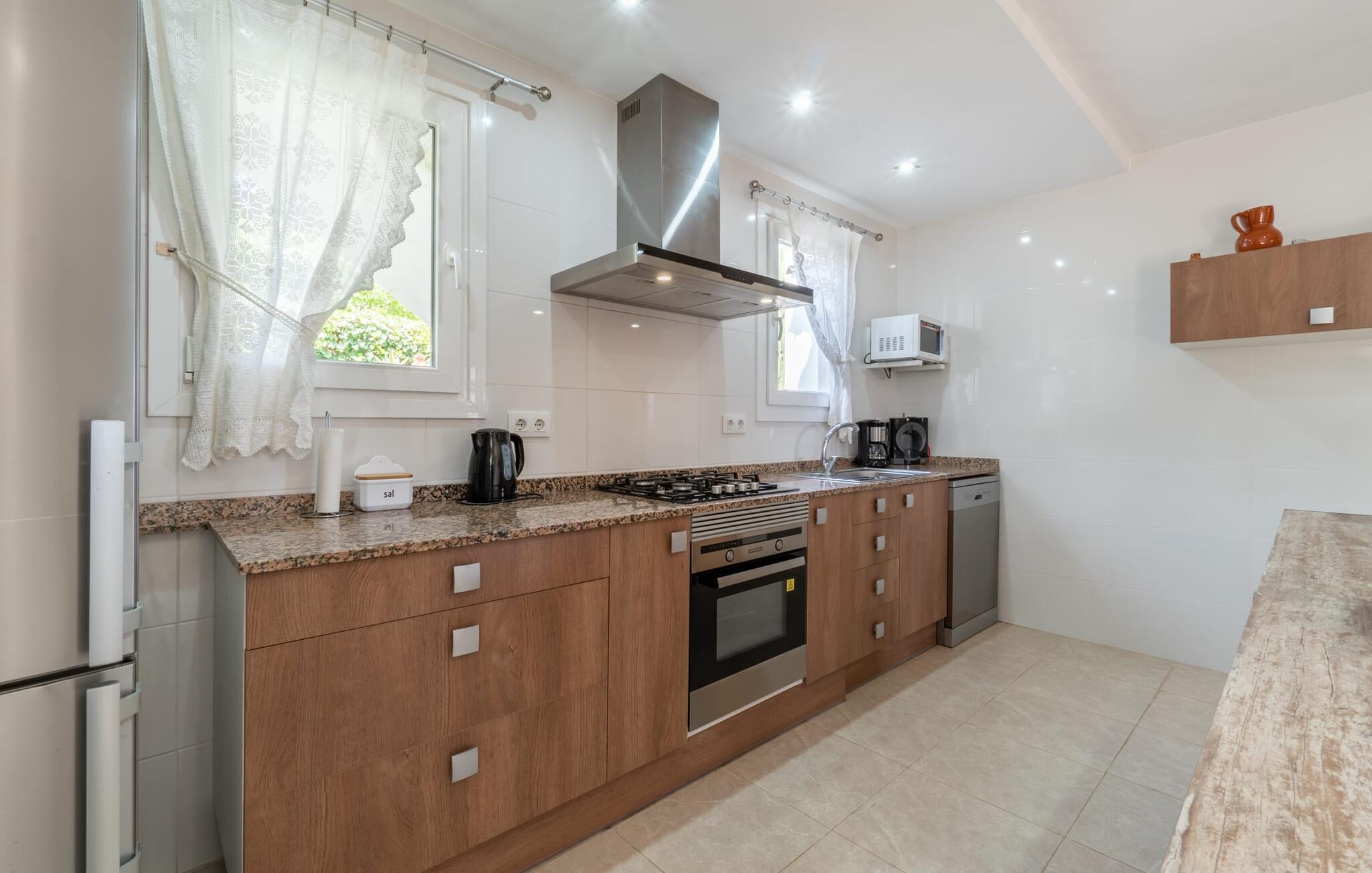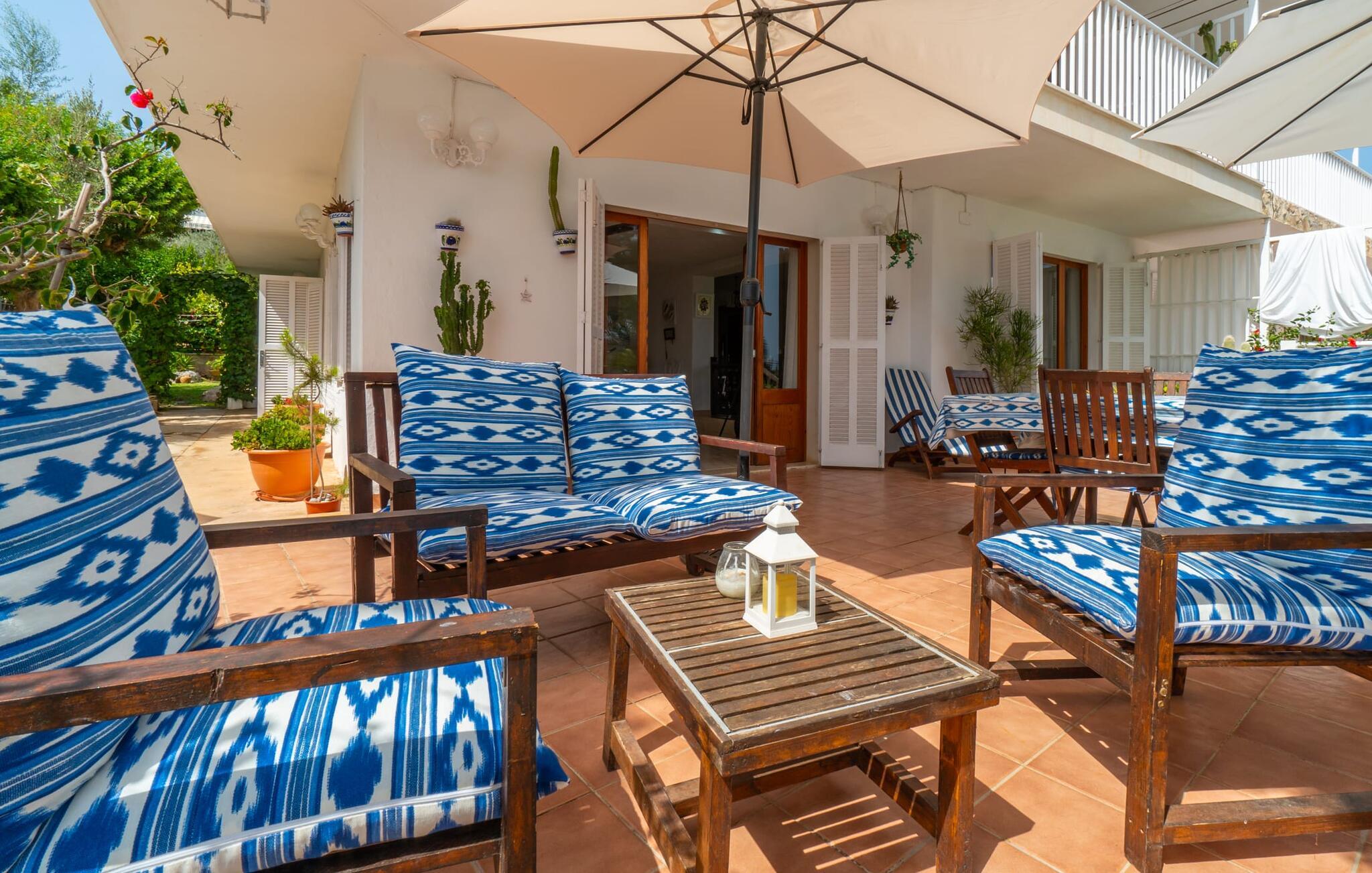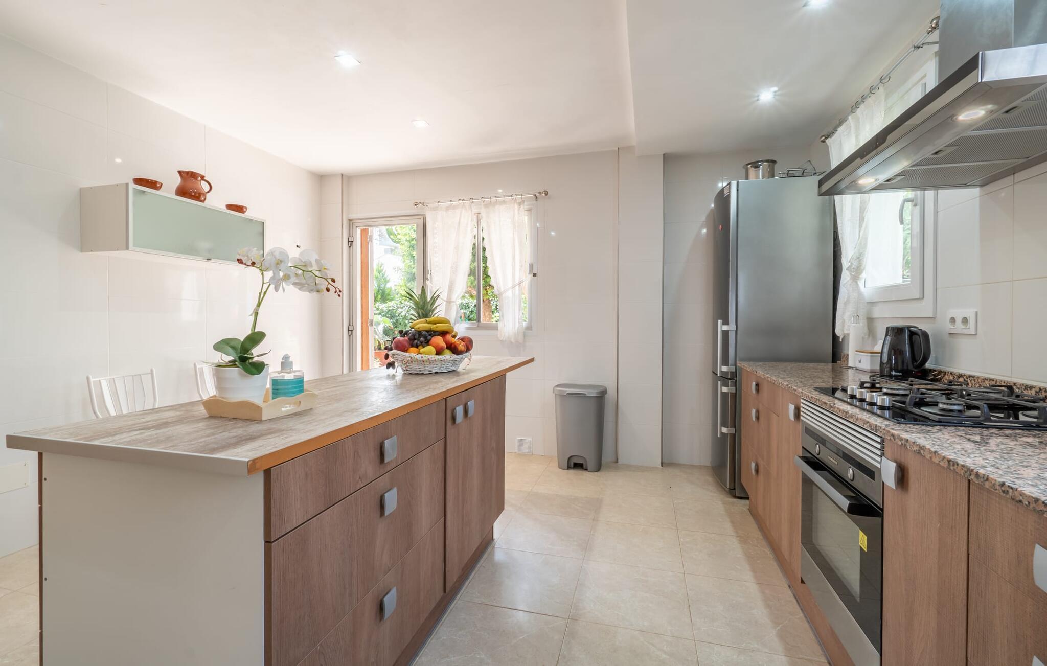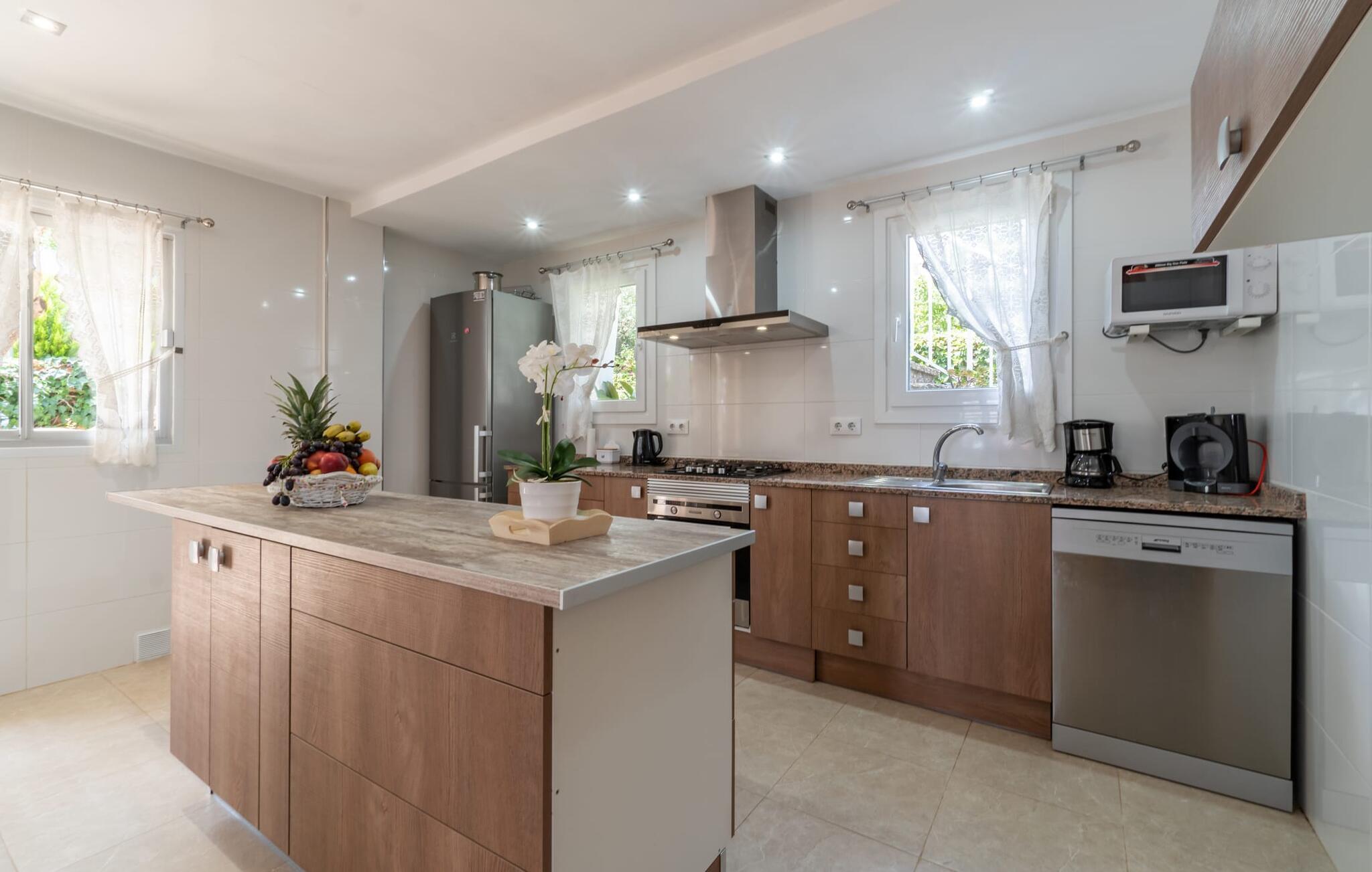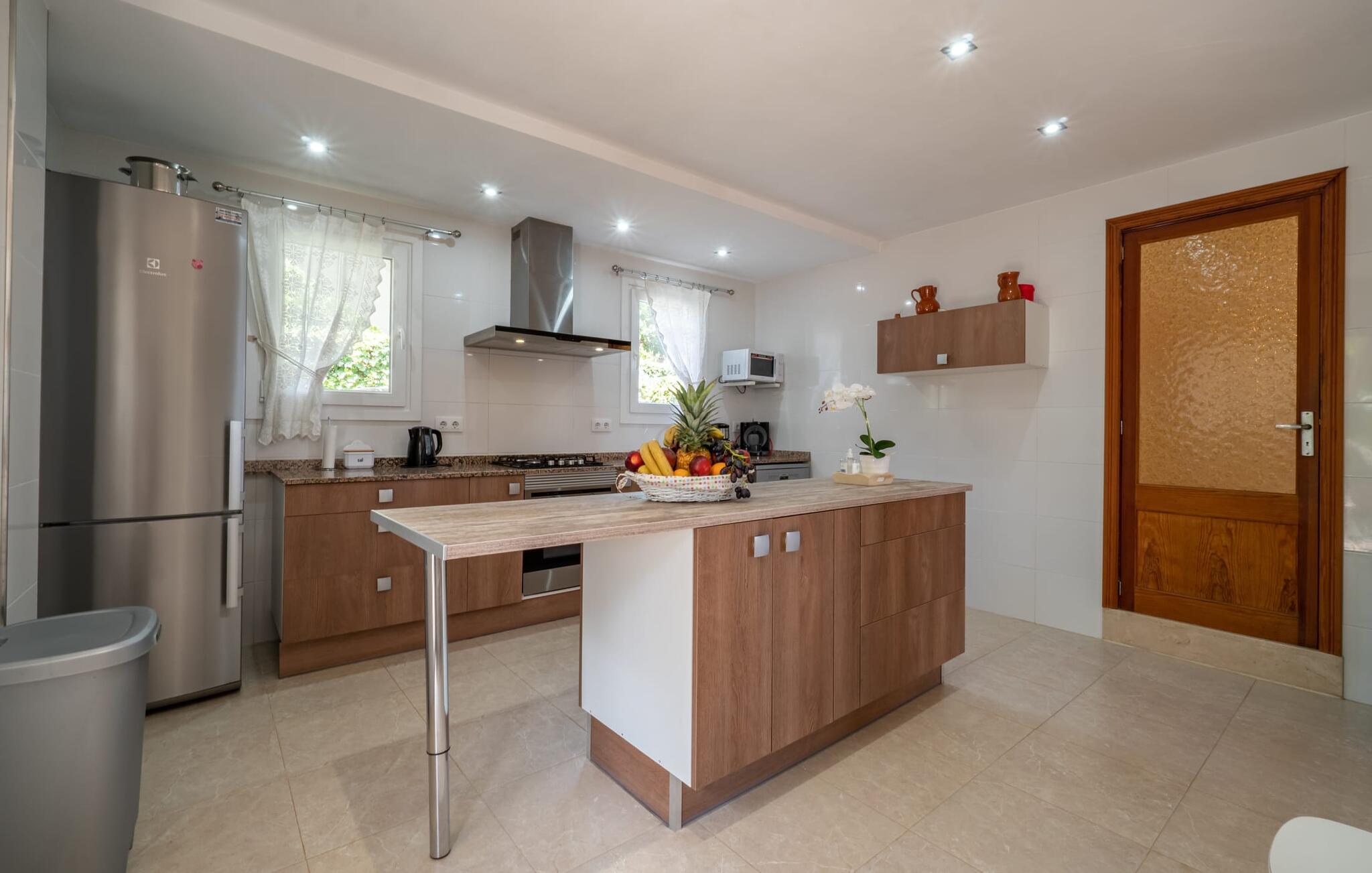 Har I et hus ved havet i tankerne? “Bell Punt står til jeres rådighed! På forskellige overdækkede eller åbne terrasser og den store altan kan I sidde her med udsigt over havet og nyde jeres morgenmad eller solide grillaftener, solbade og måske slet ikke lave noget ved havet En blid brise kærtegner jeres hud. Den kærligt anlagte have med knudrede oliventræer og høje palmer fører jer direkte til havet, mindre end 30 meter væk, hvis overflade glitrer i sollys I kan nå havet via anløbsbroen, hvor I kan dingle med benene og se drømmende ved horisonten. En rummelig stue-spisestue med forskellige hyggelige områder, visuelt adskilt af et trin og et lille rækværk, byder på mange indbydende muligheder for at blive hængende og slappe af indendørs. Lyse møbler, gulve og vægge giver behageligt lys, mens farverige dekorationer tilføjer små, effektive accenter. Køkkenet, lige ved siden af og med direkte adgang til det fri, er naturligvis fuldt udstyret og derfor ideelt til selvforplejning på ferien. Der er også et badeværelse på denne stueplan, mens de fire dobbeltværelser - nogle med kæmpe vinduer og tilsvarende betagende udsigt - og det andet badeværelse er på øverste etage, hvor den omkringliggende altan også er placeret. Dette feriehus på Mallorca er svært at slå for sin beliggenhed lige ved havet! Kun et par skridt adskiller villaen "Bell Punt" fra vandet, på hvis bølger bådene forsigtigt vugger. 600 m² jord, anlagt som en smuk have, supplerer den maritime beliggenhed atmosfærisk. Takket være sin beliggenhed på en lille gade med lidt trafik er shopping let, og flere strande som Alcananda eller Cala Ponset (400-500 m) er i nærheden.