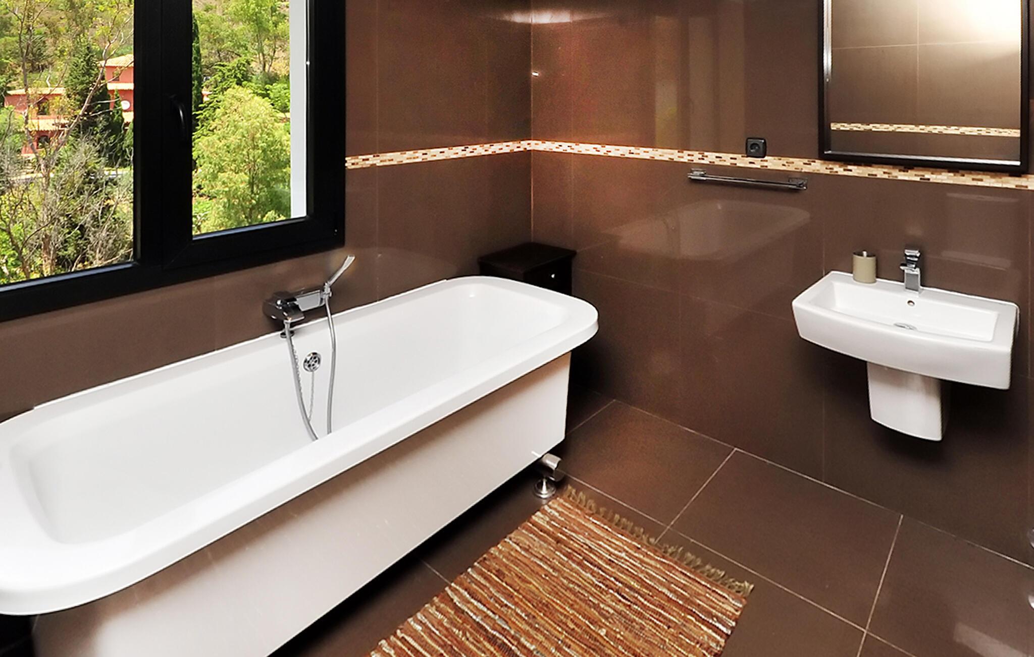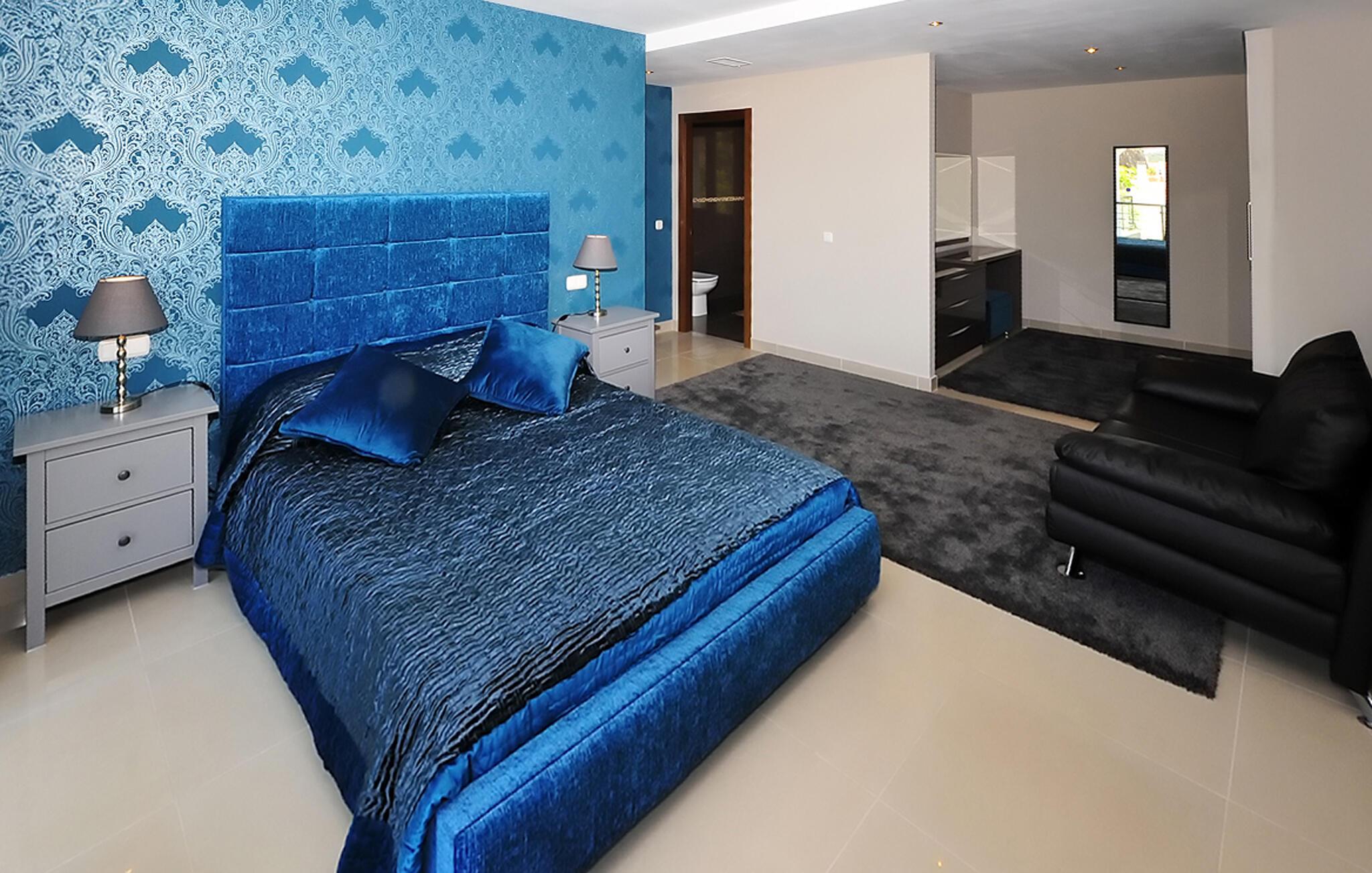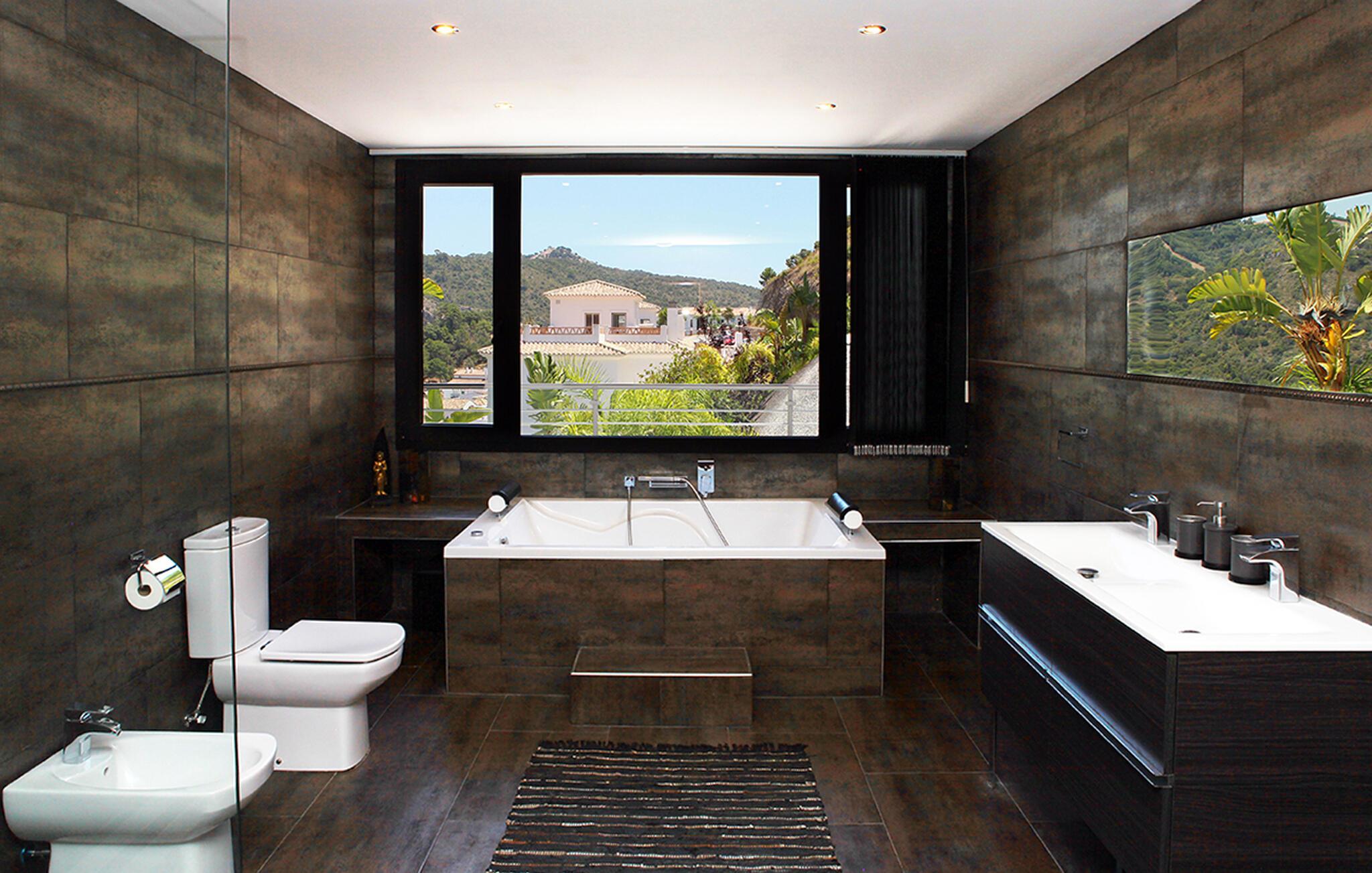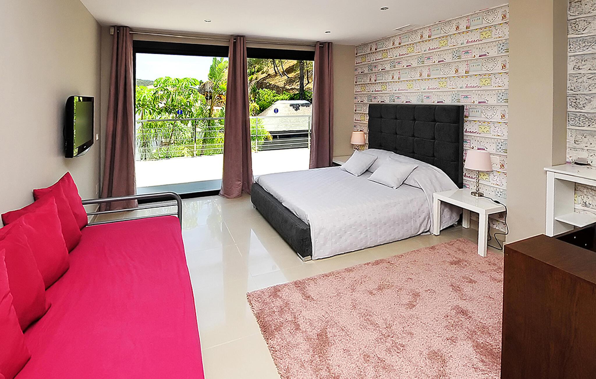 Fra den store terrasse kan I nyde den betagende udsigt over de omkringliggende bakker og slappe af med et glas vin. Svøm i poolen, solbad på de behagelige liggestole og nyd en kølig drink i sommervarmen. Tilbring tid med at være social i det overdækkede udendørsområde, tilbered lækre måltider og nyd middelhavsatmosfæren under palmer og en blå himmel.