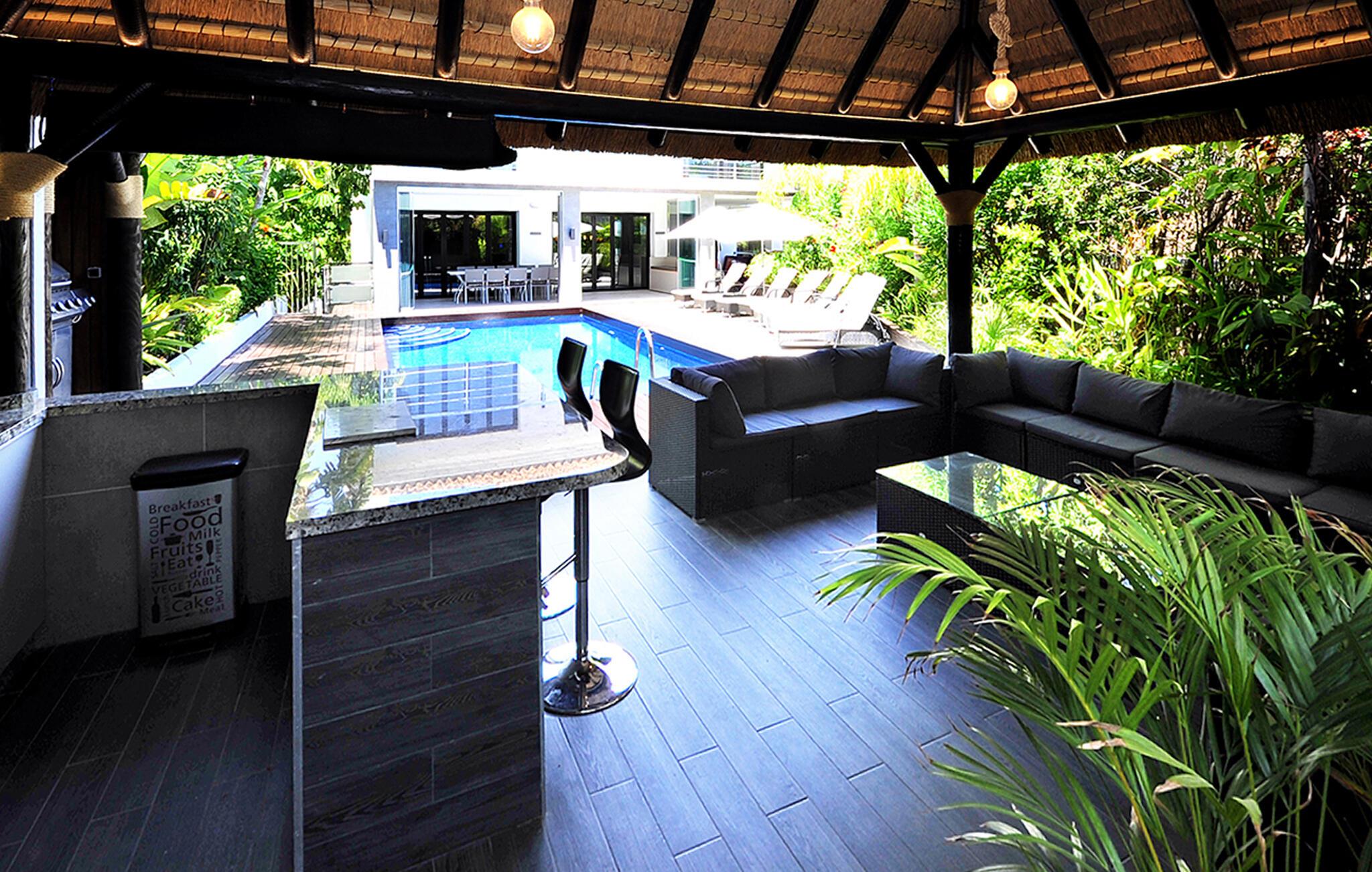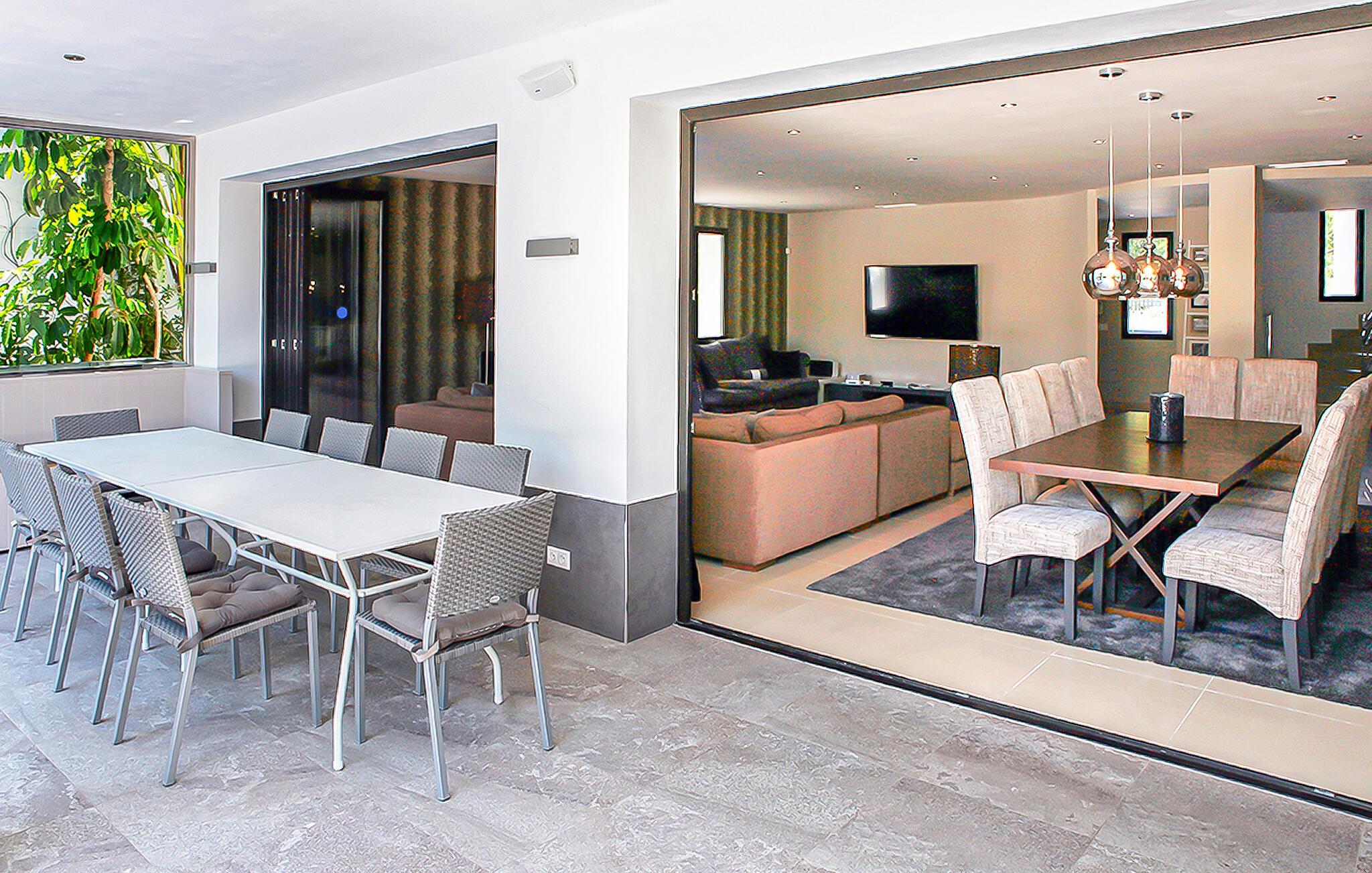 Dette hus er noget særligt med sin elegante atmosfære og stilfulde detaljer, varme belysning og problemfri overgange til terrassen. Slap af og lad op med en duftende kaffe, et spil billard eller lyt blot til god musik. Nyd hyggelige stunder i køkkenet, lav mad sammen og afslut aftenen i eksklusive omgivelser.