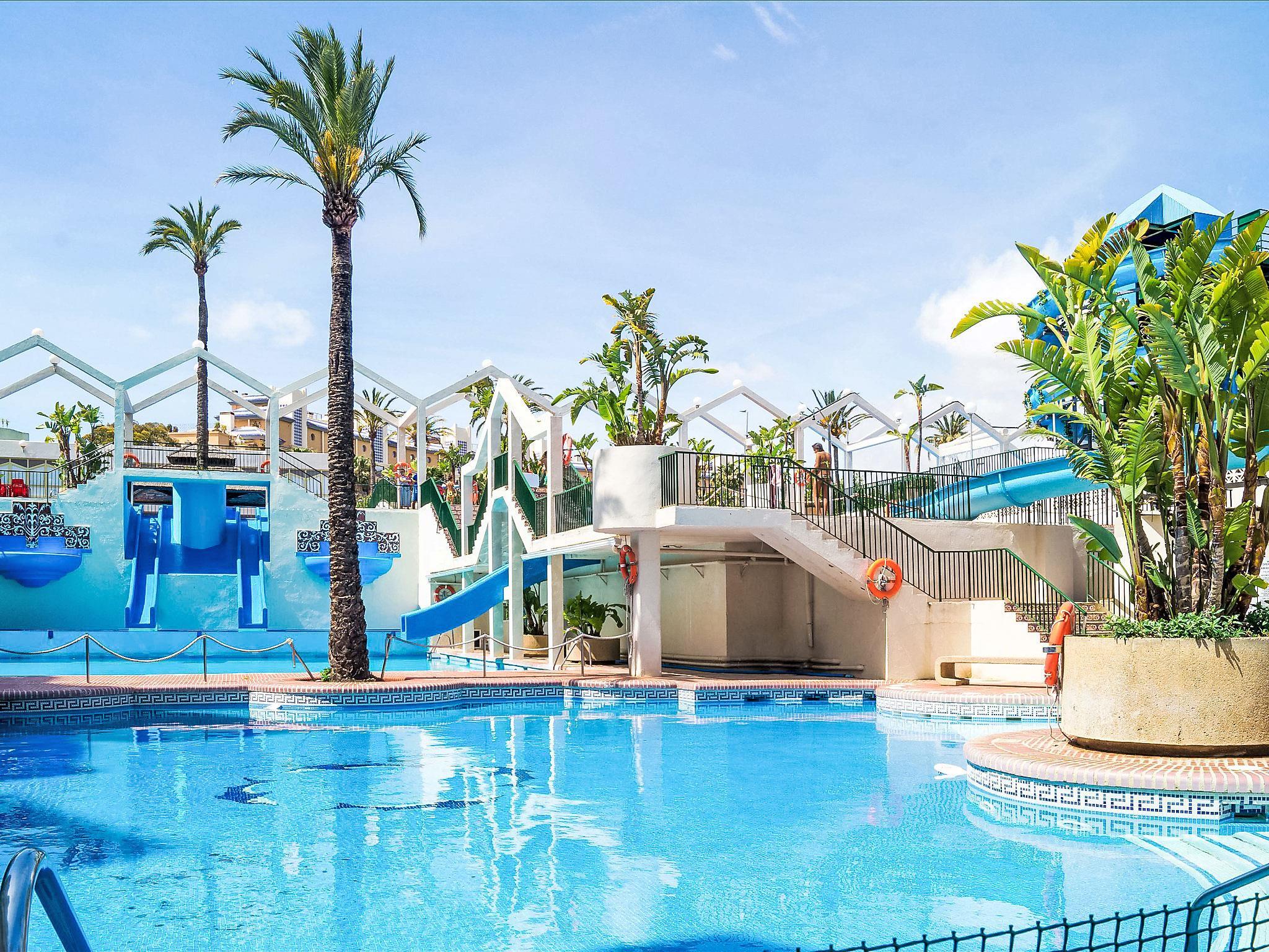 Benalmadena Costa: Cosy, comfortable apartment block "Benalbeach", 10 storeys. In the centre of Benalmadena Costa, in a central, sunny position, 100 m from the sea, 100 m from the beach, road to cross. For shared use: garden with lawn 5'000 m2, pond, 4 swimming pools angular (seasonal availability: 01.Mar. - 30.Oct.). Shower/WC in the pool area, children's pool, slide, table tennis. In the house: reception, restaurant, WiFi (extra). Fitness room (extra). Billiard table, playroom, table football, shopping facilities, lift. Shop, restaurant, café 20 m, bus stop 100 m, railway station 1.5 km, sandy beach 100 m, indoor swimming pool 1 km. Sports harbour 2 km, riding stable 2 km, cable car 2 km, ice rink 1 km. Nearby attractions: Tivoli Wold 2 km, Mariposario 3 km, Castillo Bil Bil 100m. Guarded residence. Neighbourhood highly sensitive to noise. Quietness and good behaviour expected. Youth groups not permitted.