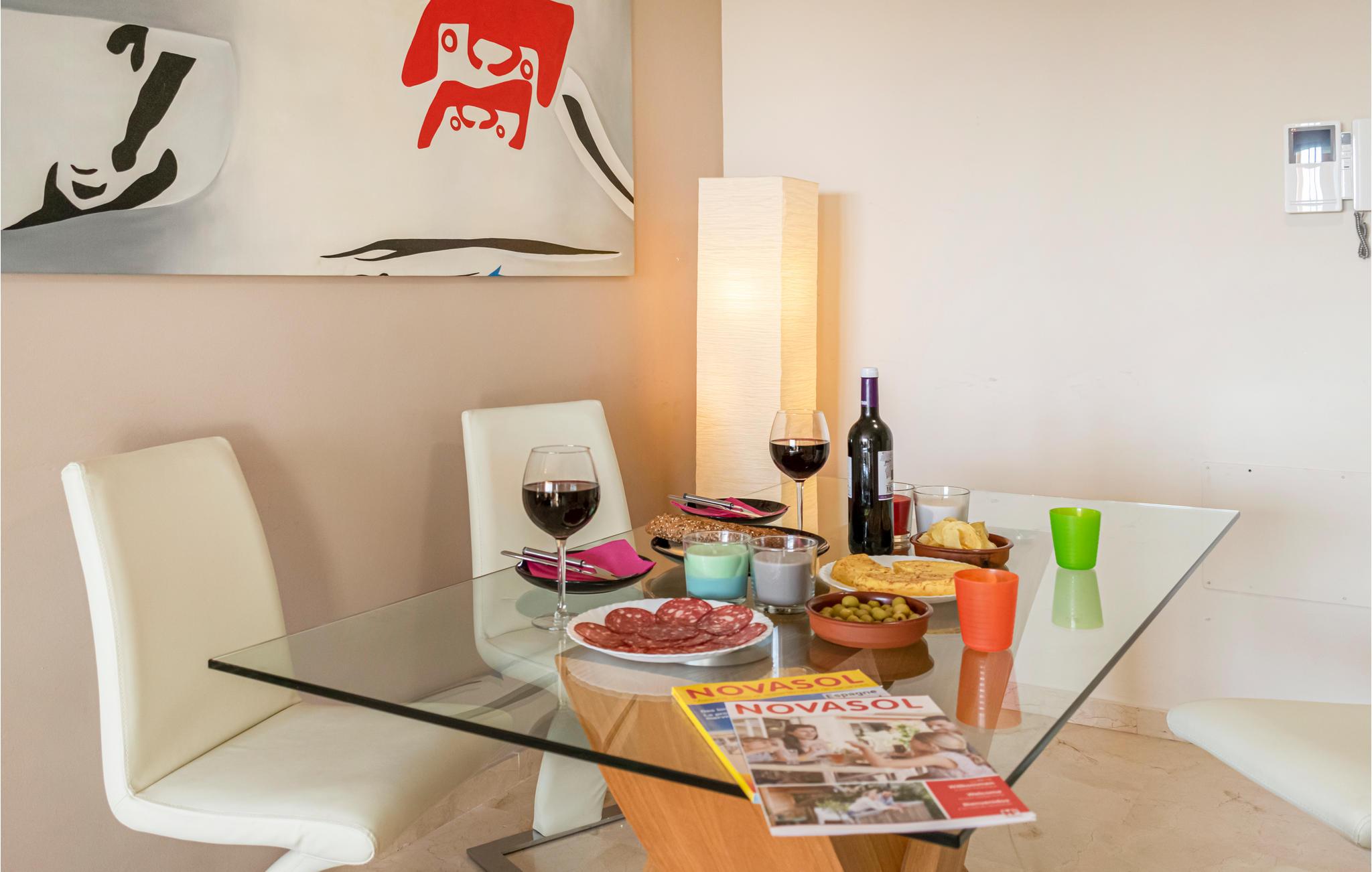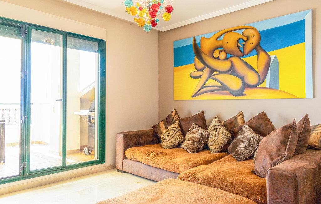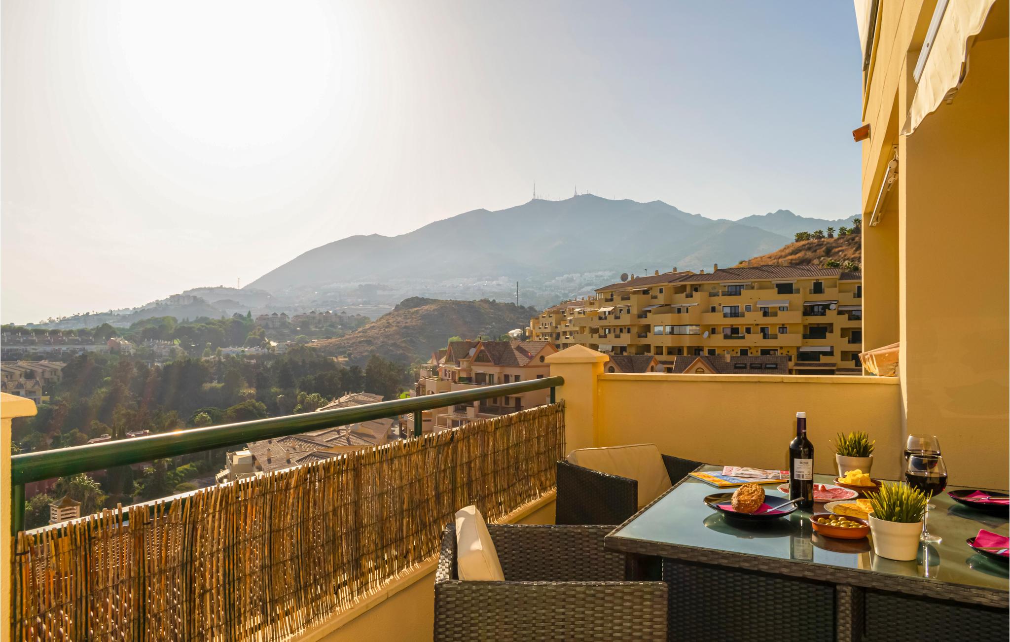 Denne rummelige og lyse ferielejlighed med 2 soveværelser har en rolig beliggenhed i Benalmádena Costa og kan huse op til 4 voksne og 2 børn. Nyd drinks udendørs eller spis på den store, sydvestvendte, delvist overdækkede terrasse (med stor gasgrill) og nyd den vidunderlige panoramaudsigt over golfbanen Torrequebrada og helt til Middelhavet, hvor man på klare dage endda kan se den nordafrikanske kyst.