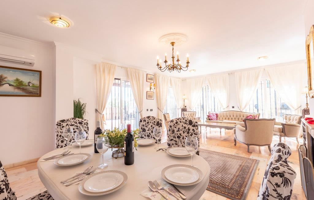 Dette skønne hus tilbyder masser af plads, også til større grupper. Det er komfortabelt indrettet og imponerer især med et stort udendørsområde. Her finder I en privat pool, hvor I kan nyde det vidunderlige vejr i Andalusien hele dagen lang. På de store, delvist overdækkede terrasser kan I begynde dagen med en lækker morgenmad eller afslutte dagen med et godt glas vin. En grill til hyggelige aftener under åben himmel er også tilgængelig.