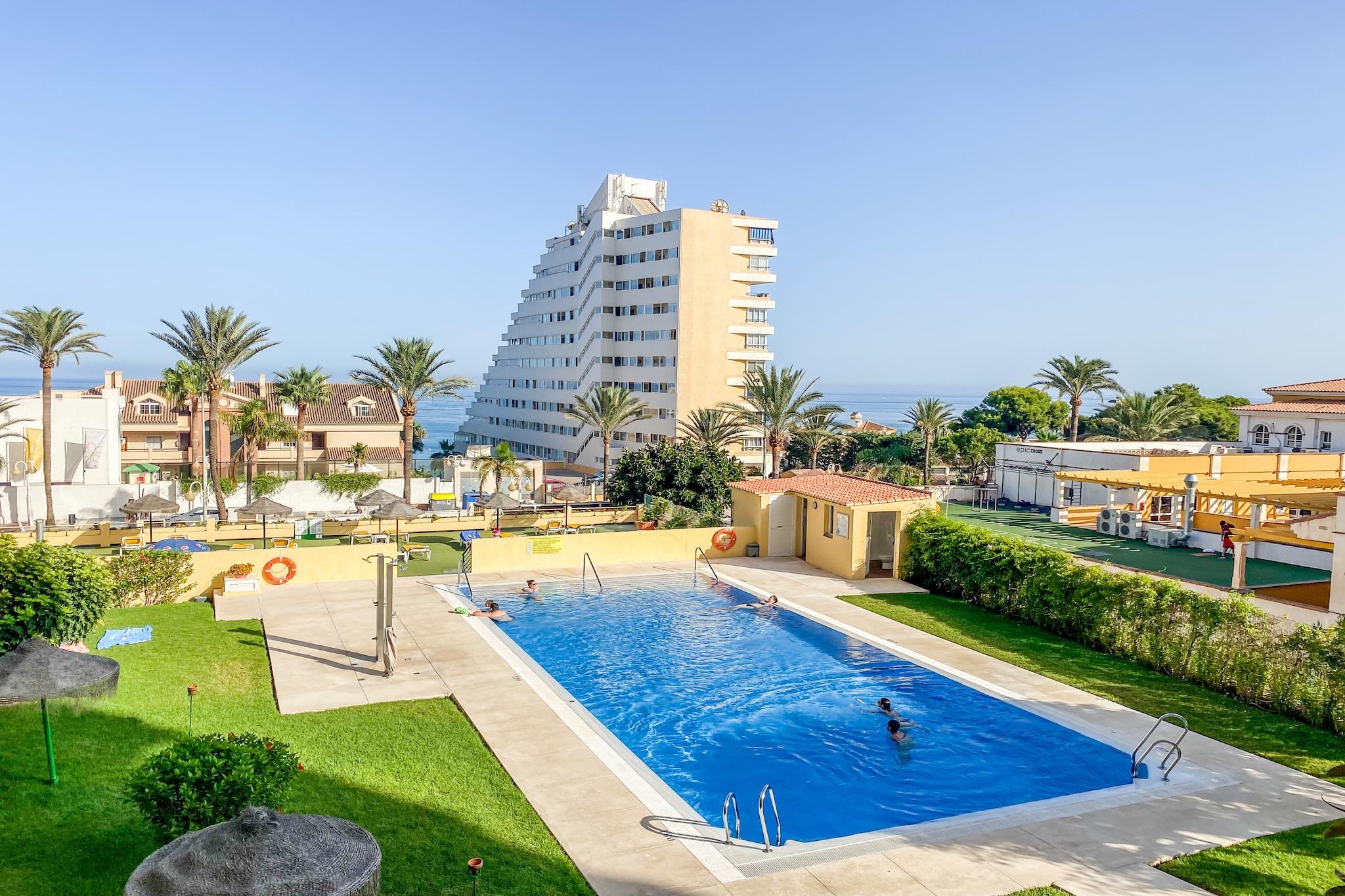 Denne elegante lejlighed tilbyder et roligt tilflugtssted med panoramaudsigt over Middelhavet. Boligen er designet til komfortabelt at rumme op til fire gæster og har en rummelig opholdsstue, et fuldt udstyret køkken og en privat terrasse, der inviterer dig til at slappe af, mens du kigger ud over den endeløse horisont. Den blide lyd af bølger og den varme havbrise skaber en afslappende atmosfære, hvilket gør den til et ideelt tilflugtssted for par, familier eller venner, der søger en kystferie. Ideel til opdagelsesrejsende og afslapningssøgende: Uanset om du er en eventyrer, der er ivrig efter at udforske, eller en, der ønsker at slappe af, henvender denne lejlighed sig til alle. Dens nærhed til stranden giver mulighed for spontane dukkerter i havet, mens de nærliggende attraktioner tilbyder kulturelle og rekreative oplevelser. Det sikre boligkompleks sikrer ro i sindet, og den fælles swimmingpool giver et ekstra sted at nyde den spanske sol. Oplev Benalmádenas attraktioner og aktiviteter: Træd udenfor, og få øjeblikke væk fra den pulserende Puerto Marina, der er kendt for sin unikke arkitektur, travle butikker og forskellige spisemuligheder. Familier vil nyde besøg på Sea Life Benalmádena-akvariet og Selwo Marina, der er hjemsted for delfiner, søløver og eksotiske fugle. Naturentusiaster kan udforske de frodige landskaber i Parque de la Paloma, hvor påfugle strejfer frit omkring, eller tage en tur med svævebanen op ad Monte Calamorro for at opleve en betagende udsigt og rovfugleudstillinger. For et strejf af historie tilbyder Castillo de Colomares en finurlig hyldest til Christopher Columbus. Uanset om du forkæler dig selv med lokale tapas, begiver dig ud på en delfinobservationsudflugt eller blot slentrer langs promenaden, lover Benalmádena en mindeværdig oplevelse for alle.
