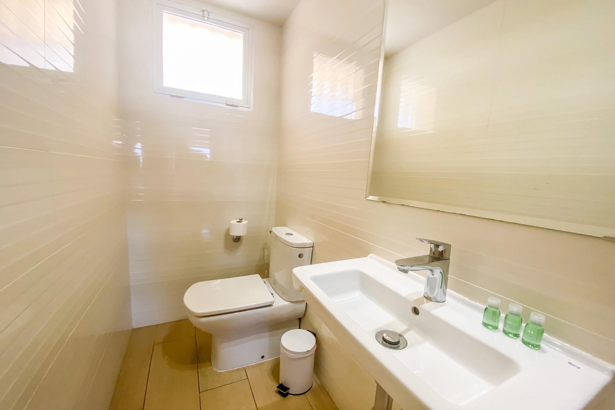 På 1. etage: (Stue(Fjernsyn(Smart-TV), spisebord, sofahjørne), åbent køkken(kogeplade(glaskeramisk), elkedel, brødrister, kaffemaskine, ovn, mikrobølgeovn, køle-fryseskab, , Wine glasses), soveværelse(king size-seng), soveværelse(enkeltseng, enkeltseng), soveværelse(enkeltseng, enkeltseng), badeværelse(bruser, føntørrer), toilet(toilet), Internetadgang) Internetadgang, tørretumbler, vaskemaskine, balkon, varme(central), klimaanlæg, terrasse, havemøbler, parkering, swimmingpool(deles med andre gæster), elevator, strygejern