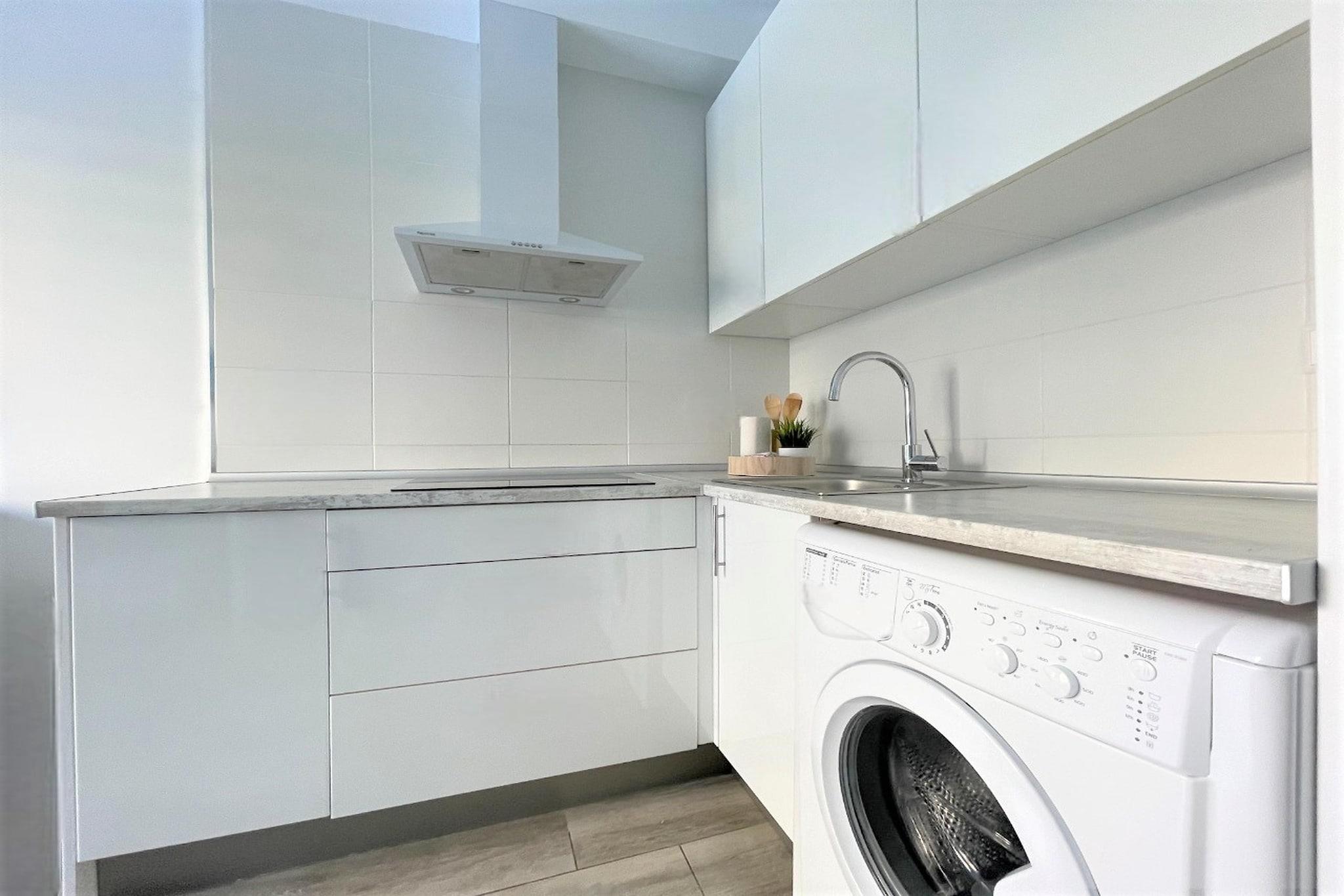Denne lyse og indbydende lejlighed er designet med moderne og funktionel indretning for at sikre et behageligt ophold for op til 4 gæster. Det har et rummeligt soveværelse med en dobbeltseng, en sovesofa i stuen, et komplet badeværelse og et fuldt udstyret køkken. Den private terrasse tilbyder et perfekt sted at slappe af og nyde en fantastisk havudsigt. Beliggende kun få skridt fra stranden, kan du nemt nyde lange gåture langs det gyldne sand eller tage en forfriskende dukkert i Middelhavets krystalklare vand. Benalmádena-stranden er berømt for sin skønhed og livlige atmosfære, hvilket gør den til et ideelt sted at solbade eller dyrke vandsport. Benalmádena byder også på masser af familievenlige aktiviteter, herunder spændende vandlande og dyreparker, hvor du kan komme helt tæt på forskellige arter. Dyk ned i det sjove i det lokale vandland, hvor du kan glide ned ad spændende vandrutsjebaner og nyde en dag spækket med adrenalin og latter.