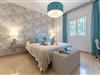 Stue(Fjernsyn, spisebord, hyggepejs, sofahjørne(8 personer), klimaanlæg), Køkken(kakkelovn, elkedel, brødrister, kaffemaskine, ovn, mikrobølgeovn, opvaskemaskine , køle-fryseskab), soveværelse(enkeltseng, enkeltseng, klimaanlæg), soveværelse(enkeltseng, enkeltseng, klimaanlæg), soveværelse(dobbeltseng, klimaanlæg), soveværelse(dobbeltseng, klimaanlæg), badeværelse(bruser, toilet), badeværelse(bruser, toilet), badeværelse(badekar med bruser, toilet), balkon eller terrasse, have(privat, indhegnet), havemøbler, grill, swimmingpool(privat, udendørs), Håndklæder/sengelinned (inkl.)