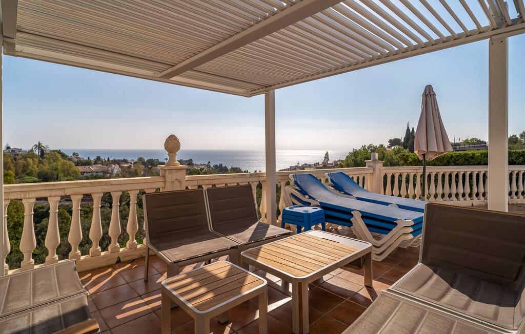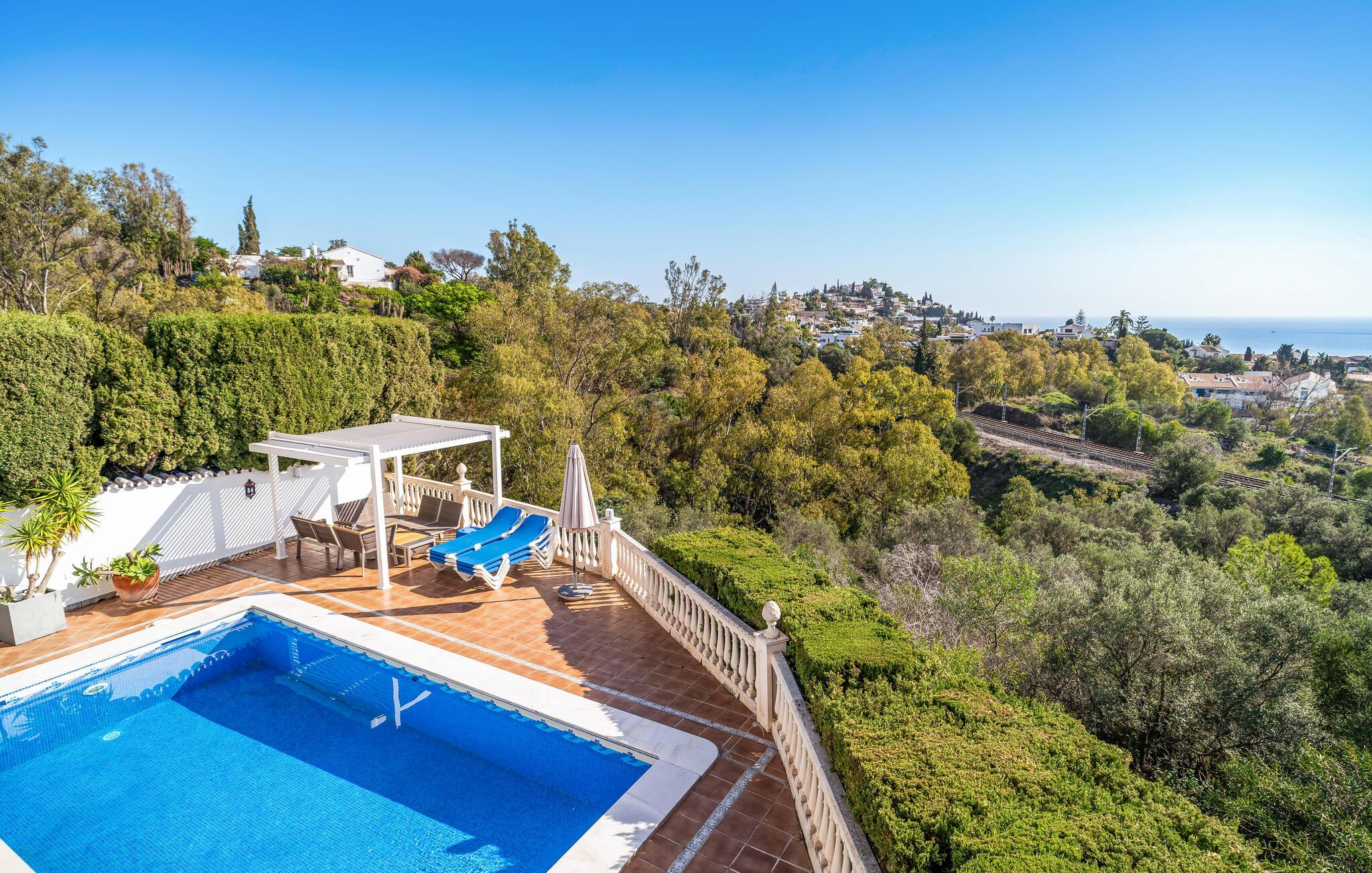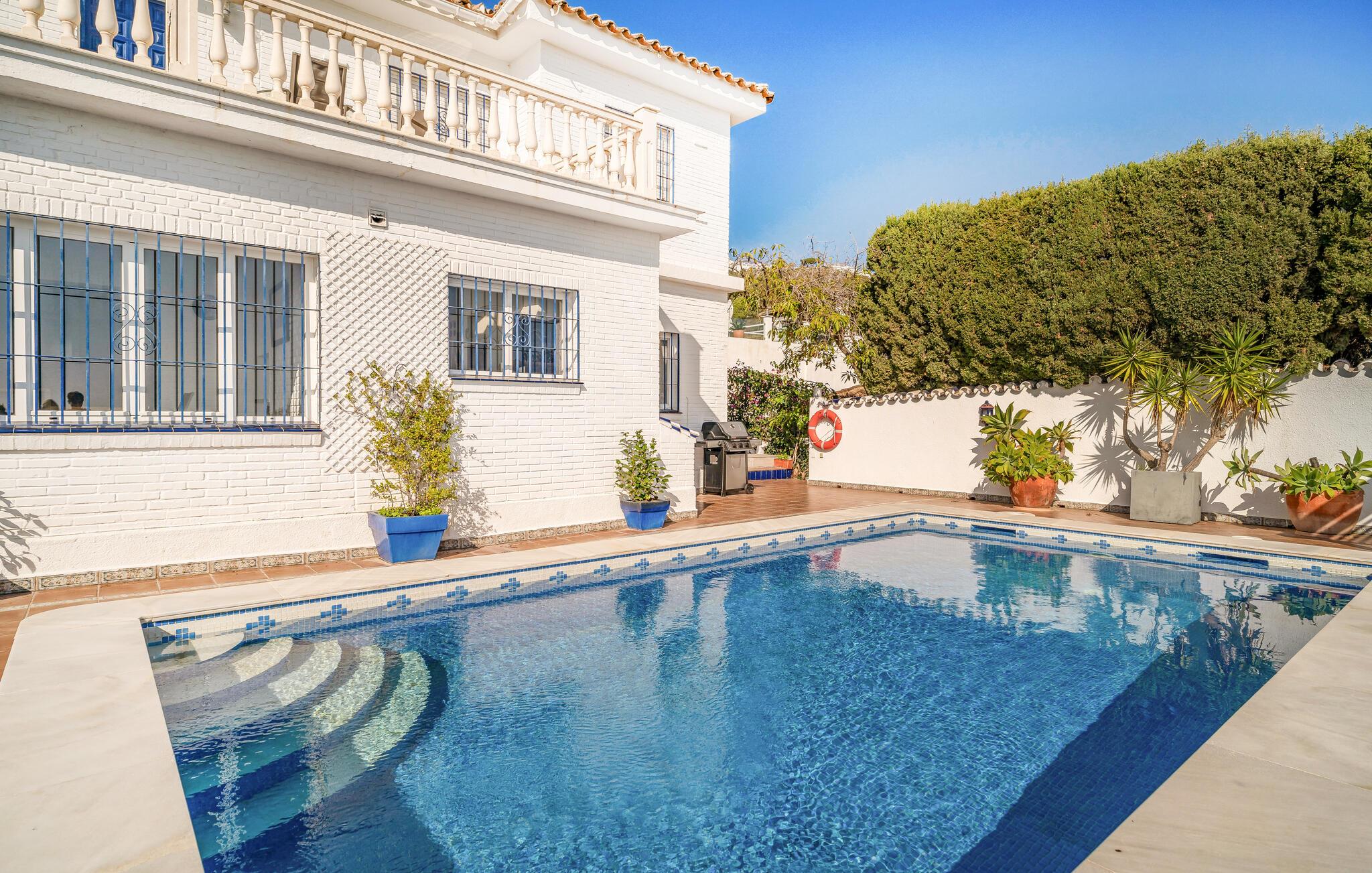 Glæd jer til jeres næste ferie i dette feriehus i Benalmadena, et sted der kombinerer afslapning, luksus og fantastiske udsigter. jeres rummelige hus med privat pool, solrige terrasser og stilfuldt interiør tilbyder alt hvad I behøver for en uforglemmelig ferie. Start dagen med morgenmad på den store terrasse, mens I nyder panoramaudsigten over det glitrende Middelhav. Tilbered jeres måltider i det veludstyrede køkken, hvor et spisebord lægger op til at dele morgenmaden. Den lyse opholdsstue med masser af komfortable siddepladser er perfekt til afslapning.