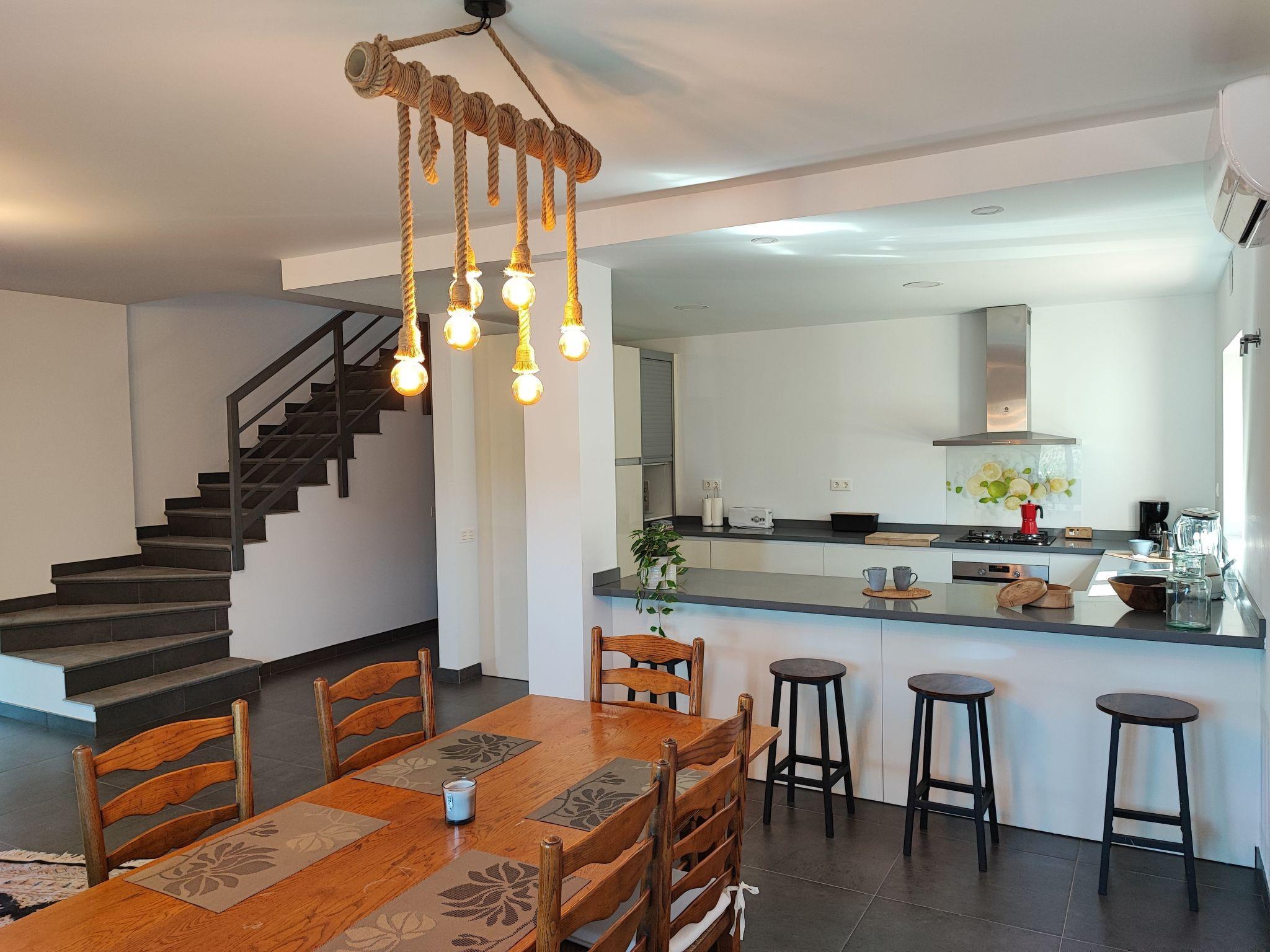 La maison dispose de 3 chambres et 2 salles de bains. La chambre principale se trouve au rez de chaussée et s'opens onto the terrace with beautiful views. A wonderful breakfast area surrounded by stunning views. There is a comfortable living room. The kitchen is separate and fully equipped with fridge/freezer, ceramic hob, oven, microwave and all cooking utensils. There is also a dishwasher and washing machine. There is free Wi-Fi, a TV and a stereo. The living room has'ouvrent devant la piscine. Il y a beaucoup d'space for parking. The swimming pool is surrounded by beautiful terraces and colourful gardens. There is a barbecue and plenty of'espace pour manger dehors avec votre groupe sur l'one of the beautiful terraces.