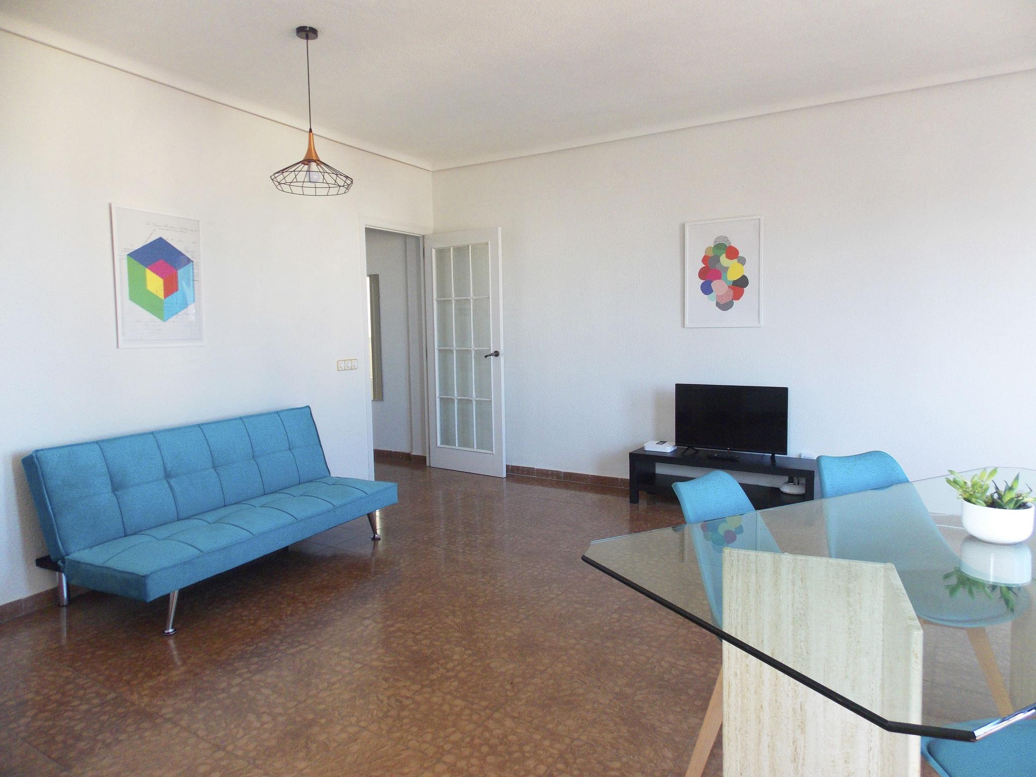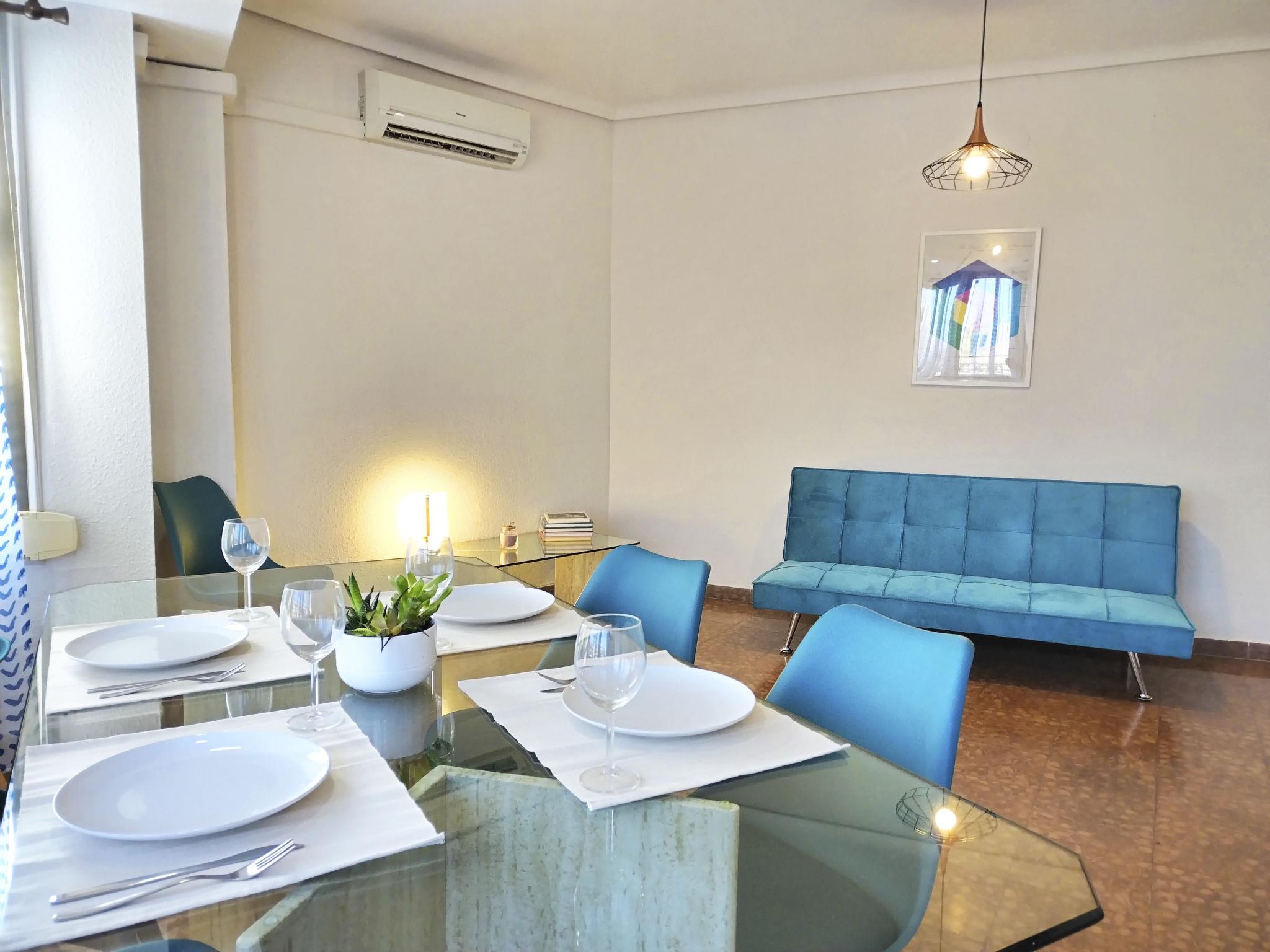 Apartment block. In the centre of Benicassim, in a busy, sunny position, 800 m from the beach. Public parking on the road. Supermarket 300 m, restaurant, bar, café 50 m, bus stop 200 m. Please note: no lift. The owner does not accept any youth groups. Neighbourhood highly sensitive to noise. Quietness and good behaviour expected.
