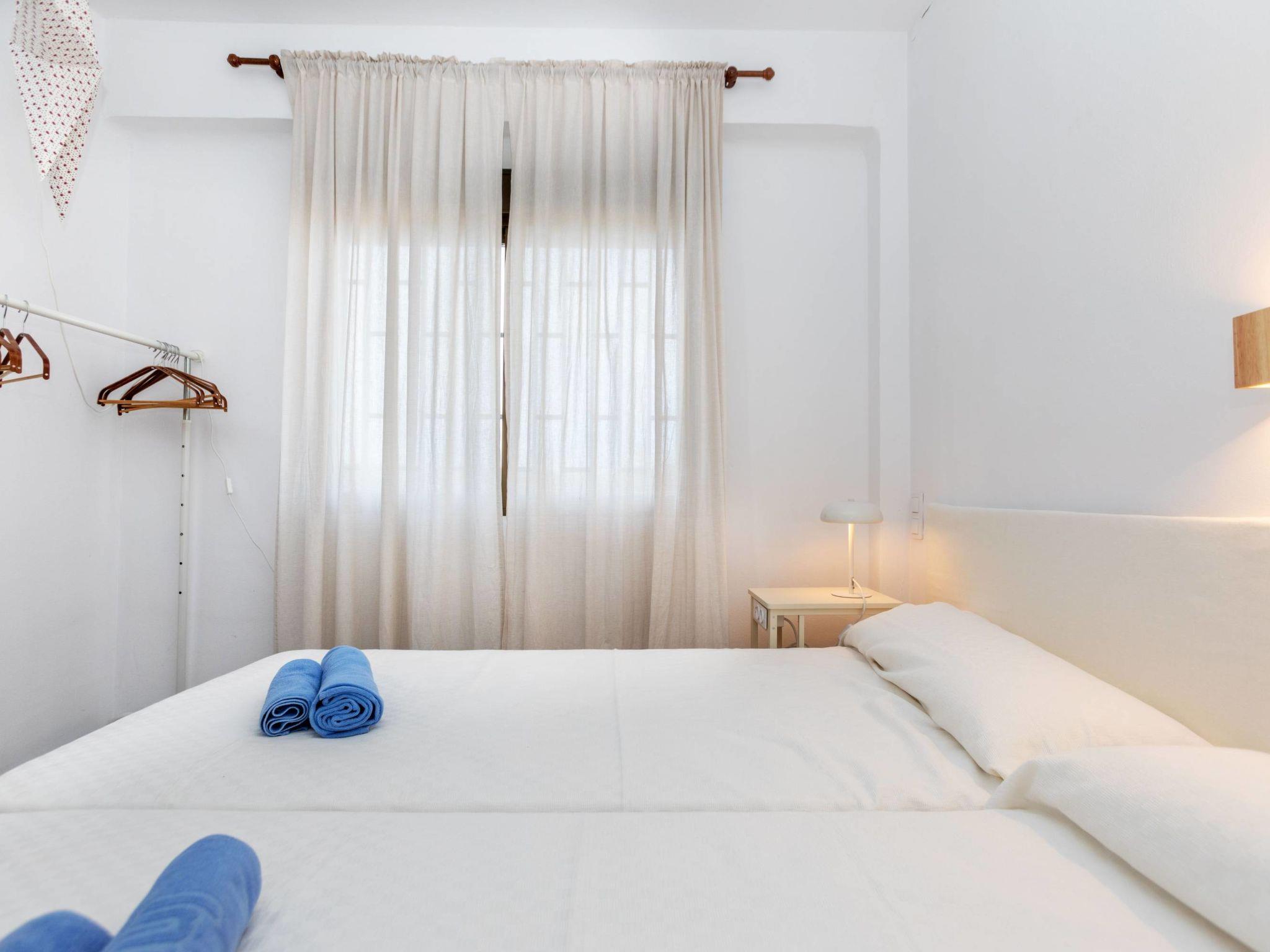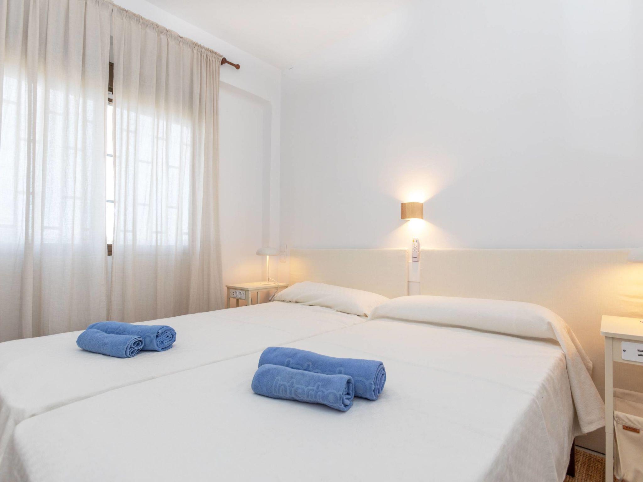 "Los Rosales", 3-room apartment 56 m2 on 4th floor. Partly renovated in 2024, practical and comfortable furnishings: living/dining room with dining table, digital TV and fan. Exit to the terrace. 1 room with 2 beds (90 cm, length 190 cm), 1 double bed and fan with 1 x 2 bunk beds (90 cm, length 190 cm), fan. Kitchen (oven, 3 ceramic glass hob hotplates, toaster, kettle, microwave, electric coffee machine, Capsules for coffee machine (Senseo) extra) with boiler (45 litres). Shower/WC. Electric heating. Terrace. Terrace furniture. Marvellous view of the sea. Facilities: washing machine, iron, hair dryer. Internet (WiFi, free). Please note: non-smokers only. Beachfront. VT-46180-CS // Reg. Nr.: ESFCTU000012009000746500000000000000CV-VUT0046180-CS3