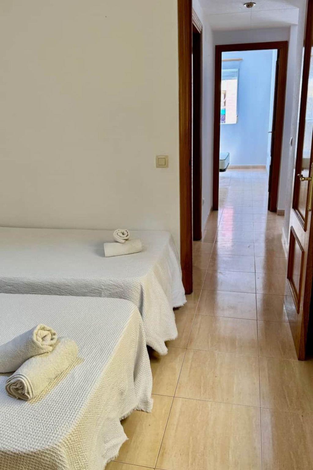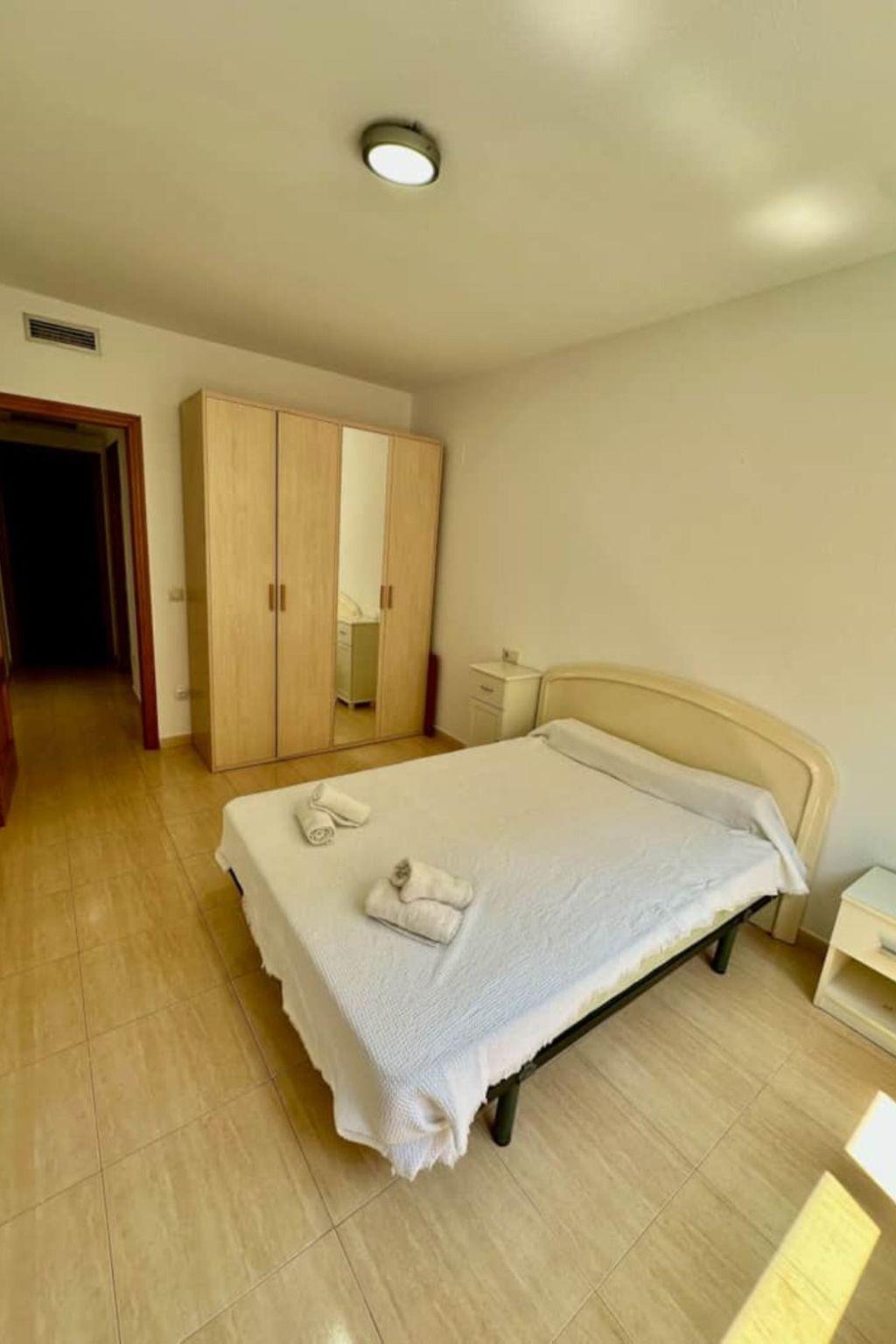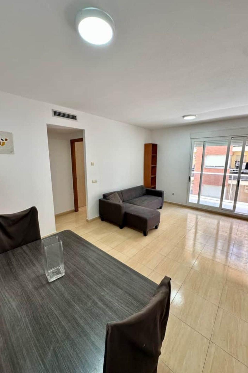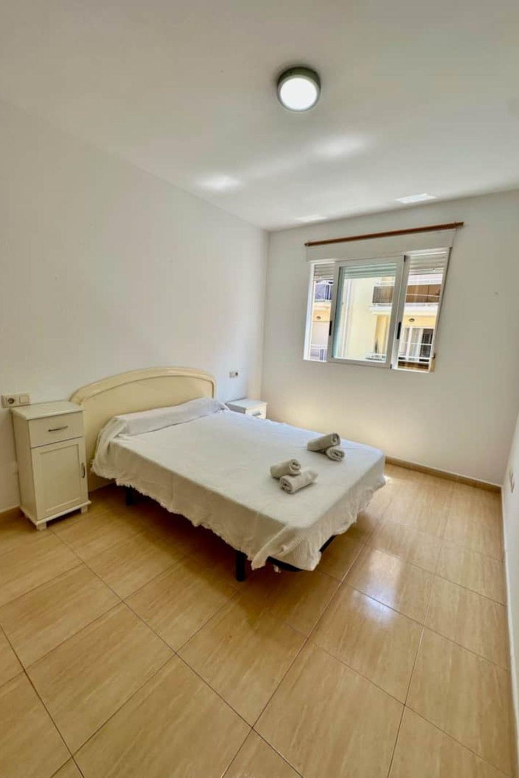 Flat Benicarlo REF 064. This flat has 2 bedrooms, 1 double bed and 2 singles, although there is the possibility of having 2 extra beds. It has portable air conditioning in the living room, TV in the living room, full kitchen and a nice long terrace. The beach is an 8 minute walk away.