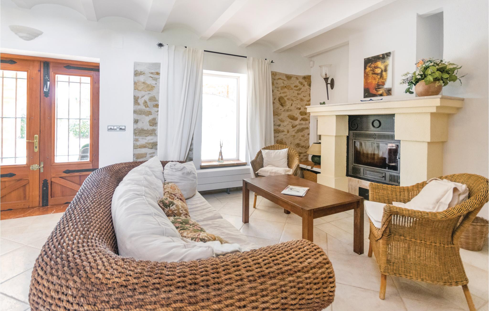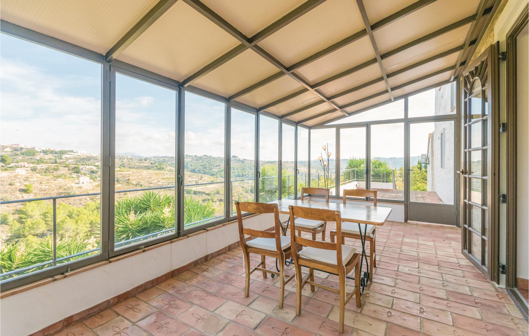 Dette fantastiske komfortable feriehus ligger lidt gemt i dalen, ikke langt fra den charmerende by Benissa, som er en af de ældste byer ved Costa Blanca. Vil I holde ferie i rolige og ugenerte omgivelser, hverken langt fra by eller strand, så er dette feriemål det helt rette. Der er kun 1,5 km til Benissa med mange restauranter, sandstranden 7 km og golfbanen 6,7 km. I huset er der tre store soveværelser og tre badeværelser der rummer op til seks gæster og et barn. Det skønne hus med dekorative rå stenvægge og trælofter, vil danne en unik base i ferien. Der er mange fine små deltaljer som medvirker til boligens charme. Hvad end det er det moderne og rummelige køkken eller den skønne stue og behagelige soveværelser, det hele er indrettet med høj kvalitet og god smag. Huset har både klimaanlæg og centralvarme og den skønne kamin gør huset oplagt til ferie året rundt. I huset er der både DVDafspiller og satellit kanaler. Når I nyder et godt glas rødvin på terrassen, kan I samtidig nyde udsigten over den skønne have og fra første sal er det muligt at skimte kysten. Den 50 m² store saltvandspool med seks solstole indbyder til afslapning og desuden er der en overdækket terrasse med grillplads og en høj grad af privatsfære. Perfekt til en dejlig dag med familie og venner der gerne vil spise godt. På grunden kan der parkeres fire biler og det er tilladt at medbringe to husdyr. Ungdomsgrupper er uønskede.