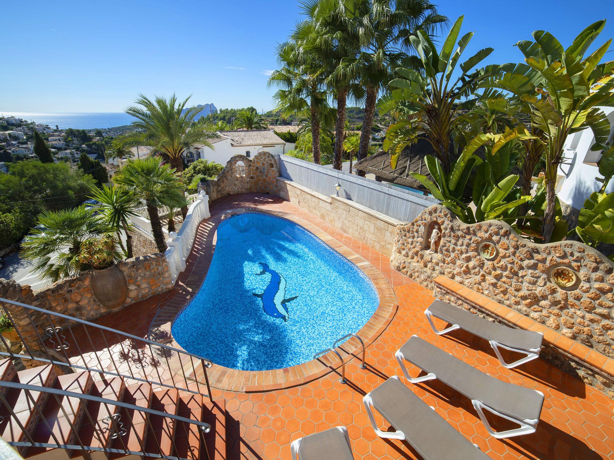 Benissa Costa: House "Roberto". 6.6 km from the centre of Moraira, 11.5 km from the centre of Calpe, in the district Montemar, in a quiet position, 3 km from the sea. Private: property 800 m2, swimming pool (8 x 4 m, seasonal availability: 01.Jan. - 31.Dec.). Terrace, garden furniture, barbecue. In the house: central heating system. Supermarket 1.2 km, restaurant, bar 500 m, bus stop 5.6 km, sandy beach 5.8 km, swimming bay 3 km. Nearby attractions: Aqualandia, Mundomar, Terra Mítica, Terra Natura, y Benidorm Palace (Benidorm). Access to the property via a slightly steep staircase from the garden.