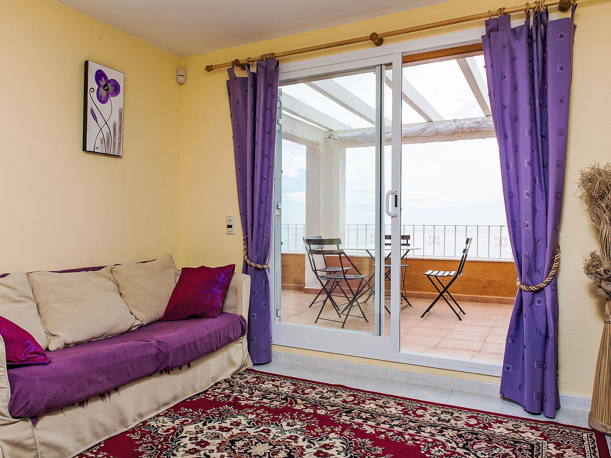 "Vista Mar", 3-room apartment 70 m2. Bright, comfortable and beautiful furnishings: living/dining room with satellite TV, hi-fi system and air conditioning. Exit to the terrace. 1 room with 1 french bed (2 x 140 cm), air conditioning. 1 room with 2 beds and air conditioning. Open kitchen (oven, 4 ceramic glass hob hotplates, microwave, freezer). Bath/bidet/WC. No heating option. Large terrace 20 m2. Terrace furniture, deck chairs (2). Marvellous panoramic view of the sea and the countryside. Facilities: washing machine. Please note: non-smoking house. AT-446956-A // Reg. Nr.: ESFCTU00000303800005072200000000000000000AT-446956-A4