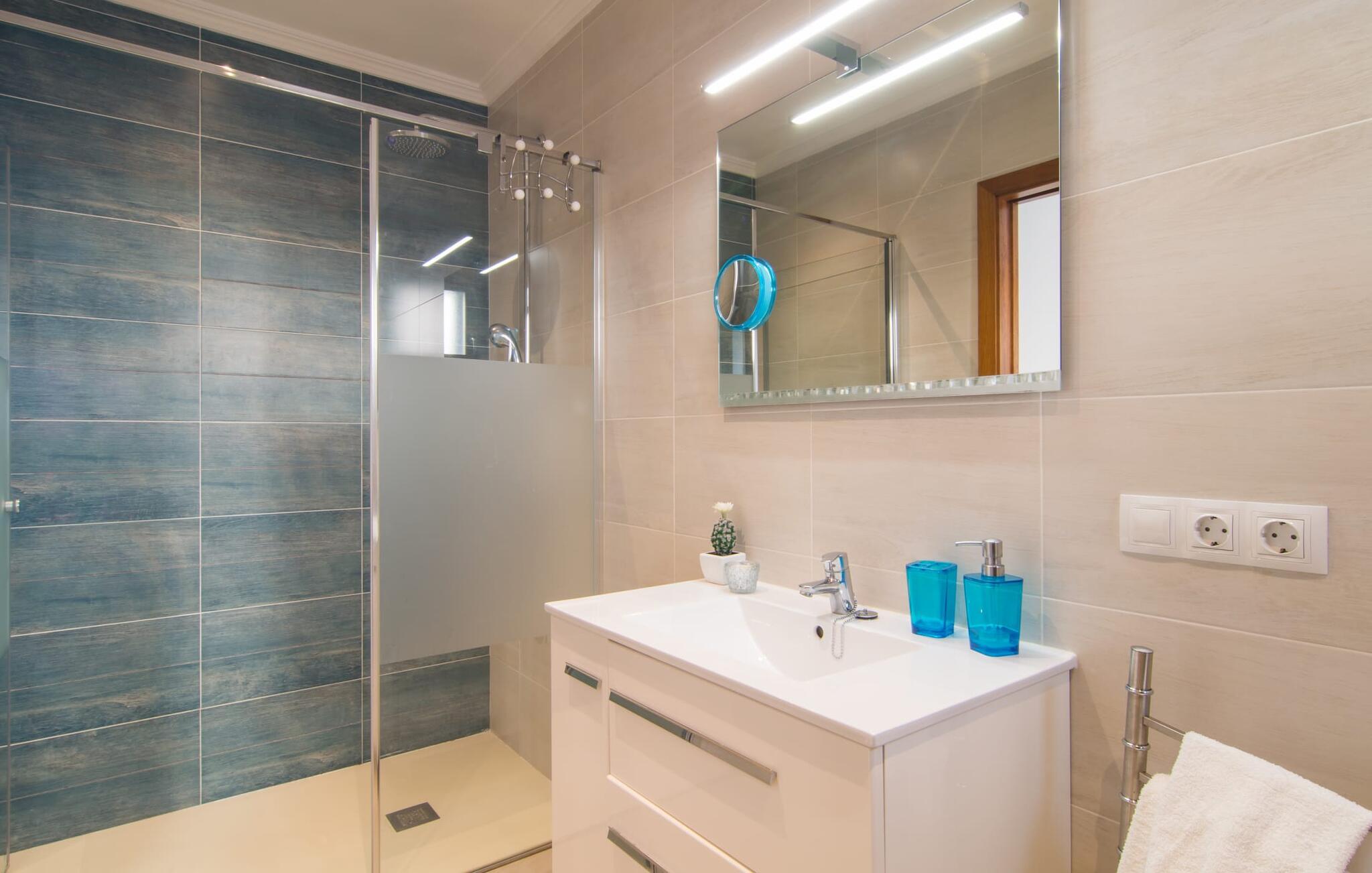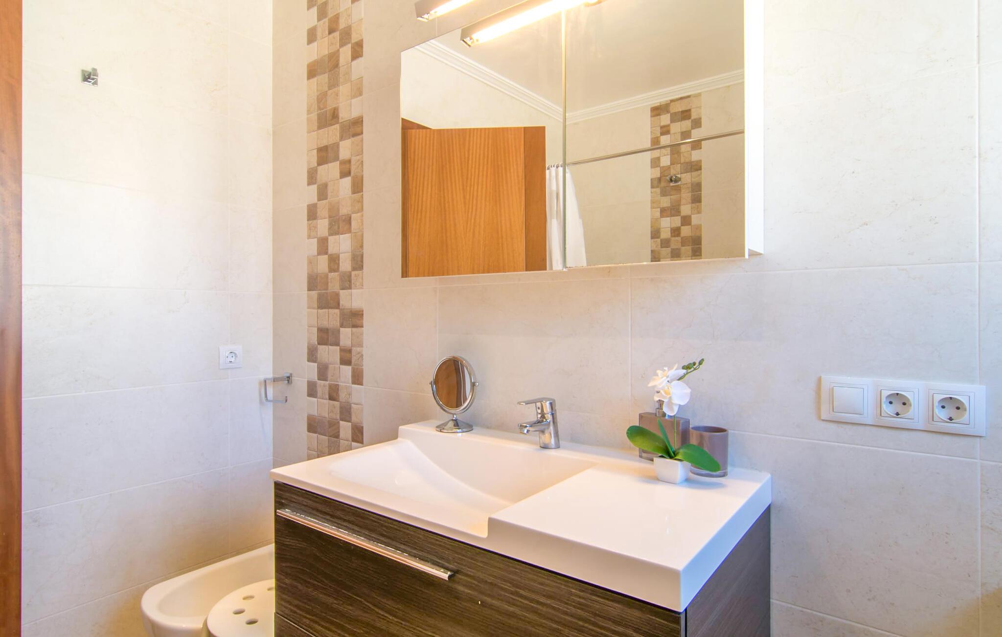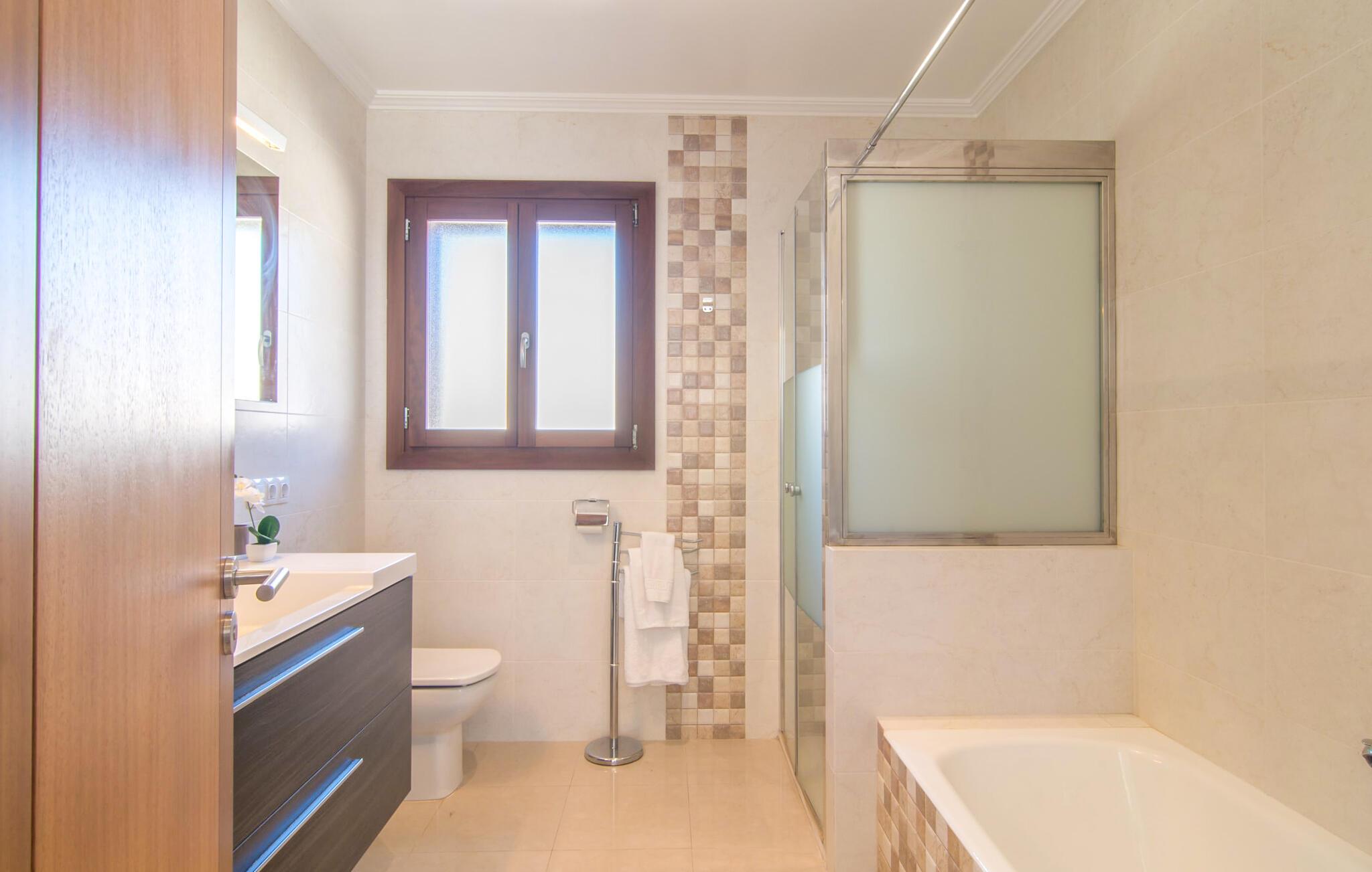 Leder I efter kærlighed ved første blik? Det moderne rækkehus "Biali" er kærlighed ved første blik. Fra tagterrassen kan I nyde det store, grønne nordlige mallorcanske landskab med palmer og olivenlunde helt til Tramuntana-bjergenes vilde bakker. For at I kan nyde jeres liv udendørs i fulde drag, er der to tagterrasser til jeres rådighed. Den ene er udstyret med et spisebord til middag sammen, den anden er en etage oppe, så I kan se på stjernerne i loungehjørnet om natten. Den første tagterrasse ligger kun få skridt fra indersiden af villaen. Spise- og opholdsområdet er i åbent plan og fremstår moderne og luftigt takket være de to døre, der lukker masser af lys ind og de hvide vægge. Det rustikke trækøkken i et separat rum har et stort amerikansk køleskab, så I har plads nok til at opbevare jeres lækkerier fra det ugentlige marked. Dobbeltværelset er en lille hyggelig hule med et stort klædeskab, hvor I nemt kan opbevare jeres tøj. På samme etage er der badeværelse med stenfliser og rummelig bruseniche med glasvægge. En trappe fører op til en anden etage. Der er også plads til en lille stue, hvor I kan nyde en bog i en lænestol. Der er også yderligere soveværelser på denne etage, som imponerer med den typiske mallorcanske flair i deres træskodder. Kommoder giver tilstrækkelig opbevaringsplads. Farverne er velkoordinerede og moderne. Den tidligere bondeby Búger, hvor rækkehuset ligger, er blevet bygget på, men har stadig bevaret meget af sin oprindelige charme. Den rolige beliggenhed mellem Inca og Alcúdia er ideel til lange vandreture. Den brostensbelagte gade fører forbi huset og er udgangspunktet for jeres ferieaktiviteter. Lige bagved den lille ferieby ligger Tramuntana-bjergene, som I også kan bestige på cykel. I vil blive fortryllet af rustikke vindmøller samt statelige palæer, der er gennemsyret af historie. De let skrånende sandstrande i Alcúdia, som ligger omkring 19 km væk, inviterer jer til at gå en tur på stranden. Ligeledes ligger Playa de Muro praktisk talt for jeres fødder med en fortryllende 6 kilometer lang strand. En gåtur gennem et af de nærliggende ugentlige markeder vækker jeres sanser og jeres opdagelsesånd. Hvis I ikke har fået nok, kan I opdage nye mode- og livsstilstrends i øens hovedstad Palma, mindre end en times kørsel væk. Búger var i lang tid en charmerende bondeby. I dag er det en idyllisk by med typiske mallorcanske huse lavet af natursten. Udsigten over Tramuntana-bjergene er en fryd for øjet. Landskabet på den nordlige del af øen er præget af appelsinmarker, olivenlunde og vinmarker. De fantastiske sandstrande i området, herunder Alcúdia-bugten, kan hurtigt nås.