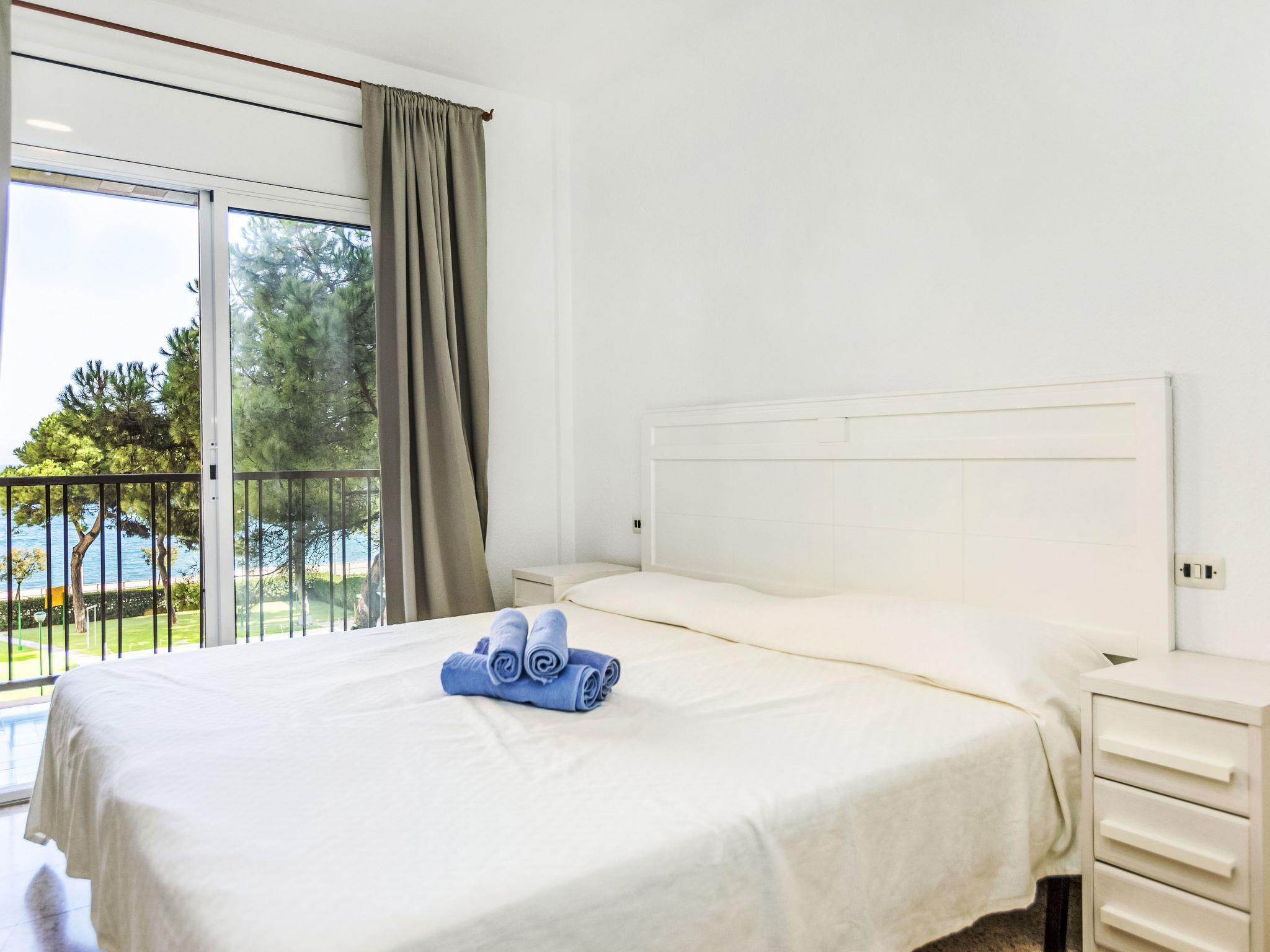 Platja s'Abanell 1 km from Blanes: Apartment block "Olivier", 10 storeys. In the resort 2 km from the centre of Blanes, 70 m from the sea. For shared use: garden 1'000 m2 (fenced) lawn, swimming pool angular (25 x 12 m, depth 70 - 230 cm, seasonal availability: 15.Jun. - 30.Sep. pool opening hours: 10:00-21:00) with internal staircase. Children's pool. In the house: lift. Stepped path (8 steps) to the house. Roofed, parking space n 46. Parking space or garage only for small to medium-sized cars. Dimension: height 240 cm width 600 cm. Grocery 10 m, supermarket 200 m, restaurant, sandy beach 70 m. Golf course 21 km. Telephone with meter in the hallway. Interphone.