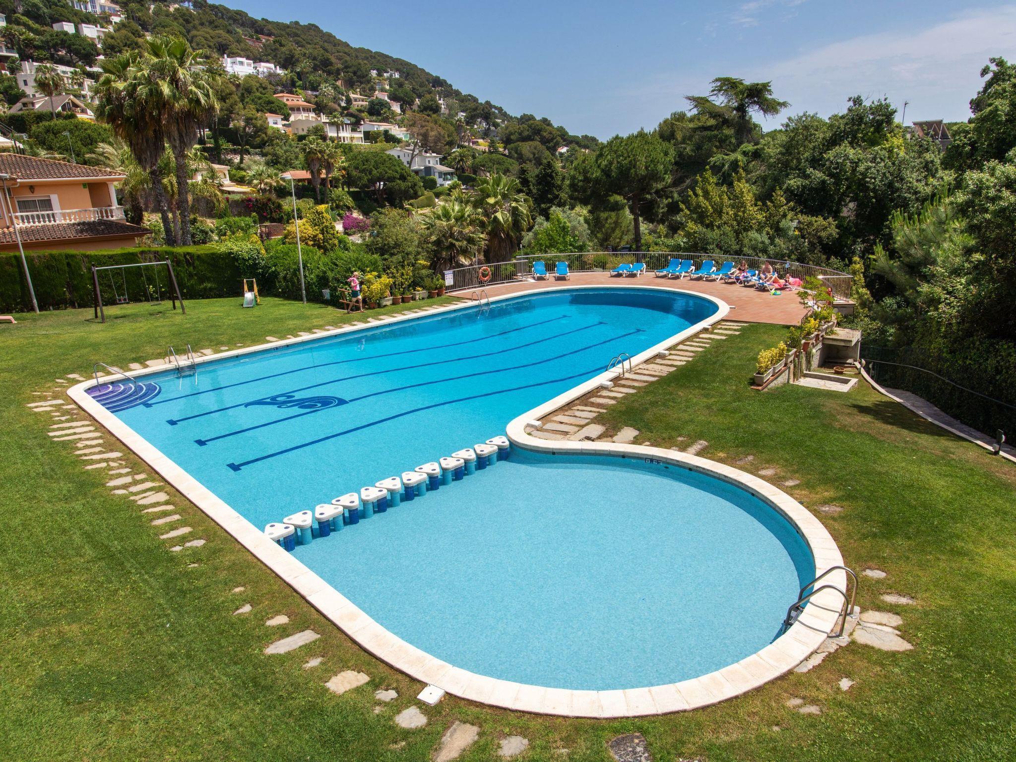 Cala Sant Francesc 2 km from Blanes Centro: Beautiful, comfortable apartment block "Cala Bona", surrounded by trees. Outside the resort Blanes, in the district Cala Sant Francesc, in a quiet, sunny position, 30 m from the sea, from the beach, south-west facing position. For shared use: large garden with lawn, swimming pool angular (20 x 10 m, depth 70 - 240 cm, seasonal availability: 01.Jun. - 30.Oct. pool opening hours: 10:00-20:00). Shower/WC in the pool area, children's pool, outdoor shower, tennis (1 x hard court). In the complex: restaurant, bar. Carport. Restaurant, bar 20 m, railway station "Blanes" 2 km, sandy beach "Cala Sant Francesc" 30 m. Golf course 21 km. Nearby attractions: Marineland 3 km, Waterworld 6 km, Jardín Botánico Marimurtra 500 m, Jardín Botánico Pinya de Rosa 2 km. Please note: car recommended, no lift. Suitable for families. The owner does not accept any groups. The owner does not accept any youth groups. Loading and unloading of baggage is possible at the holiday house. Neighbourhood highly sensitive to noise. Quietness and good behaviour expected.