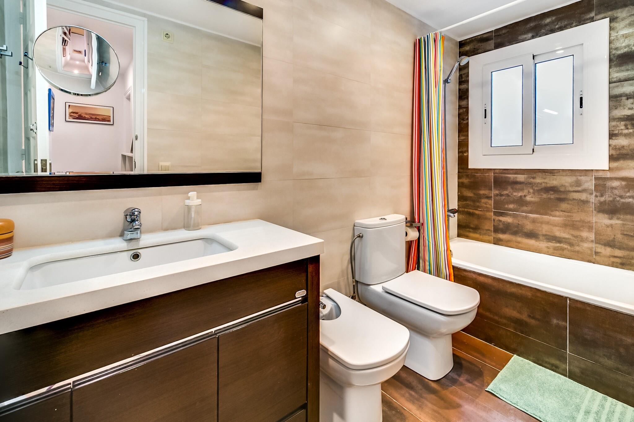Nyd et afslappende ophold i denne charmerende lejlighed med 3 soveværelser, perfekt beliggende kun få skridt fra stranden og den maleriske Blanes-promenade. Med en betagende udsigt over havet og havnen fra balkonen tilbyder dette tilflugtssted på anden sal de ideelle rammer for en kystferie. Alt hvad du behøver - butikker, restauranter, markeder og stranden - er inden for gåafstand, hvilket gør det til et bekvemt og livligt sted at bo. Lejligheden har komfortabel plads til op til 5 gæster og har et veludstyret køkken med moderne apparater, en lys stue med et hyggeligt siddeområde, tv med Chromecast og gratis Wi-Fi. Sovepladserne inkluderer et soveværelse med dobbeltseng, et værelse med to enkeltsenge og et enkeltværelse - perfekt til familier eller små grupper. Det nyrenoverede badeværelse har bruser og vaskemaskine for ekstra bekvemmelighed. Gæsterne kan nyde den berømte Blanes Internationale Fyrværkerikonkurrence om sommeren, udforske de nærliggende botaniske haver eller tage dagsture til Girona og Barcelona. Bemærk venligst, at lejligheden ligger på anden sal uden elevator, og kæledyr op til 10 kg er velkomne mod et mindre gebyr. Der er offentlig parkering i nærheden, og indtjekningsmulighederne er fleksible, så de passer til dine rejseplaner.