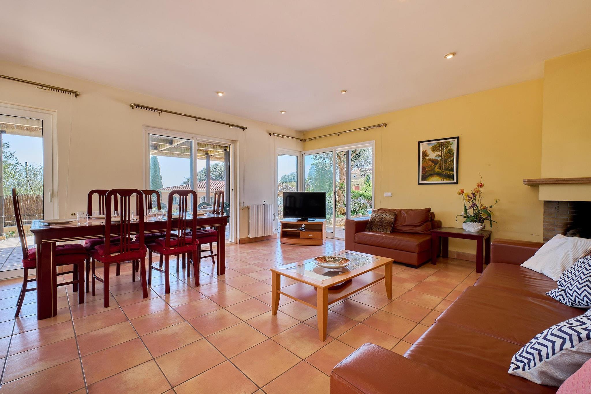 Oplev den typiske Costa Brava-livsstil i denne 300 m² store villa, der ligger i den charmerende kystby Blanes. Beliggende på en generøs 900 m² indhegnet grund, tilbyder denne ejendom masser af plads og privatliv til grupper på op til ti gæster. Hjertet i hjemmet er den rummelige stue med en hyggelig pejs og et separat siddeområde, der er perfekt til aftenafslapning. Uanset om du er vært for en stor familiemiddag ved spisebordet eller nyder en filmaften, tilbyder villaen en varm og indbydende atmosfære. Udendørsområdet er et privat fristed designet til middelhavssolen. Det har en privat swimmingpool omgivet af en frodig have og en rummelig terrasse udstyret med havemøbler. Det er det ideelle sted til spisning under åben himmel eller blot afslapning ved vandet. Indenfor er villaen omhyggeligt designet med fem soveværelser og fem badeværelser, hvilket giver stor bekvemmelighed for store grupper. Køkkenet er fuldt udstyret med moderne faciliteter, herunder opvaskemaskine, ovn og mikrobølgeovn, hvilket sikrer, at det er en leg at tilberede måltider for grupper. Beliggende i et roligt boligområde i Blanes er du perfekt placeret til at udforske "porten til Costa Brava". Fra de berømte botaniske haver til de brede sandstrande og den pulserende lokale havn er alt, hvad denne historiske kystby har at byde på, inden for rækkevidde. Med parkering på stedet, vaskerifaciliteter og et fuldt lukket område tilbyder denne villa en sikker, komfortabel og majestætisk base for en uforglemmelig spansk ferie.
