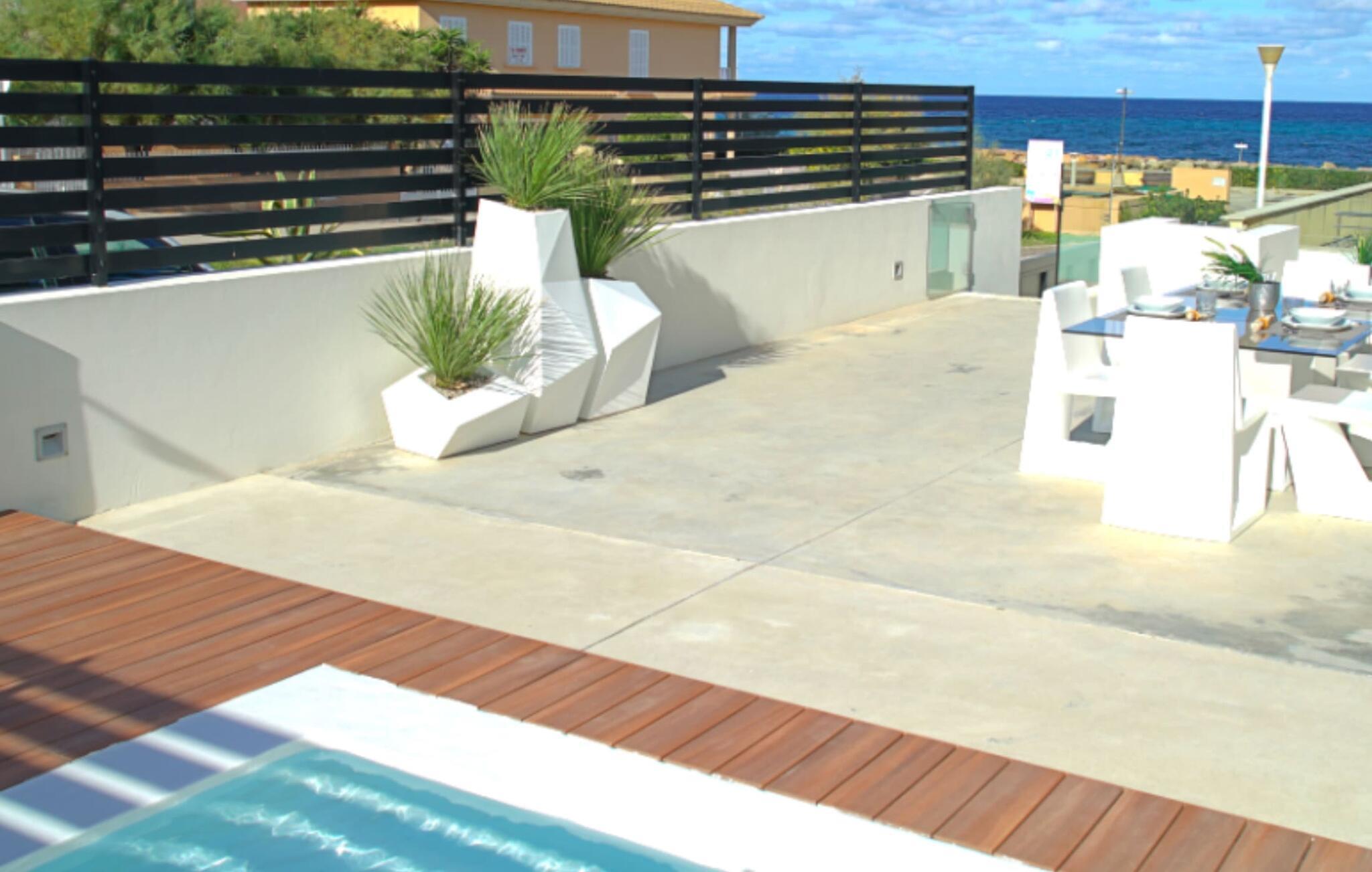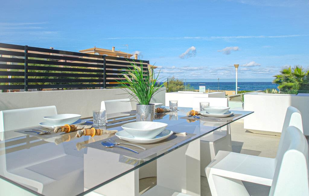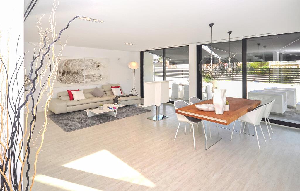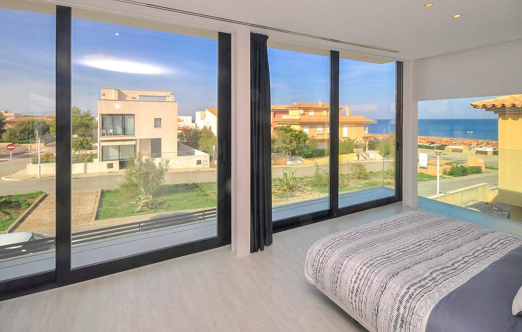 Mens nogle er opsatte på at opleve livet i en århundreder gammel klassisk villa, sætter andre pris på fordelene ved en moderne bygning – især når den bygning er en stilfuld villa som Blaveta, der er et hit alene på grund af beliggenheden. Beliggende kun 100 m i luftlinje fra havet, er den en sand perle, da dens lyse hvide ansigt faktisk ser ud til at konkurrere med den "azurblå" på middelhavshimlen. Den kantede bygning er omgivet af 320 velholdte kvadratmeter, perfekt til afkøling udenfor. Et smukt bord med glasplade og abstrakte designstole inviterer jer til at nyde stilfuld spisning under åben himmel med udsigt over havet - ingen ekstraudstyr påkrævet. En markise giver skygge, hvis det er nødvendigt. Ved siden af inviterer de store lænestole til at sætte sig ned med en kølig drink eller slutte dagen af på en stemningsfuld måde. Selvom stranden er næsten lige foran huset og ville være ideel til svømning, er der et andet attraktivt alternativ: Den 5 m lange pool på stedet inviterer jer også til at tage en forfriskende svømmetur. Og der er intet bedre sted at slappe af end den smagfulde liggestol med parasol. Eller findes det? Kun få skridt væk venter de smarte indendørsmøbler på, at I kan slappe af. Dets minimalistiske design og den æstetiske brug af farver giver husets indre en særlig æstetisk atmosfære. Stuen, med sine glasdøre, der fører ud til terrassen, har en næsten hemsagtig følelse og giver masser af plads til at trække vejret. Føl jer godt tilpas i den eksklusive sofa, nyd en film på fladskærms-tv'et, som er fritstående, men diskret, og nyd lyset, der kommer ind gennem glastrappen til højre. Spisebordet står lige ved siden af; Med sin originale træbordplade og overdådige naturfiber-globelys er den lige meget med en udendørs spiseplads, med den ekstra fordel, at den ikke er langt væk fra det integrerede, avancerede køkken med alt det moderne. fornødenheder. Kunne I tænke jer at arbejde under jeres ophold? Gå derefter ovenpå til det specialdesignede kontor, som tilbyder jer et helt roligt sted at få udført jeres arbejde. De egentlige hvilesteder er naturligvis de tre dobbeltværelser, alle smagfuldt indrettede og det ene har endda åbent badeværelse. Fire badeværelser sørger for, at ingen skal vente på deres tur – og har I lyst til at træne i fitnesscenteret i stueetagen, er der endda et privat gæstetoilet lige ved siden af. Son Serra de Marina er en stille lille by med kun omkring 1.000 indbyggere. Det består mest af enfamiliehuse, en lille købmand, et bageri, et apotek, flere gode restauranter og masser af fred og ro. Følger I hovedvejen fra indgangen til byen til havet, finder I en lille lystbådehavn på venstre hånd. Sandstrandene begynder der; Til at begynde med strøet med sten bliver de mere jævne og når næsten til den anden ende af byen. Her er et insider-tip til Son Serra de Marina: Besøg strandbaren El Sol – det føles næsten som om I virkelig er i Caribien! Hvis I er interesseret i kulturelle og historiske steder, bør I helt sikkert besøge Necropolis of Son Real. Den moderne og stilfulde villa "Blaveta" ligger direkte ved havet på en privat 320 m² stor grund i den lille kystby Son Serra de Marina. Her er de smukkeste strande i Alcúdia-bugten lige uden for døren; Det næsten to kilometer lange sandområde i retning mod Colònia de Sant Pere byder på plads nok til alle. Der er flere indbydende og rimelige restauranter i området.