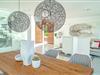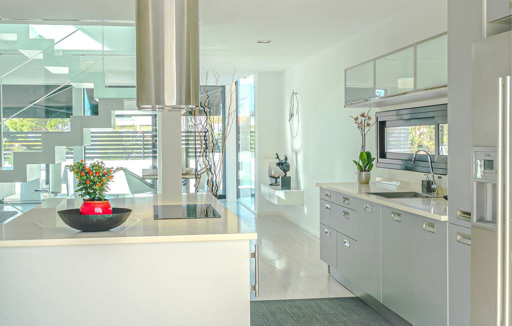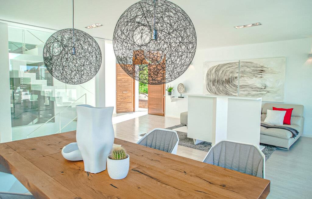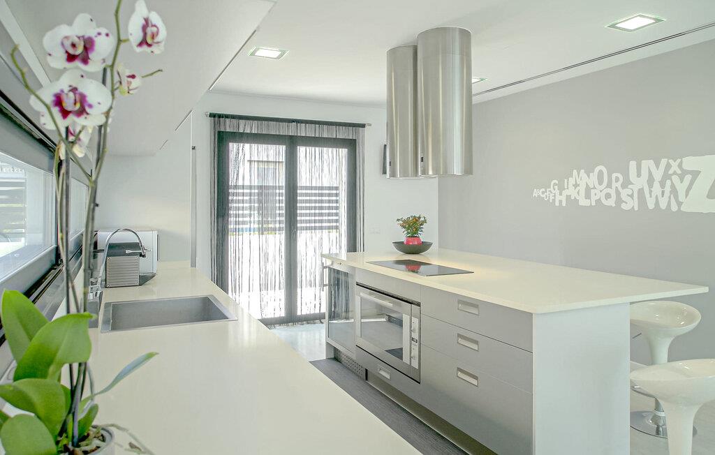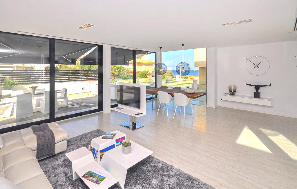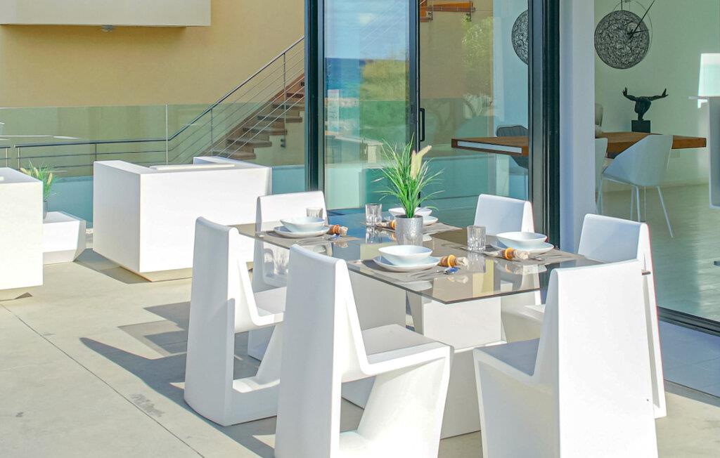 Mens nogle er opsatte på at opleve livet i en århundreder gammel klassisk villa, sætter andre pris på fordelene ved en moderne bygning – især når den bygning er en stilfuld villa som Blaveta, der er et hit alene på grund af beliggenheden. Beliggende kun 100 m i luftlinje fra havet, er den en sand perle, da dens lyse hvide ansigt faktisk ser ud til at konkurrere med den "azurblå" på middelhavshimlen. Den kantede bygning er omgivet af 320 velholdte kvadratmeter, perfekt til afkøling udenfor. Et smukt bord med glasplade og abstrakte designstole inviterer jer til at nyde stilfuld spisning under åben himmel med udsigt over havet - ingen ekstraudstyr påkrævet. En markise giver skygge, hvis det er nødvendigt. Ved siden af inviterer de store lænestole til at sætte sig ned med en kølig drink eller slutte dagen af på en stemningsfuld måde. Selvom stranden er næsten lige foran huset og ville være ideel til svømning, er der et andet attraktivt alternativ: Den 5 m lange pool på stedet inviterer jer også til at tage en forfriskende svømmetur. Og der er intet bedre sted at slappe af end den smagfulde liggestol med parasol. Eller findes det? Kun få skridt væk venter de smarte indendørsmøbler på, at I kan slappe af. Dets minimalistiske design og den æstetiske brug af farver giver husets indre en særlig æstetisk atmosfære. Stuen, med sine glasdøre, der fører ud til terrassen, har en næsten hemsagtig følelse og giver masser af plads til at trække vejret. Føl jer godt tilpas i den eksklusive sofa, nyd en film på fladskærms-tv'et, som er fritstående, men diskret, og nyd lyset, der kommer ind gennem glastrappen til højre. Spisebordet står lige ved siden af; Med sin originale træbordplade og overdådige naturfiber-globelys er den lige meget med en udendørs spiseplads, med den ekstra fordel, at den ikke er langt væk fra det integrerede, avancerede køkken med alt det moderne. fornødenheder. Kunne I tænke jer at arbejde under jeres ophold? Gå derefter ovenpå til det specialdesignede kontor, som tilbyder jer et helt roligt sted at få udført jeres arbejde. De egentlige hvilesteder er naturligvis de tre dobbeltværelser, alle smagfuldt indrettede og det ene har endda åbent badeværelse. Fire badeværelser sørger for, at ingen skal vente på deres tur – og har I lyst til at træne i fitnesscenteret i stueetagen, er der endda et privat gæstetoilet lige ved siden af. Son Serra de Marina er en stille lille by med kun omkring 1.000 indbyggere. Det består mest af enfamiliehuse, en lille købmand, et bageri, et apotek, flere gode restauranter og masser af fred og ro. Følger I hovedvejen fra indgangen til byen til havet, finder I en lille lystbådehavn på venstre hånd. Sandstrandene begynder der; Til at begynde med strøet med sten bliver de mere jævne og når næsten til den anden ende af byen. Her er et insider-tip til Son Serra de Marina: Besøg strandbaren El Sol – det føles næsten som om I virkelig er i Caribien! Hvis I er interesseret i kulturelle og historiske steder, bør I helt sikkert besøge Necropolis of Son Real. Den moderne og stilfulde villa "Blaveta" ligger direkte ved havet på en privat 320 m² stor grund i den lille kystby Son Serra de Marina. Her er de smukkeste strande i Alcúdia-bugten lige uden for døren; Det næsten to kilometer lange sandområde i retning mod Colònia de Sant Pere byder på plads nok til alle. Der er flere indbydende og rimelige restauranter i området.