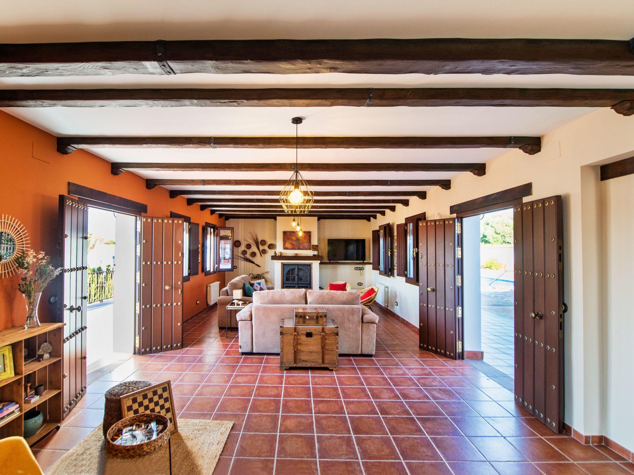 The house has capacity for 8 people, distributed in four double rooms, with the following facilities and services: - Spacious living room with wood-burning fireplace. - Fully equipped kitchen-dining room. - Four bedrooms with their own bathroom. One of them has a bathroom fully adapted for disabled people. - Central heating and air conditioning in every room. - Salt water swimming pool. - Barbecue and wood oven at the back of the house. A second barbecue with wood-burning cooker located in an open space at the front of the house. - Large terrace in front of the kitchen-dining room and living room with wonderful views. - Children's playground. - Football pitch. - Baby bath and high chair for children. - Vegetable garden. - Mobile phone coverage and Internet access via a Wifi network. - Change of bed linen and towels every 3 nights. - Pets allowed (dogs and cats only).