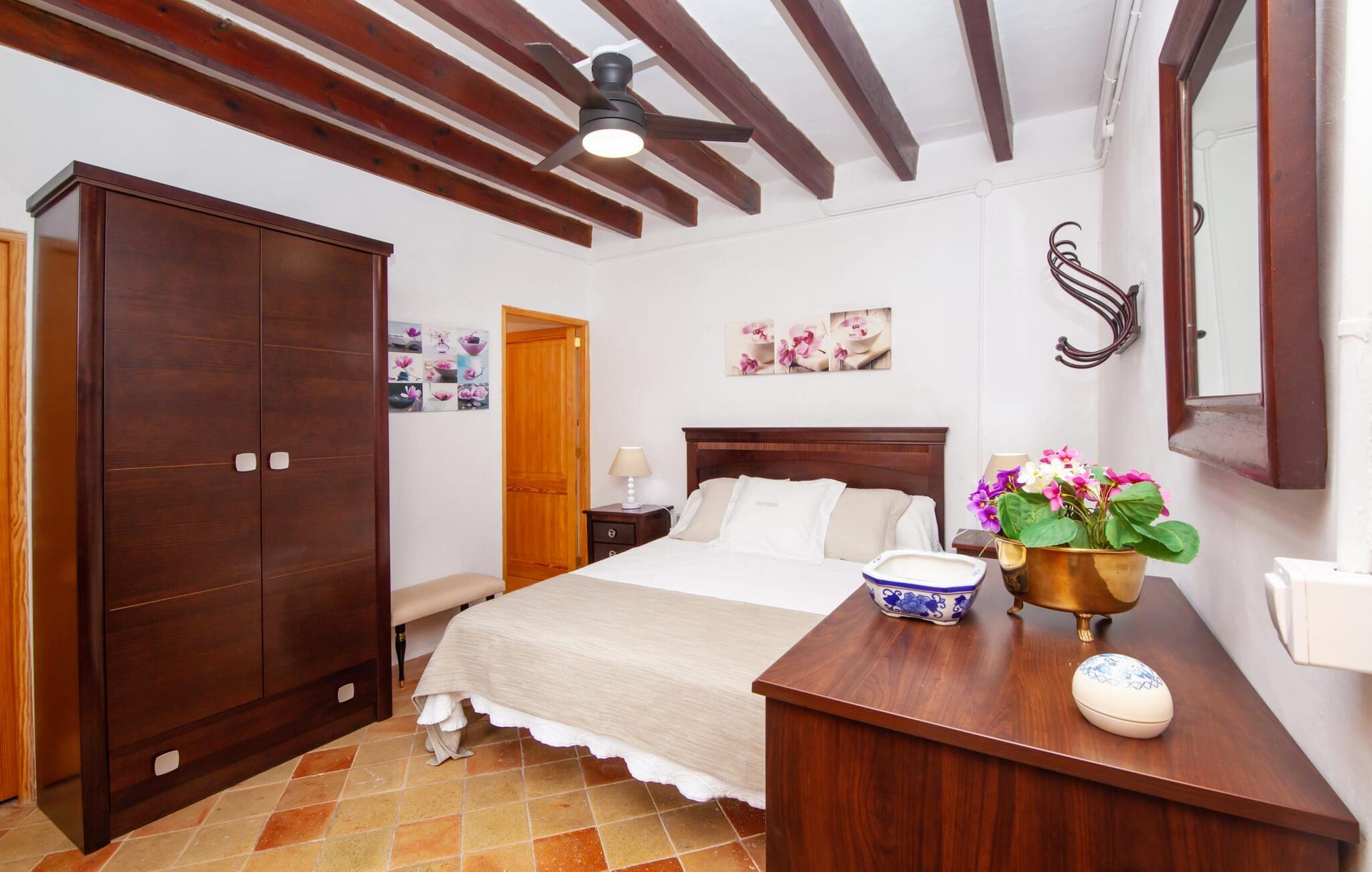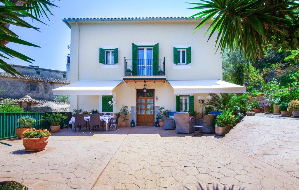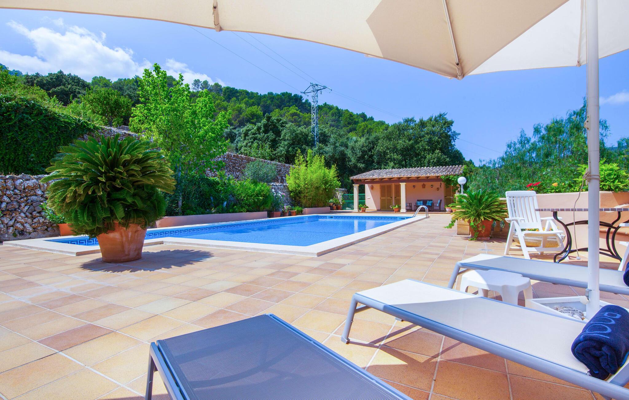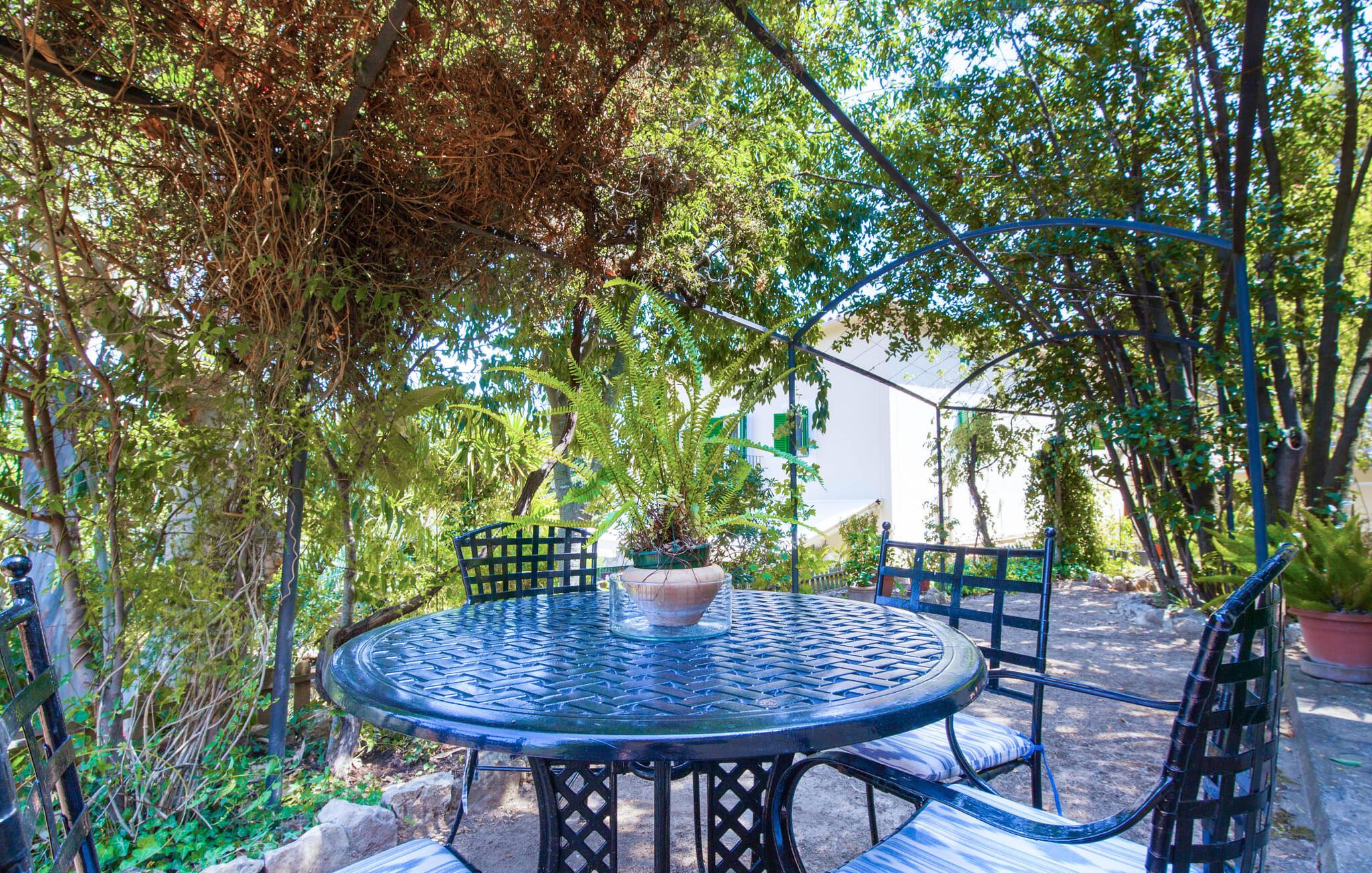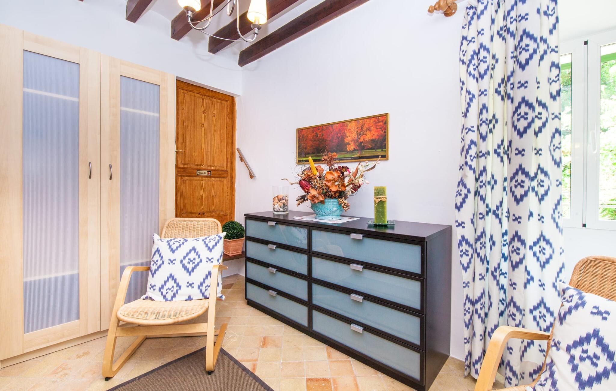 En sand sommerdrøm. Den solgule gamle bygning med hvide trim og æblegrønne skodder ser ud til at observere det afslappede liv i landsbyen Esporles. Det skyldes, at villaen ligger lidt over byen på en bjergskråning, hvilket giver jer en vidunderlig udsigt over den rolige by. Naturstensvægge blander sig i bjerget og skaber et smukt ensemble af terrasserede blomsterbede med frodige buske, buske og høje træer, herunder palmer. Poolen er skjult og skjult kun få meter fra huset. I kan nå det via en romantisk naturlig havesti. Der vil I finde en stor pool med et bugtende mosaikdesign og en omgivende solterrasse. Hvis I gerne vil slappe af på de komfortable liggestole efter en forfriskende svømmetur, er parasoller til rådighed. For enden af poolen er der et skyggefuldt område med en lounge - ideel til at læse en god bog. Det udendørs badeværelse gør det ekstra nemt at opholde sig udenfor hele dagen. Selve huset byder også på adskillige siddemuligheder med polyrattan-møbler og en spiseplads, der komplementerer murstensgrillen. I kan tilberede lækre BBQ-retter uden tidspres ved at bruge de aromatiske ingredienser, som den baleariske ø har at byde på. Det autentiske sommerhus formidler en følelse af mallorcansk ægthed ved at kombinere flair af et landsted med moderne standarder. Det gælder også indretningen, som består af komfortable siddepladser og træ med en varm farve. Dekorative gårdartikler og kærlige detaljer kendetegner den behagelige traditionelle flair. Stueetagen udgør det generelle opholdsrum med stue, stue og spisestue, badeværelse og køkken. Sidstnævnte er fuldt udstyret til jeres personlige komfort - og det lille siddeområde lavet af murstensbænke tilbyder et utroligt hyggeligt hjørne til at chatte med jeres medrejsende. Dette fører til en ubegrænset følelse af at bo og umiddelbar velvære, som også fortsætter i de tre soveværelser på øverste etage. Udover smukke sengerammer er der masser af opbevaringsplads til jeres feriegarderobe. Der er også to yderligere fuldt renoverede bruserum (et en-suite) til rådighed på dette niveau, så en familie eller en gruppe af venner ikke behøver at gå på kompromis. Der er meget mere at opdage på "C'an Pieres" - vi overlader resten til jer. En gotisk kirke, en landejendom med en naturlig kilde brugt som museum, en flod med talrige broer og utallige egeskove inviterer jer til at tage vandreskoene på. Dette er, hvad Esporles inkarnerer, og derfor er den indbydende villa det ideelle udgangspunkt, især for naturelskere, for at udforske Tramuntana-bjergene. Nogle gode restauranter og smukke butikker supplerer den gode infrastruktur. Takket være sin centrale beliggenhed tæt på landevejen, som kun er hørbar i en bestemt vindretning, kan I nå Valdemossa, kunstnerbyen Deià, og kysten med dens rolige havne og maleriske strande via en spektakulært smuk køretur gennem serpentine veje. Med alt, hvad det har at tilbyde, hjælper "C'an Pieres" jer gerne med at opleve skønheden og originaliteten på Mallorca i al dens mangfoldighed. Villaen "C'an Pieres" ligger midt i det romantiske, vilde bjerglandskab over den smukke bjerglandsby Esporles. Herfra kan I nyde en vidunderlig udsigt over bjergene og byen, som også er i gåafstand til jeres indkøb. Det kan selvfølgelig også lade sig gøre ved at besøge det ugentlige marked i det populære Valdemossa. Fantastiske badebugter som Port de Canonge eller Puta de sa Galera ligger 9 km derfra.
