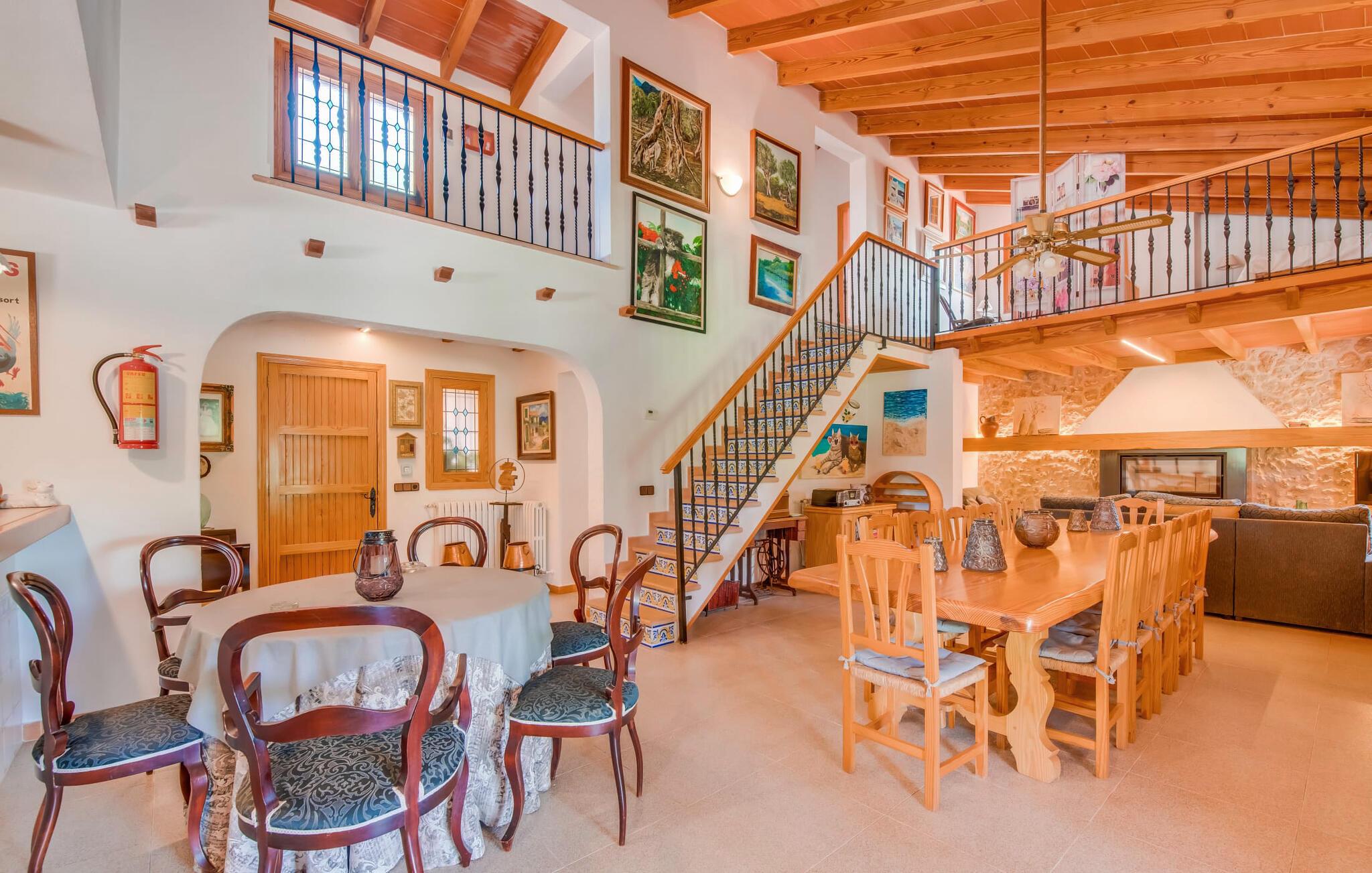 Ydersiden af villaen "Ca Na Bisquerra" er malet med glat puds i en blød abrikos tone, har natursten fodpaneler og charmerende træskodder. Det blev bygget for blot et par år siden af sine nuværende ejere og er smukt indrettet både inde og ude. På trods af sin "ungdom" er villaen designet i en traditionel mallorcansk stil, som er ekstrem varm og hyggelig, og som i bund og grund er det ideelle sted for en familie eller en gruppe venner, der ønsker at holde ferie sammen. Den afsondrede villa er omgivet af smukt anlagte haver med masser af palmer, så I kan nyde de landlige omgivelser, som om det var jeres egen private 'ø', selvom der er andre villaer i området. En lille asfalteret gangsti fører fra huset gennem haven til det smukke poolområde. Poolen er dekoreret med bugtende mosaikfliser og er omgivet af en rummelig græsplæne med otte liggestole til afslapning. Om nødvendigt er der også tre parasoller til rådighed for at beskytte jer mod den varme middagssol. Lidt væk fra poolen, men også midt i den anlagte have, finder I det fuldt udstyrede, overdækkede udekøkken, som indeholder en åben pejsgrill og et langt spisebord; Dette er vores personlige favorit ved denne meget imponerende villa. Udover grillen har køkkenet også et komfur med gaskomfur, masser af skabe til opbevaring af udendørs redskaber og et stort køleskab til kølige drikkevarer. Denne separate struktur kan godt beskyttes mod sol og vind med lidt mere end et par tynde dekorative gardiner, som ikke kun ser meget slående ud, men også er utrolig praktisk. En herligt indbydende overdækket terrasse strækker sig langs husets forside med masser af forskellige siddemuligheder, enten ved et af bordene eller på havemøbler med muntre orange hynder - alt sammen i smart polyrattan og perfekt til afslapning og afslapning. Det, der er særligt imponerende ved indretningen, er den tilbagelænede, tilbagelænede atmosfære, som muliggøres af den store stue/spisestue i åbent plan i stueetagen med en trappe, der fører op til det åbne galleri og værelser på det øverste. etage. I stueetagen er der et komfortabelt sofasæt foran en åben pejs, hvor I kan tilbringe en afslappende aften foran fjernsynet. Lige ved siden af er der et stort spisebord, der giver mere end nok plads til alle, der rejser med jer. Køkkenområdet er visuelt adskilt fra resten af rummet af en lang bordplade med håndmalede fliser og et kraftigt trægulvbræt. Selv når I er på ferie, kan I nyde det fulde udvalg af faciliteter - inklusive en mikrobølgeovn, elkedel, kaffemaskine, gaskomfur og endda en opvaskemaskine - alle de faciliteter, I ønsker til den selvforsynende ferie, I har besluttet jer for. I stueetagen er der også to soveværelser og et komfortabelt badeværelse, som I kan dele. To yderligere soveværelser og to stilfulde badeværelser er placeret ovenpå bag det åbne galleriområde. De hyggelige værelser har synlige trælofter og masser af opbevaringsplads til det tøj, I medbringer eller tager med under jeres ophold. Alle badeværelser er behageligt indrettede i en moderne stil; To af dem har et badeværelse med brusearmatur og det tredje har en specialfremstillet indbygget bruser. På den gæstfri Villa Ca Na Bisquerra er alt praktisk og ukompliceret, præcis som I ønsker jeres ferie skal være, og denne beliggenhed byder på den ideelle stemning til sådan en oplevelse. En anden fordel ved villaen er dens imponerende beliggenhed - stille, men kun 150 m fra landevejen, der forbinder Can Picafort og Santa Margalida. Det betyder, at denne beliggenhed byder på både gode transportforbindelser og et stort potentiale for rekreation og afslapning. Der er kun 7 minutter i bil til Can Picafort og den nærmeste strand. De forskelligartede strande langs Alcúdia-bugten, herunder Platja de Muro, Can Picafort og de mere rolige strande mellem byerne, er hurtige og nemme at nå, hvis en dukkert i poolen ikke er nok, og I har lyst til en dejlig dag på stranden. I får sikkert lyst til at tage til Santa Margalida, hvis I er interesseret i at se en af øens smukkeste landsbyer og opleve det "rigtige" Mallorcas autentiske karakter. Og nu ønsker vi hos Fincallorca jer en skøn ferie i den stærkt anbefalede villa “Ca Na Bisquerra” – ikke mindst på grund af den utroligt gode pris, vi kan tilbyde denne lejevilla til. Den traditionelle villa "Ca Na Bisquerra" ligger i det smukke landskab mellem de charmerende små byer Santa Margalida og Can Picafort. I kan tage til begge byer for at købe dagligvarer og andre daglige fornødenheder, og hver by er vært for et landmandsmarked på forskellige dage i ugen. Alcúdia-bugten med flere sammenhængende kilometer sandstrande ligger kun 5 km væk i bil.