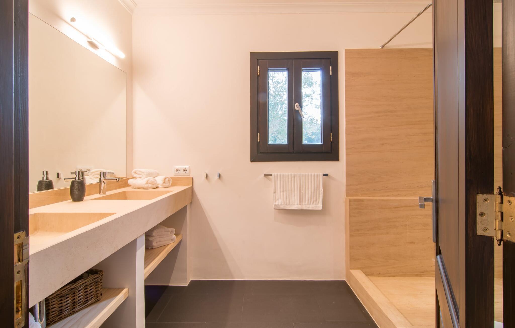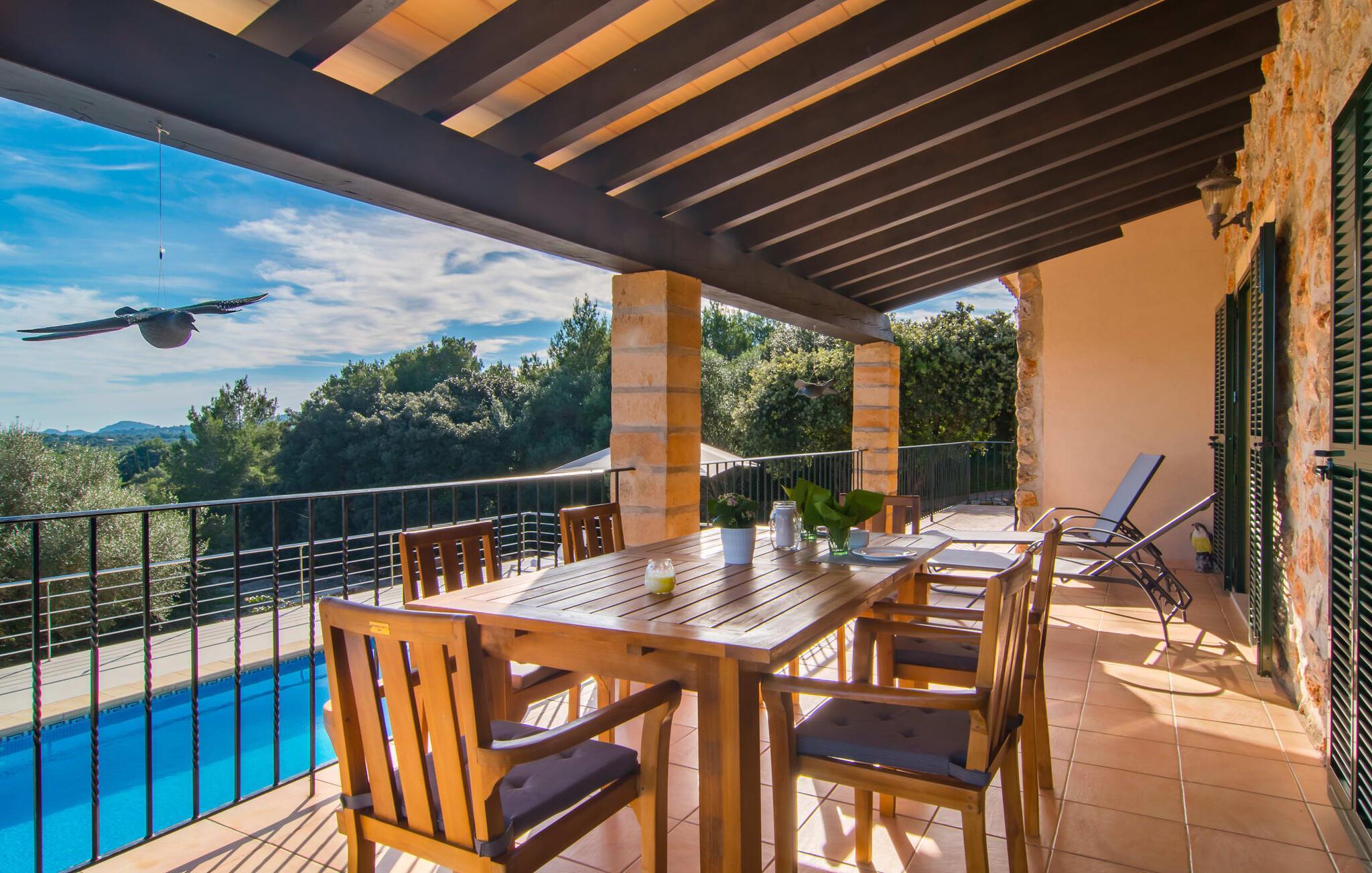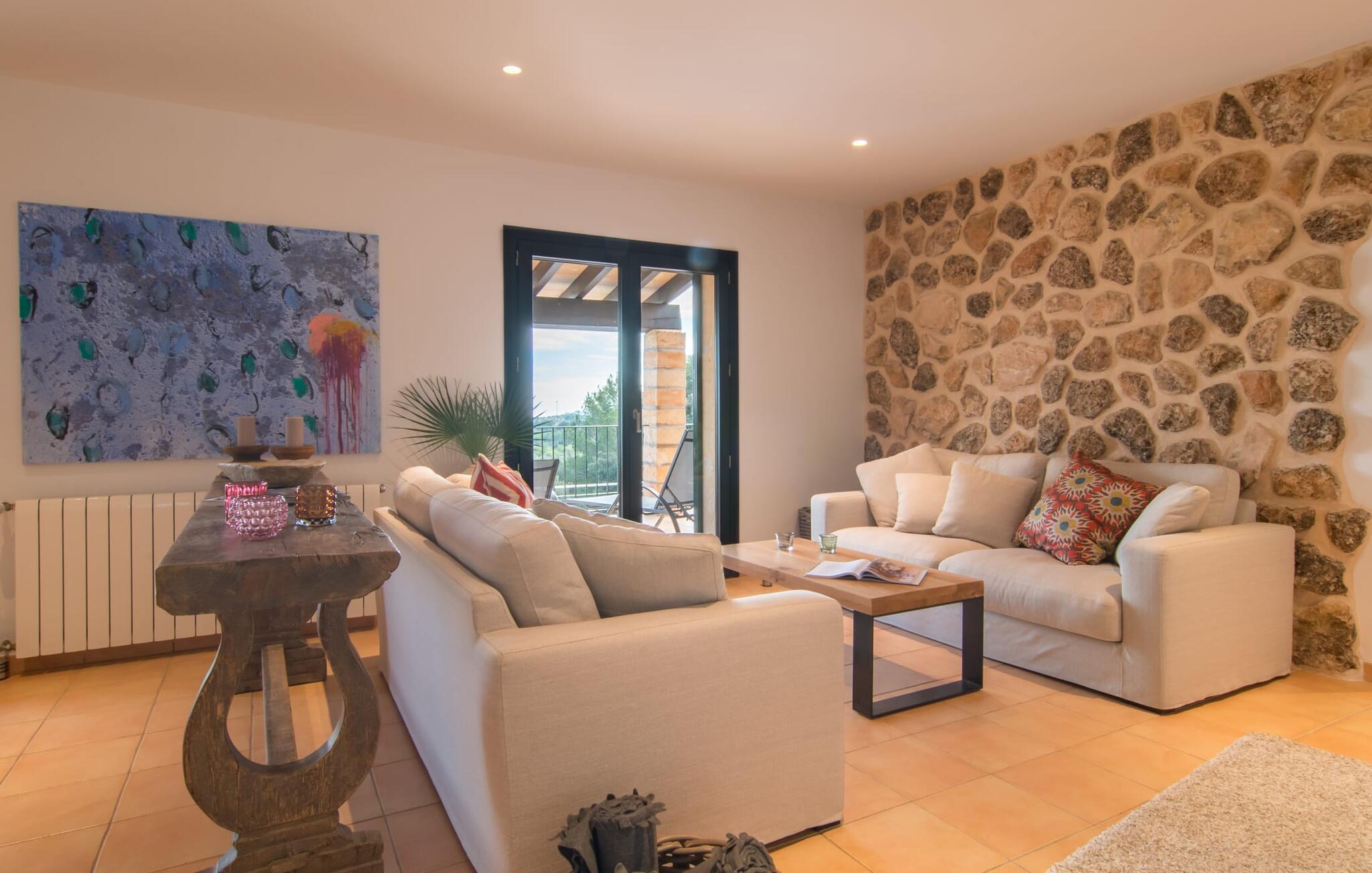 Hvor givende det er at ændre dit perspektiv nu og da. Villa "Ca Na Cristina de Carrossa" gør dette virkelig nemt! Højt beliggende på den østlige del af øen knejser huset, delvist beklædt med stenbrud, op over lokalområdets let bakkede landskab, uhøjtideligt, men stadig omgivet af en ædel charme. Yndlingssteder er lette at finde her – for eksempel lige ved siden af rækværket ved poolen, hvor udsigten kan vandre i det fjerne. Og mens du er i gang, kan du nyde din yndlings kolde drink eller fordybe dig i den bog, du har tænkt dig at læse i evigheder. Vand kærtegner din hud, når du af og til glider over hjørnetrinene ned i poolen og nyder denne helt specielle badeoplevelse, helt indlejret i den omkringliggende natur. På et tidspunkt bliver du uundgåeligt sulten, og du bliver glad for at sætte dig ved det overdækkede spisebord, som er et par trin oppe direkte fra huset og giver mulighed for korte afstande mellem indendørs og udendørs arealer. Nyd at tilberede friske delikatesser på grillen, der er ingen grænser for din fantasi! Villaens interiør, som er udstyret med aircondition og varme, udstråler også en usædvanlig venlig atmosfære. Æstetikken er i fokus her, og beskueren føler en harmonisk energi af møbler, tekstiler og dekorative elementer: Naturstenselementer komplementerer hvide vægge og indgangsbuer af sandsten, spotlights integreret i loftsbjælkerne konkurrerer med det naturlige dagslys om belysning i rummene. terracotta fliser harmonerer perfekt med stilfuldt brugt træ. Farverig vægkunst komplementerer disse elementer perfekt. I stueetagen er der den indbydende stue/spisestue med pejs og direkte adgang til terrassen, det fuldt udstyret køkken med opbevaringsrum, et badeværelse og to soveværelser med dobbeltsenge, mens det tredje soveværelse og et privat badeværelse er placeret på øverste etage. . Suite badeværelse. Disse værelser nyder også godt af masser af lys og smagfuldt design. Et hus, hvor du virkelig kan føle dig hjemme! Forskellige naturlige sandstrande kan nemt nås i bil fra villaen. På grund af de fremragende transportforbindelser kan trafikstøj høres i det fjerne, afhængigt af vindretningen. Hvis du leder efter noget andet, kan du for eksempel tage en tur til centrum af Son Servera. Et ugentligt marked finder sted her hver fredag. Udover kulinariske specialiteter fra regionen finder du smukke mallorcanske kunsthåndværk. Om aftenen bør du ikke gå glip af at slentre gennem Artàs oplyste gader. Under en gåtur kan du bestige Golgata og kirken Santuari de Sant Salvador. Fire golfbaner ligger kun få minutters kørsel fra villaen. Dette inkluderer den berømte golfbane "Pula Golf" mellem Artà og Son Servera. Du er garanteret en betagende smuk udsigt, hvis du beslutter dig for at bo i denne villa: kun 2,5 km i luftlinje fra den smukke by Artà kan du overse det dejlige landskab på den nordlige del af øen. Både Artà og Capdepera byder på rigtig gode indkøbsmuligheder. Smukke strande såsom Sa Marjal og Cala Bona ligger blot et par minutter væk i bil. En vandretur fra Ermita de Betlem kan ende ved Platja de Colonia de San Pere. Dette er et Fincallorca feriehus.