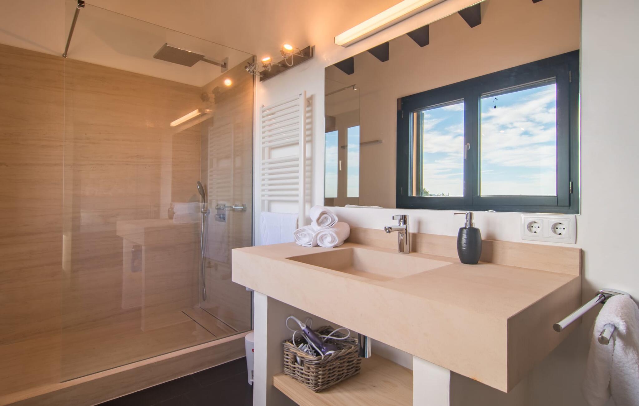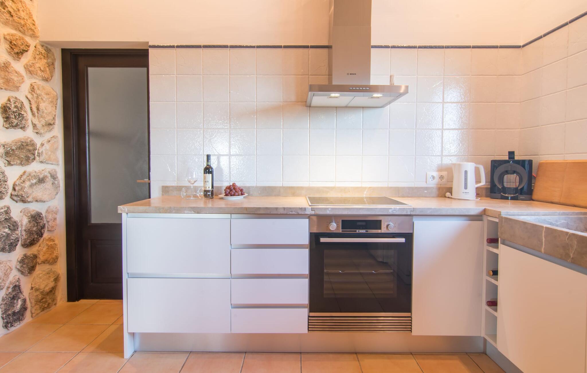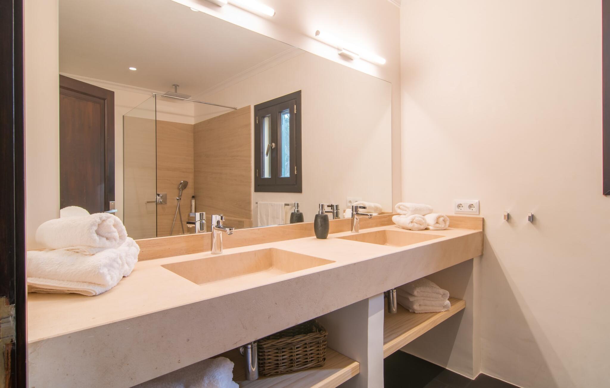 Hvor givende det er at ændre dit perspektiv nu og da. Villa "Ca Na Cristina de Carrossa" gør dette virkelig nemt! Højt beliggende på den østlige del af øen knejser huset, delvist beklædt med stenbrud, op over lokalområdets let bakkede landskab, uhøjtideligt, men stadig omgivet af en ædel charme. Yndlingssteder er lette at finde her – for eksempel lige ved siden af rækværket ved poolen, hvor udsigten kan vandre i det fjerne. Og mens du er i gang, kan du nyde din yndlings kolde drink eller fordybe dig i den bog, du har tænkt dig at læse i evigheder. Vand kærtegner din hud, når du af og til glider over hjørnetrinene ned i poolen og nyder denne helt specielle badeoplevelse, helt indlejret i den omkringliggende natur. På et tidspunkt bliver du uundgåeligt sulten, og du bliver glad for at sætte dig ved det overdækkede spisebord, som er et par trin oppe direkte fra huset og giver mulighed for korte afstande mellem indendørs og udendørs arealer. Nyd at tilberede friske delikatesser på grillen, der er ingen grænser for din fantasi! Villaens interiør, som er udstyret med aircondition og varme, udstråler også en usædvanlig venlig atmosfære. Æstetikken er i fokus her, og beskueren føler en harmonisk energi af møbler, tekstiler og dekorative elementer: Naturstenselementer komplementerer hvide vægge og indgangsbuer af sandsten, spotlights integreret i loftsbjælkerne konkurrerer med det naturlige dagslys om belysning i rummene. terracotta fliser harmonerer perfekt med stilfuldt brugt træ. Farverig vægkunst komplementerer disse elementer perfekt. I stueetagen er der den indbydende stue/spisestue med pejs og direkte adgang til terrassen, det fuldt udstyret køkken med opbevaringsrum, et badeværelse og to soveværelser med dobbeltsenge, mens det tredje soveværelse og et privat badeværelse er placeret på øverste etage. . Suite badeværelse. Disse værelser nyder også godt af masser af lys og smagfuldt design. Et hus, hvor du virkelig kan føle dig hjemme! Forskellige naturlige sandstrande kan nemt nås i bil fra villaen. På grund af de fremragende transportforbindelser kan trafikstøj høres i det fjerne, afhængigt af vindretningen. Hvis du leder efter noget andet, kan du for eksempel tage en tur til centrum af Son Servera. Et ugentligt marked finder sted her hver fredag. Udover kulinariske specialiteter fra regionen finder du smukke mallorcanske kunsthåndværk. Om aftenen bør du ikke gå glip af at slentre gennem Artàs oplyste gader. Under en gåtur kan du bestige Golgata og kirken Santuari de Sant Salvador. Fire golfbaner ligger kun få minutters kørsel fra villaen. Dette inkluderer den berømte golfbane "Pula Golf" mellem Artà og Son Servera. Du er garanteret en betagende smuk udsigt, hvis du beslutter dig for at bo i denne villa: kun 2,5 km i luftlinje fra den smukke by Artà kan du overse det dejlige landskab på den nordlige del af øen. Både Artà og Capdepera byder på rigtig gode indkøbsmuligheder. Smukke strande såsom Sa Marjal og Cala Bona ligger blot et par minutter væk i bil. En vandretur fra Ermita de Betlem kan ende ved Platja de Colonia de San Pere. Dette er et Fincallorca feriehus.