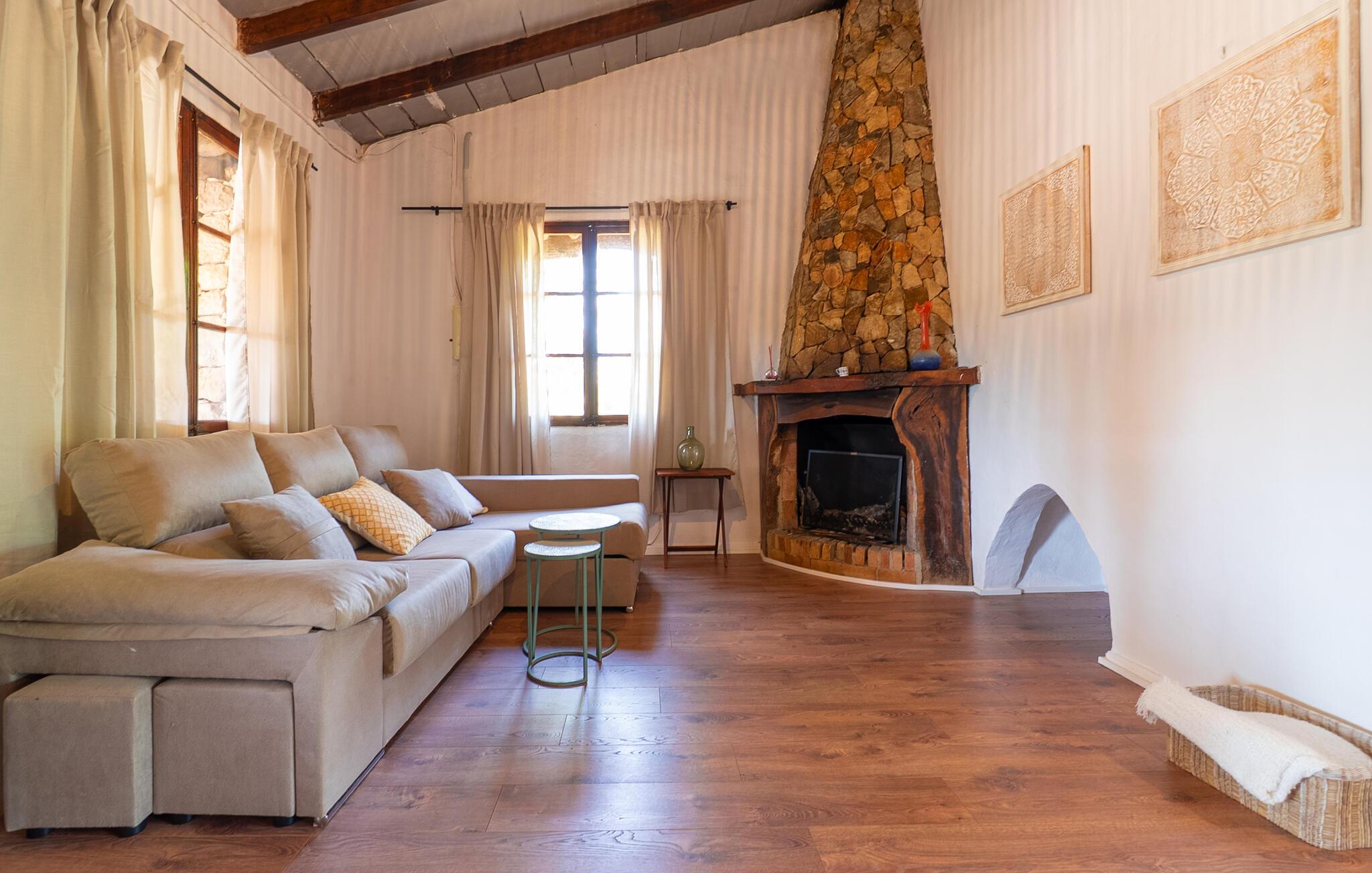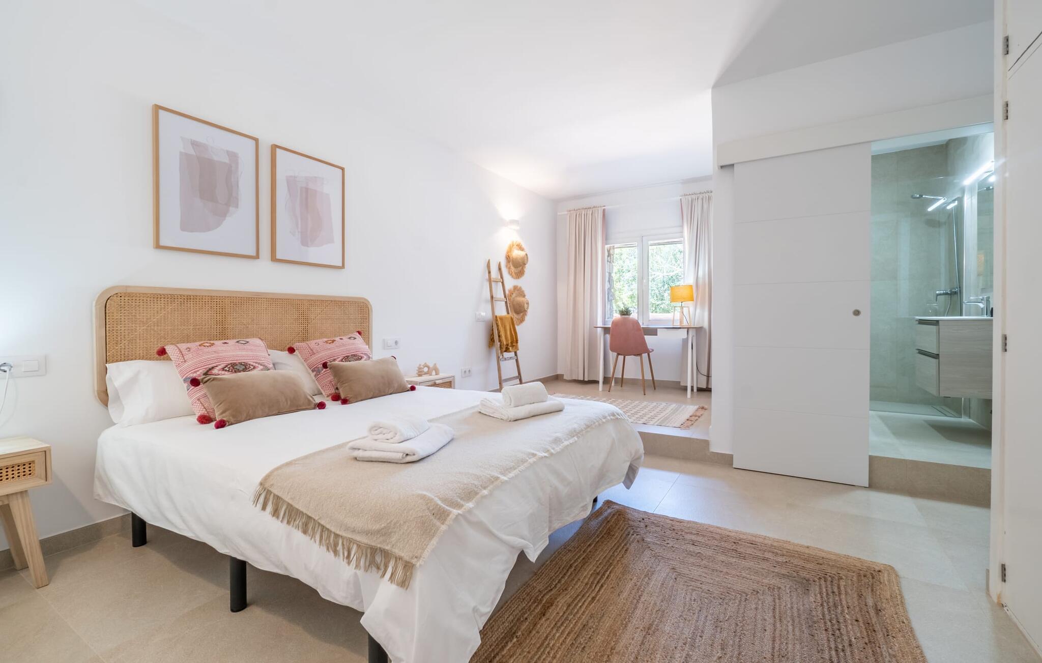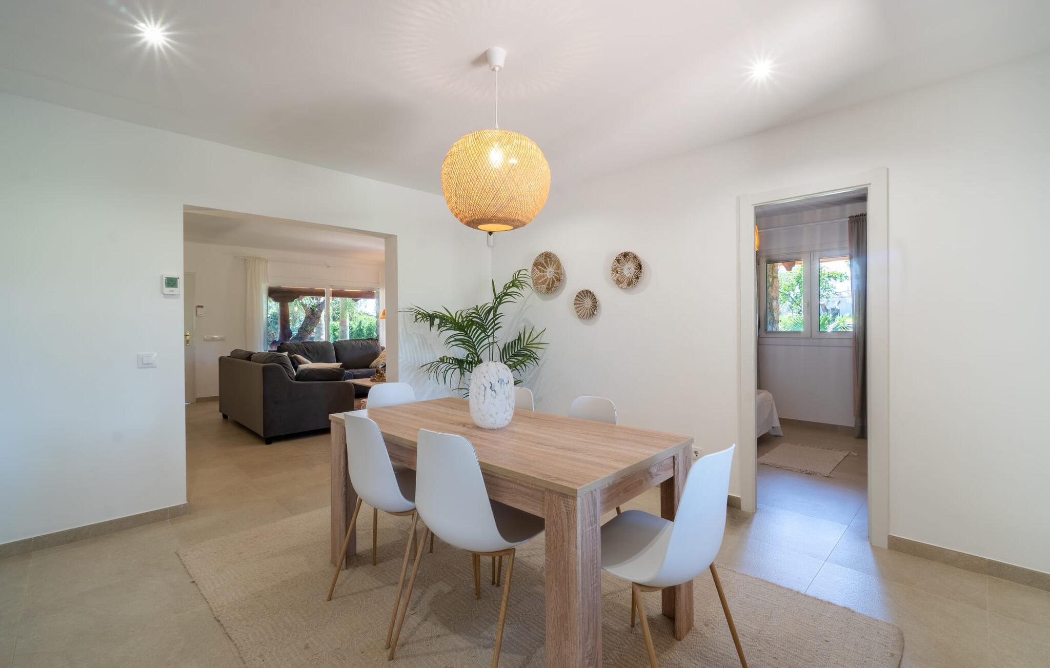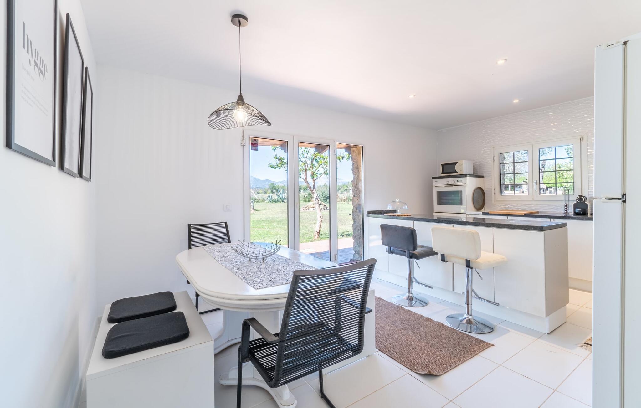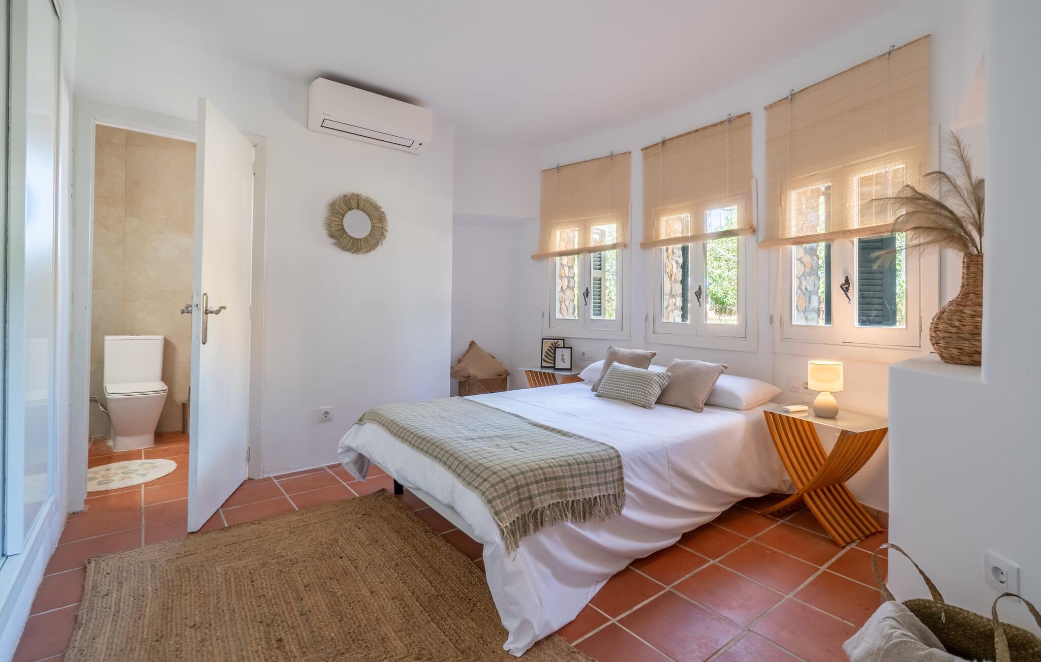 Landstedet "Ca Na Marlis" er ideelt, hvis I ønsker at tilbringe en afslappende ferie med gode venner på Mallorca. Bygningernes arkitektur kan minde om det nordlige Spanien, hvilket ikke er tilfældigt: De tilhørte engang en asturisk restaurant. Ejendommen er blevet nænsomt restaureret og omdannet til tre separate og komfortable boligenheder, fordelt på en afsondret havegrund med masser af græsplæne, fortryllende skyggefulde områder og en eksotisk designet pool med en lille grotte og vandfald. Der er masser af komfortable liggestole og siddepladser til læsning, solbadning og afslapning. Hvert hus har en individuelt designet terrasse. Det indre af hovedhuset og de to bungalower er oversvømmet med lys og indrettet i en moderne landlig stil. Hovedhuset har en stue, en spisestue, et moderne køkken med en anden spiseplads og tre rummelige soveværelser, hvoraf to har eget badeværelse. I tilknytning til huset finder I en skøn lounge, flere terrasser og en grillplads. Hver af de to bungalower har et dobbeltværelse med eget badeværelse. Den tredje bungalow med rustik indretning har ikke et soveværelse. Der er et lille fitnessrum, en hyggelig stue med pejs, en lille bar og et værelse med spil og et bordfodboldbord. Her kan I skabe jeres egen feststemning uden at skulle forlade jeres sommerhus på Mallorca. Feriehuset ligger kun 1 km fra Inca. Der er en paddlebane og flere tennisbaner i umiddelbar nærhed. Herfra kan I nå de lange, hvide strande på nordøstkysten på cirka 25 minutter i bil.