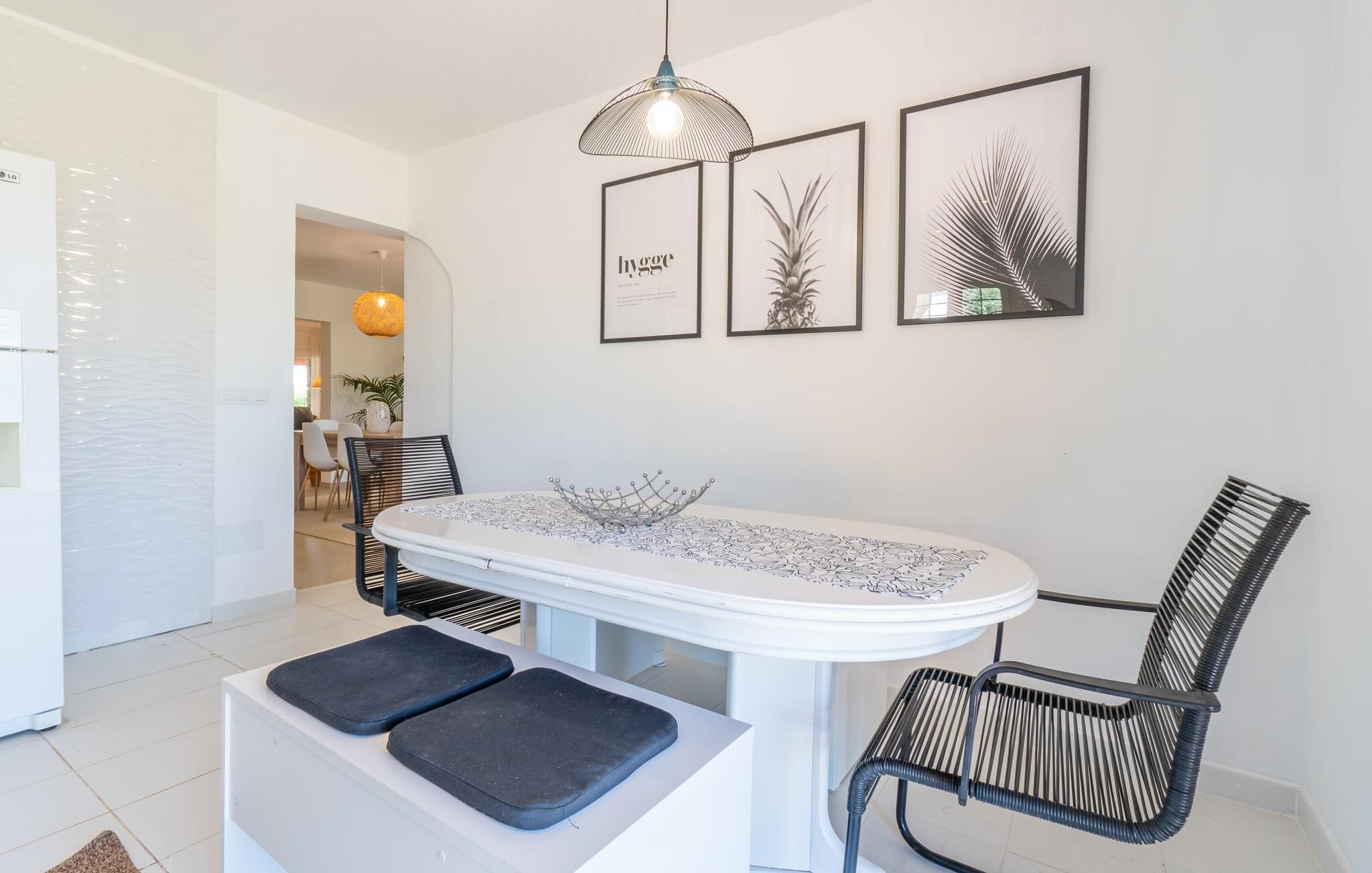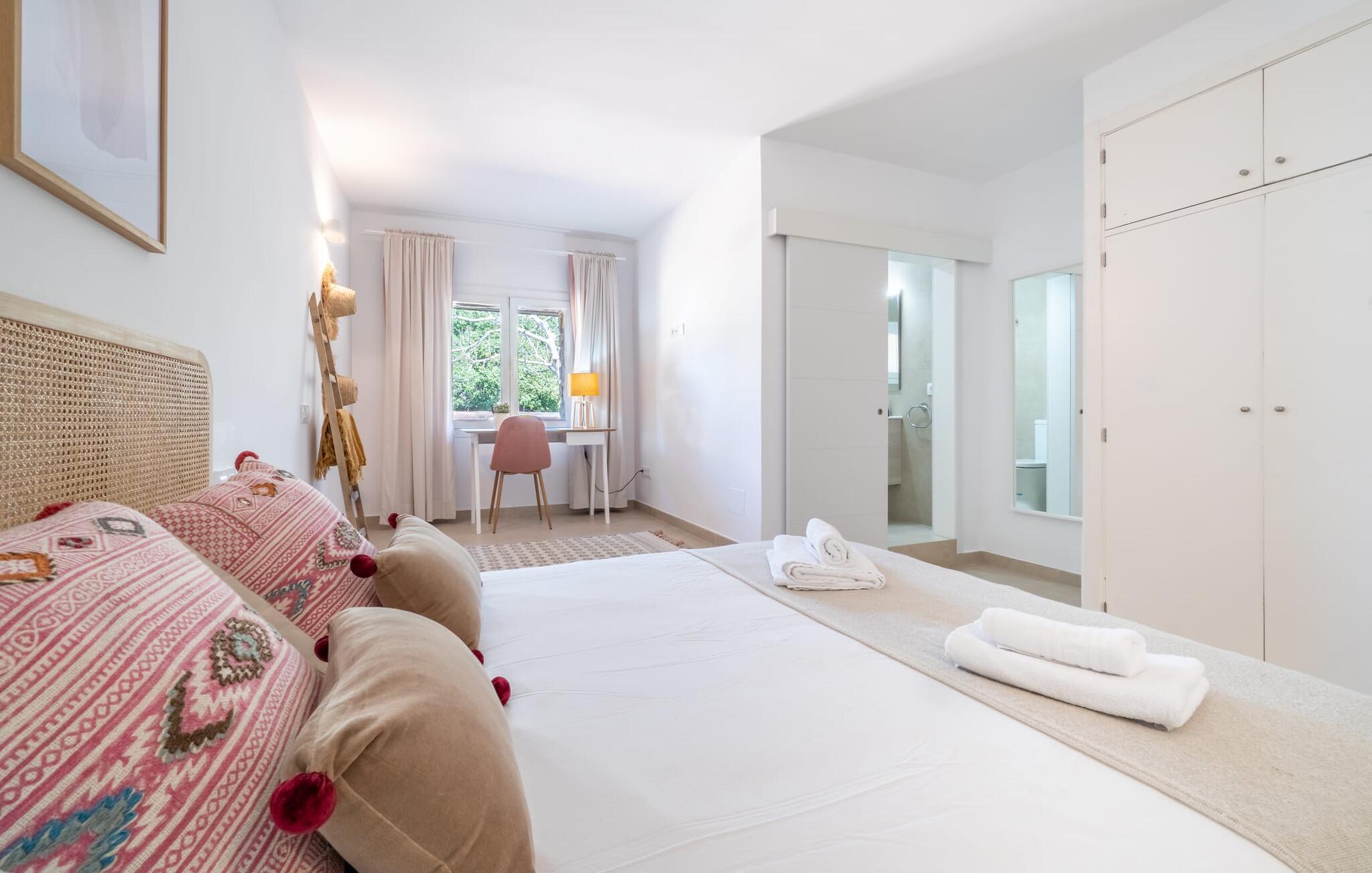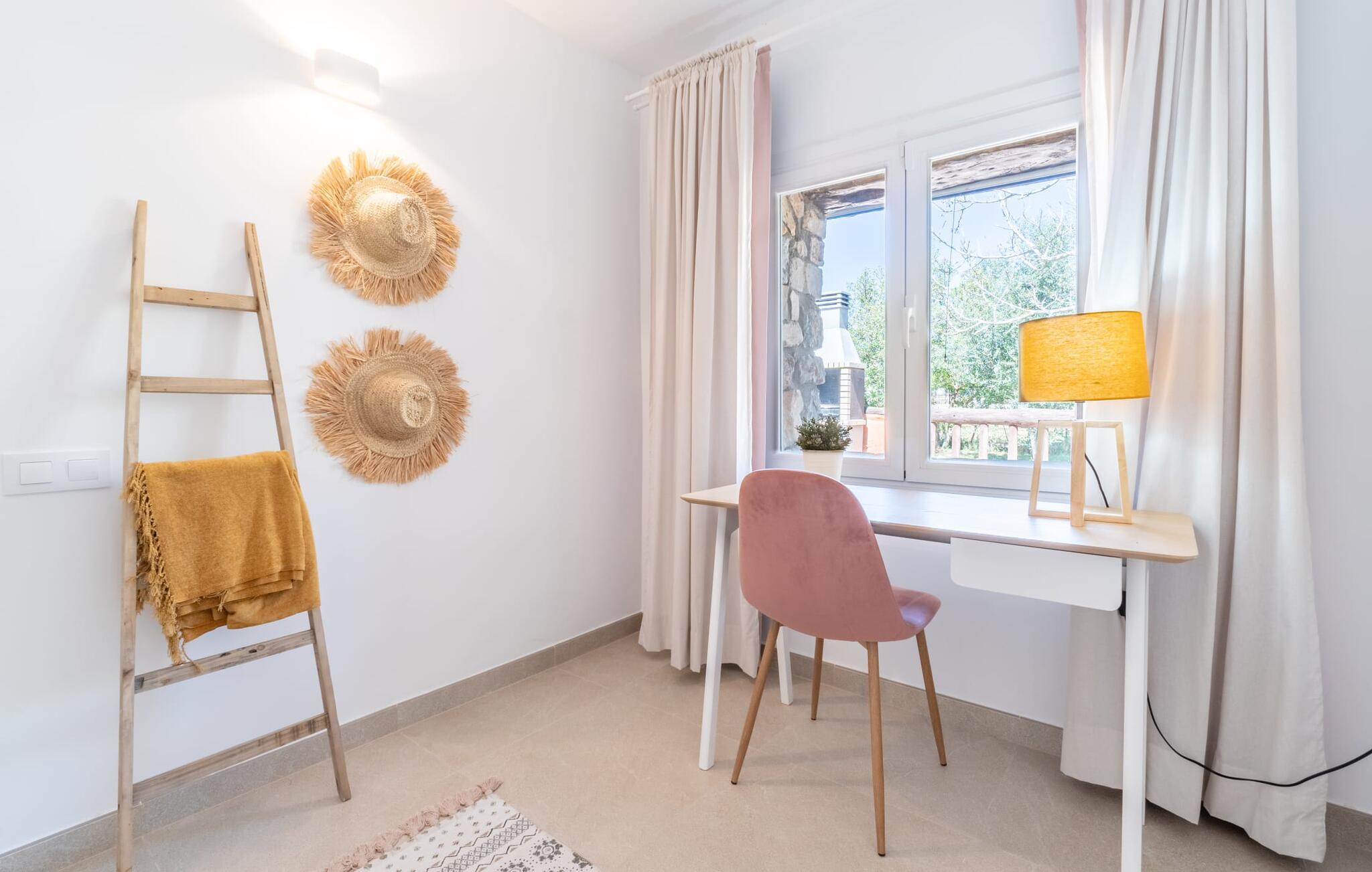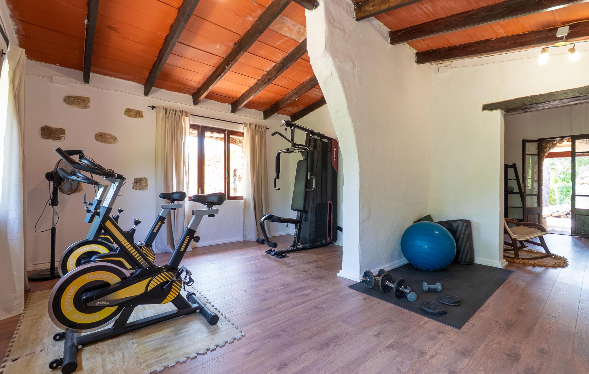 Landstedet "Ca Na Marlis" er ideelt, hvis I ønsker at tilbringe en afslappende ferie med gode venner på Mallorca. Bygningernes arkitektur kan minde om det nordlige Spanien, hvilket ikke er tilfældigt: De tilhørte engang en asturisk restaurant. Ejendommen er blevet nænsomt restaureret og omdannet til tre separate og komfortable boligenheder, fordelt på en afsondret havegrund med masser af græsplæne, fortryllende skyggefulde områder og en eksotisk designet pool med en lille grotte og vandfald. Der er masser af komfortable liggestole og siddepladser til læsning, solbadning og afslapning. Hvert hus har en individuelt designet terrasse. Det indre af hovedhuset og de to bungalower er oversvømmet med lys og indrettet i en moderne landlig stil. Hovedhuset har en stue, en spisestue, et moderne køkken med en anden spiseplads og tre rummelige soveværelser, hvoraf to har eget badeværelse. I tilknytning til huset finder I en skøn lounge, flere terrasser og en grillplads. Hver af de to bungalower har et dobbeltværelse med eget badeværelse. Den tredje bungalow med rustik indretning har ikke et soveværelse. Der er et lille fitnessrum, en hyggelig stue med pejs, en lille bar og et værelse med spil og et bordfodboldbord. Her kan I skabe jeres egen feststemning uden at skulle forlade jeres sommerhus på Mallorca. Feriehuset ligger kun 1 km fra Inca. Der er en paddlebane og flere tennisbaner i umiddelbar nærhed. Herfra kan I nå de lange, hvide strande på nordøstkysten på cirka 25 minutter i bil.